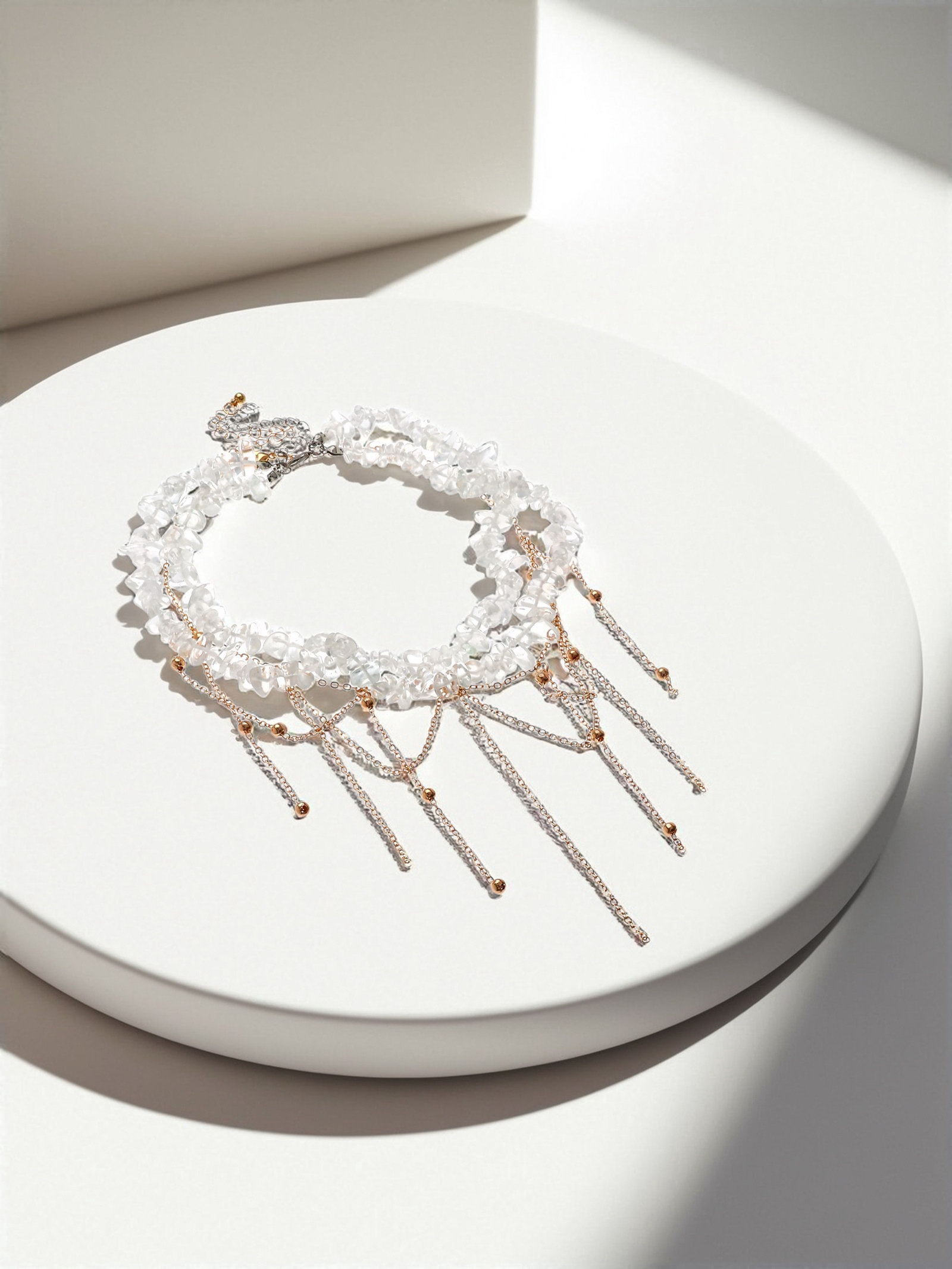Цвет фурнитуры: Золотой, Серебряный Тематика: Каменная, Цепь Размер упаковки: 7 x 1 x 17 см. tnved: 7117190000 Длина, см: 32 Вставка/Подвеска: Металл Материал основы: Стекло Для кого: Для женщины Набор: Да С подвеской: Да Коллекция: Стекло Многослойное украшение: Да Цвет: Белый Нежное ожерелье с эффектом каскада сочетает белые стеклянные элементы и металлические вставки в серебристом и золотистом оттенках, создавая лёгкий и изысканный образ. Длина 32 см подходит для подчёркивания линии шеи и гармоничного дополнения как повседневного, так и вечернего наряда. Особенности