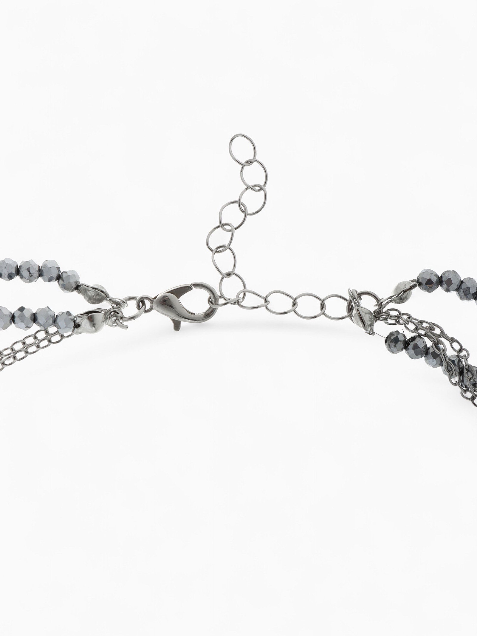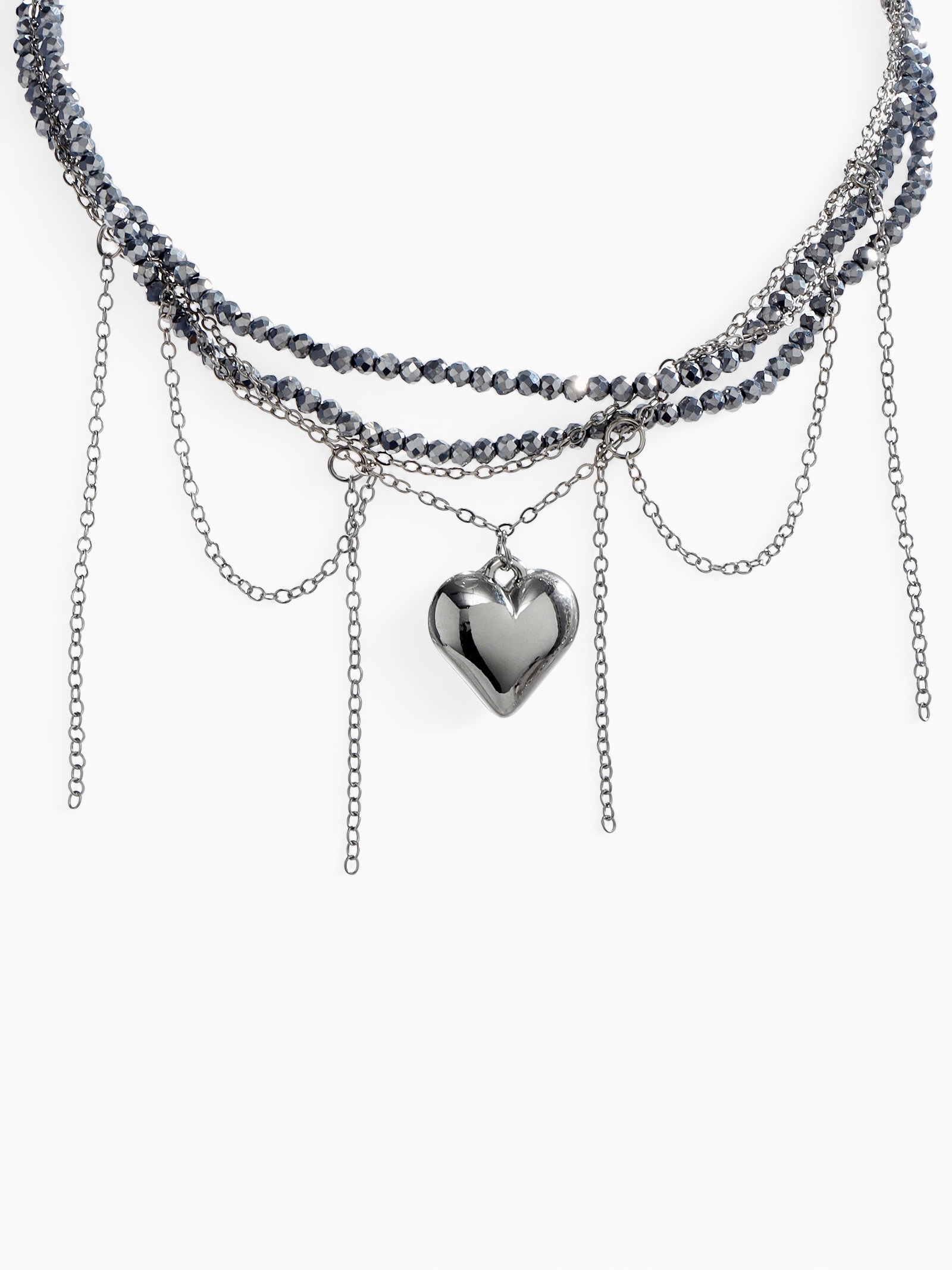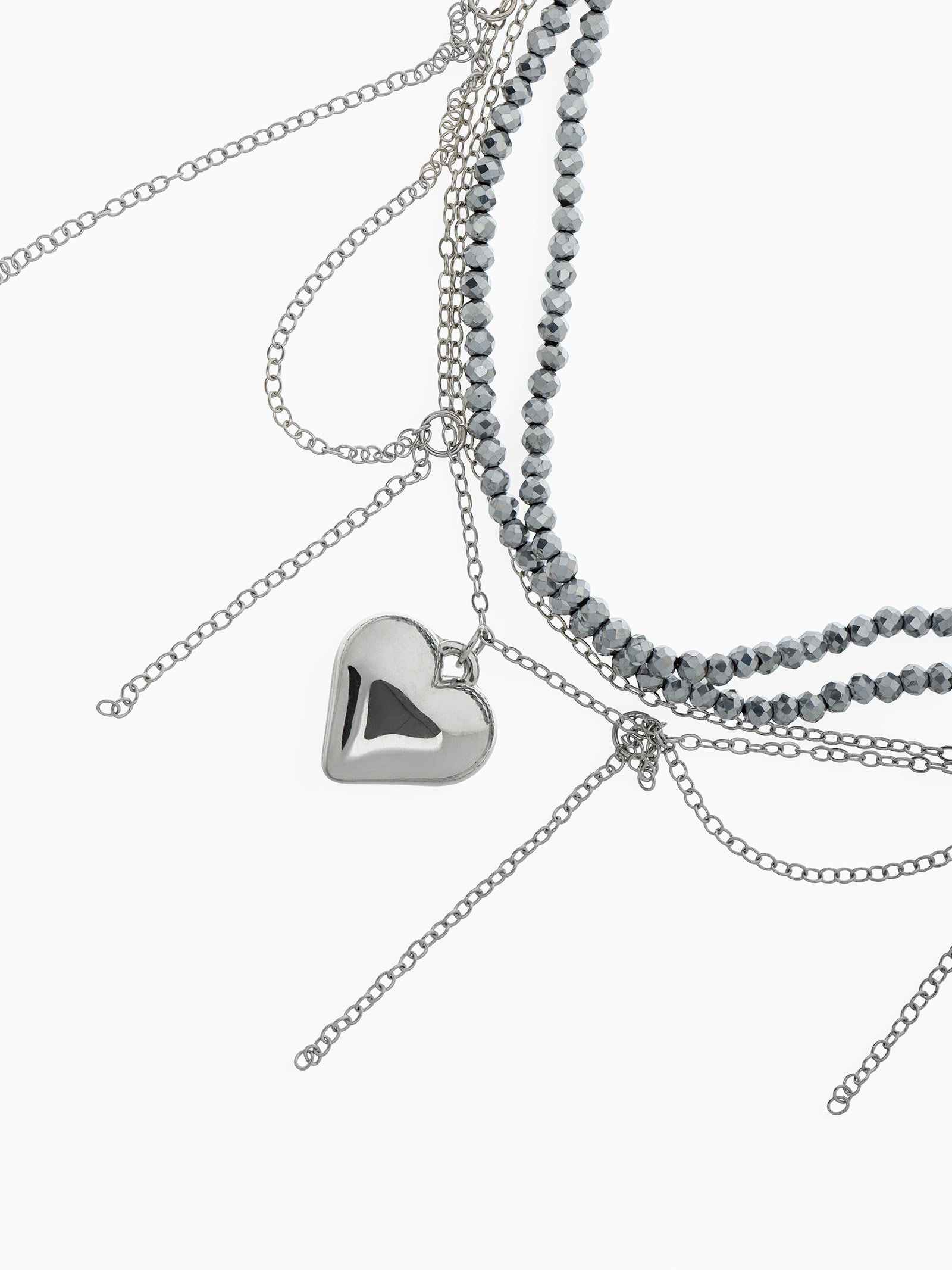 Колье с подвесками "Сердце" переплетение, серое в серебре, 6x30x1.5 см., QF, Китай