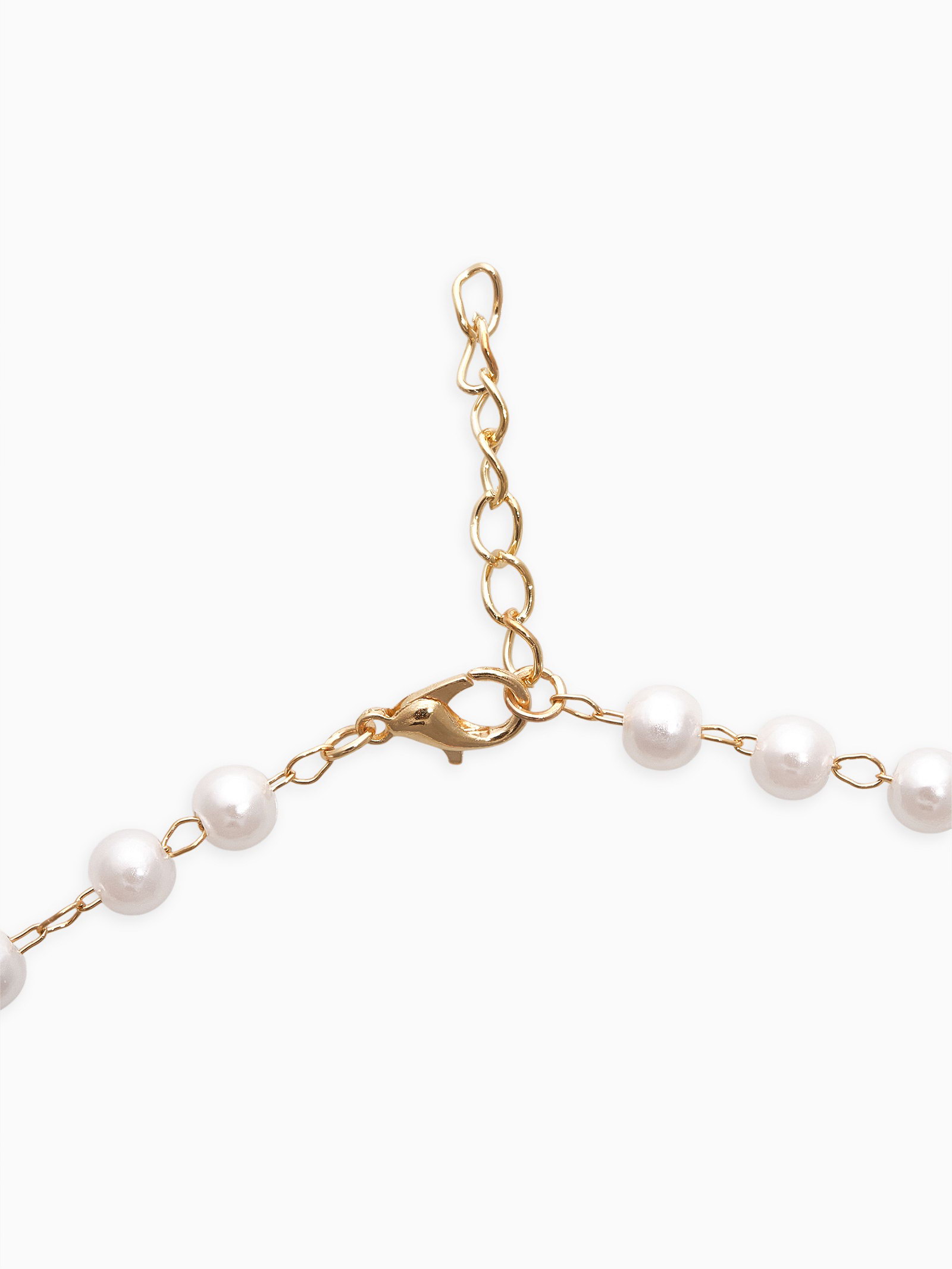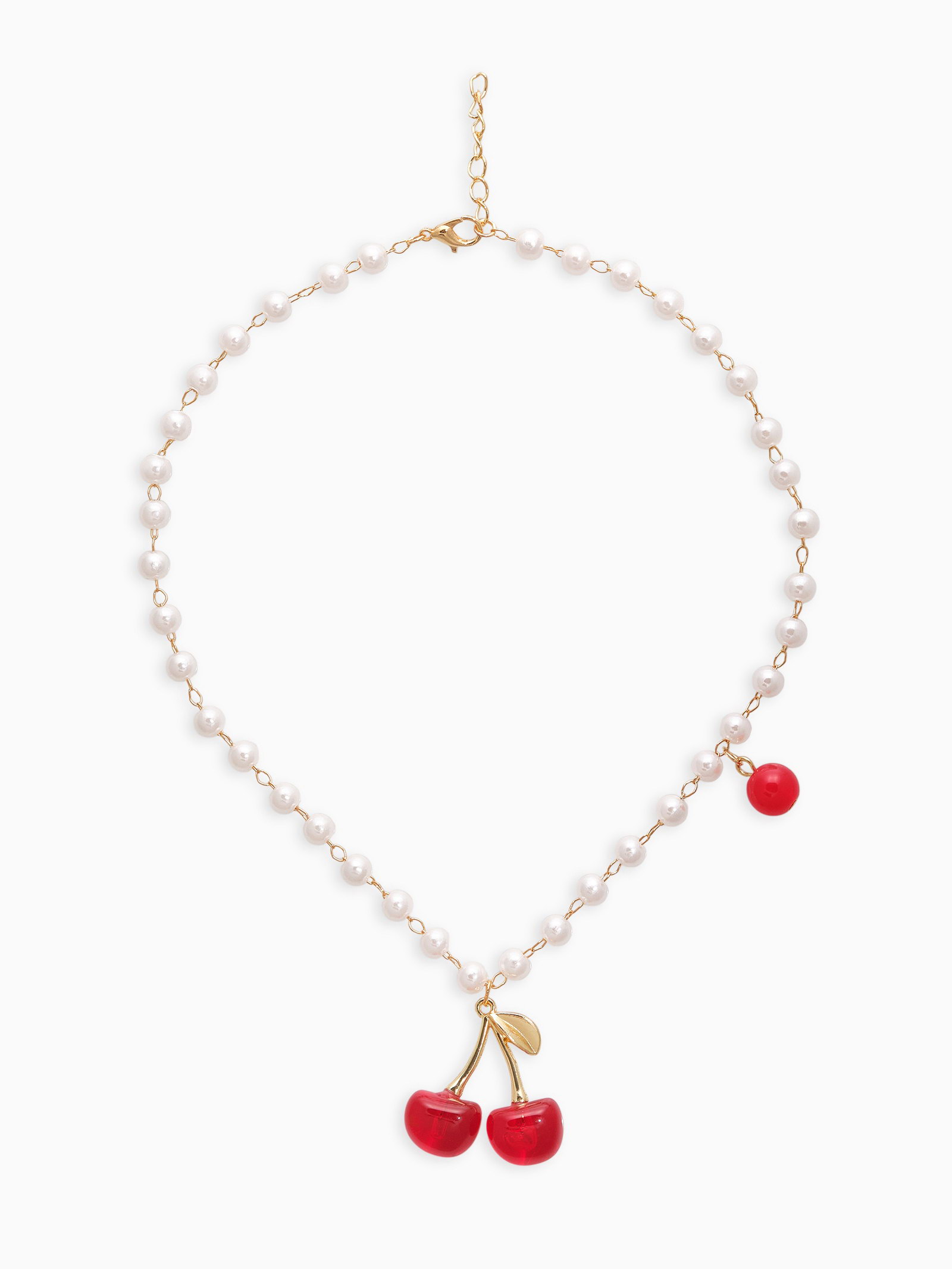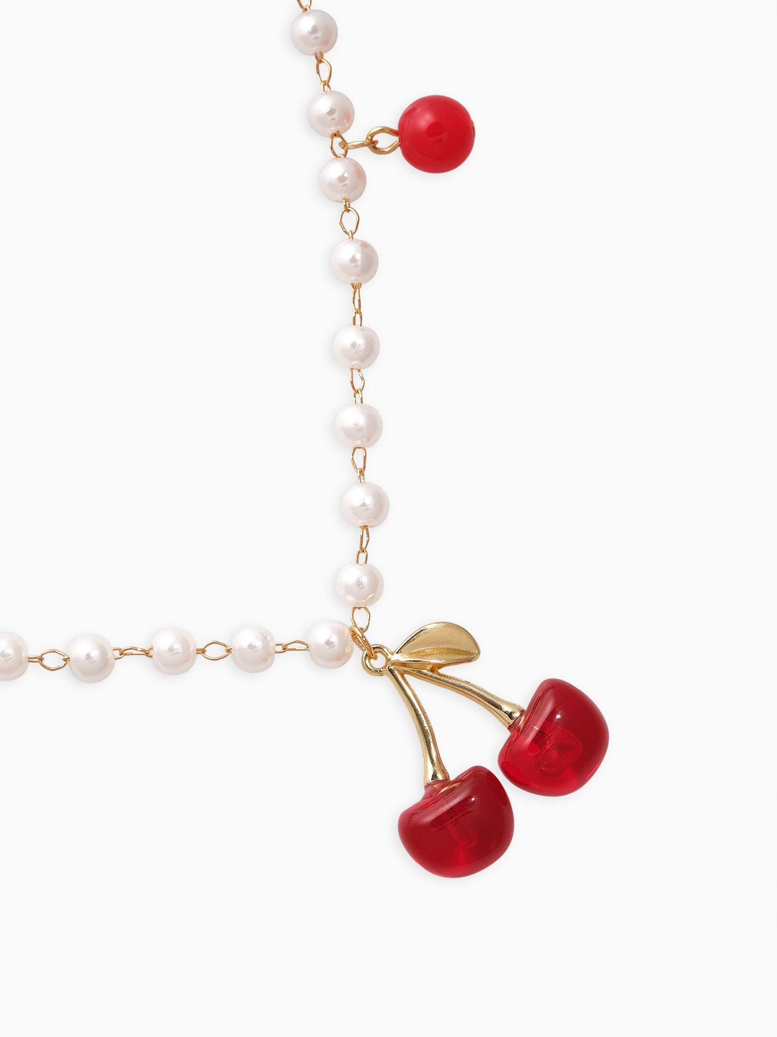 Колье на жемчужной дорожке "Вишня объемная", красно-белое в золоте 40+удл, d=6, 2.5x40x1 см., QF, Китай