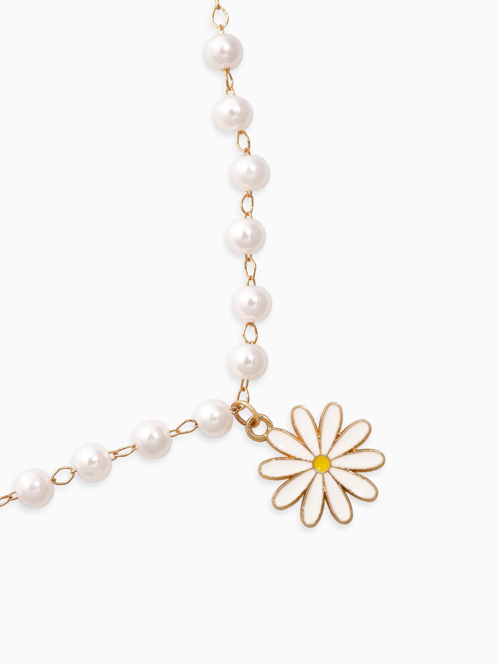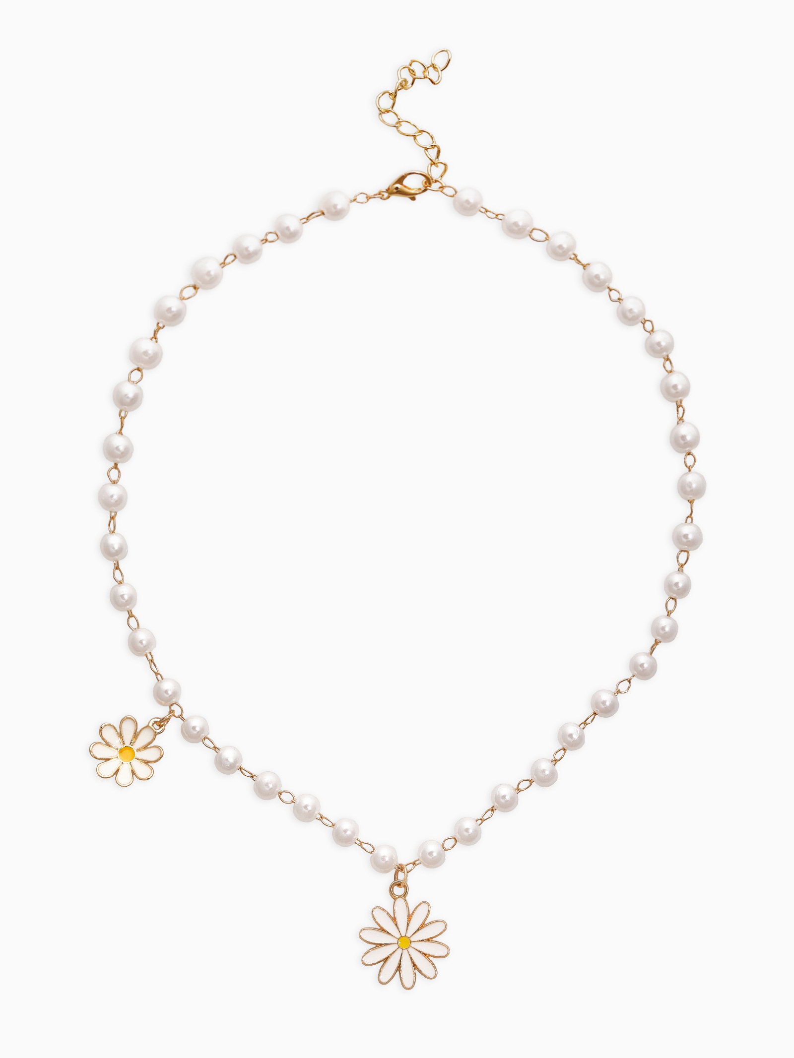 Колье на жемчужной дорожке "Ромашка", белое в золоте 40, d=6, 1.5x40x0.6 см., QF, Китай