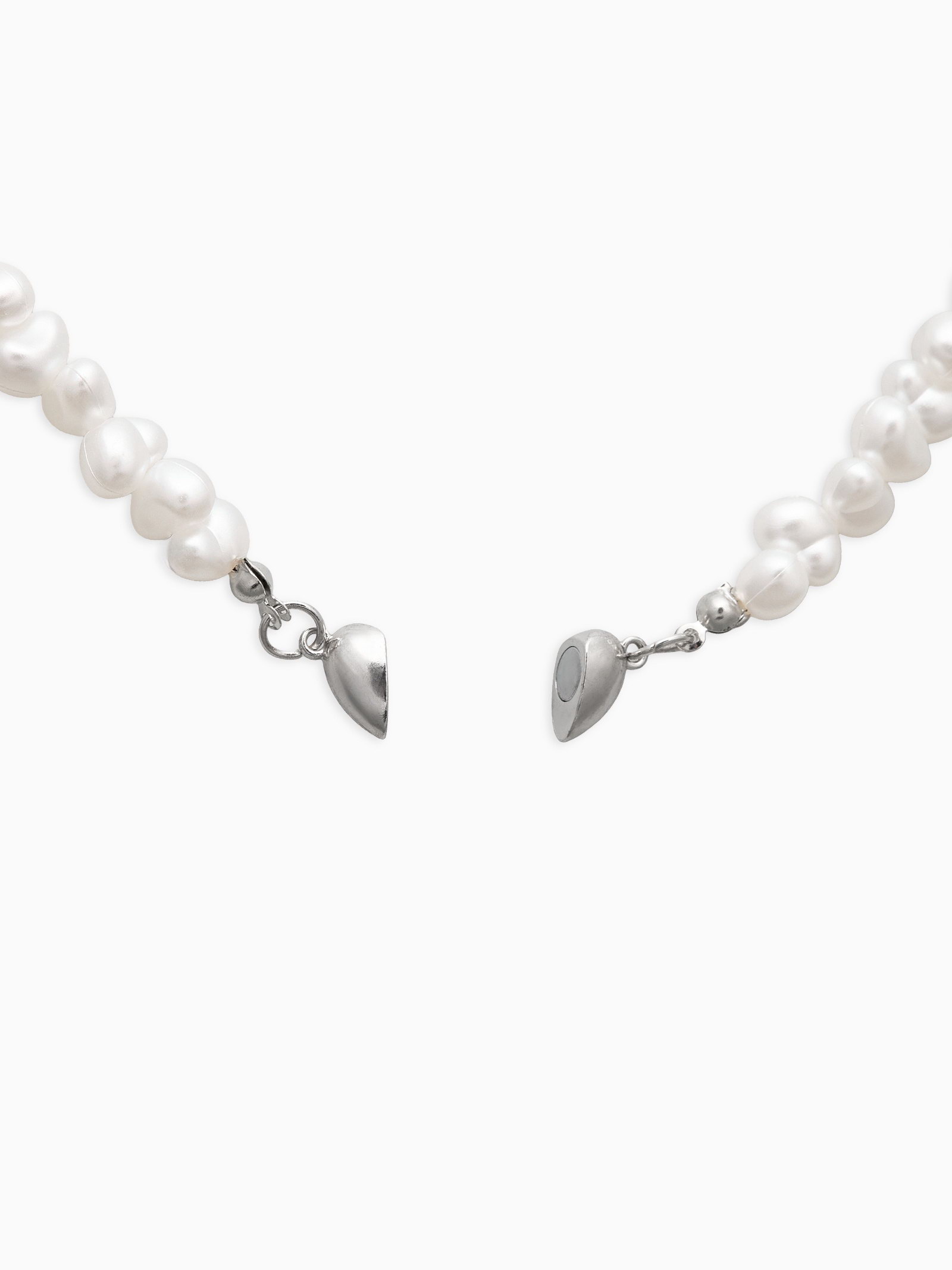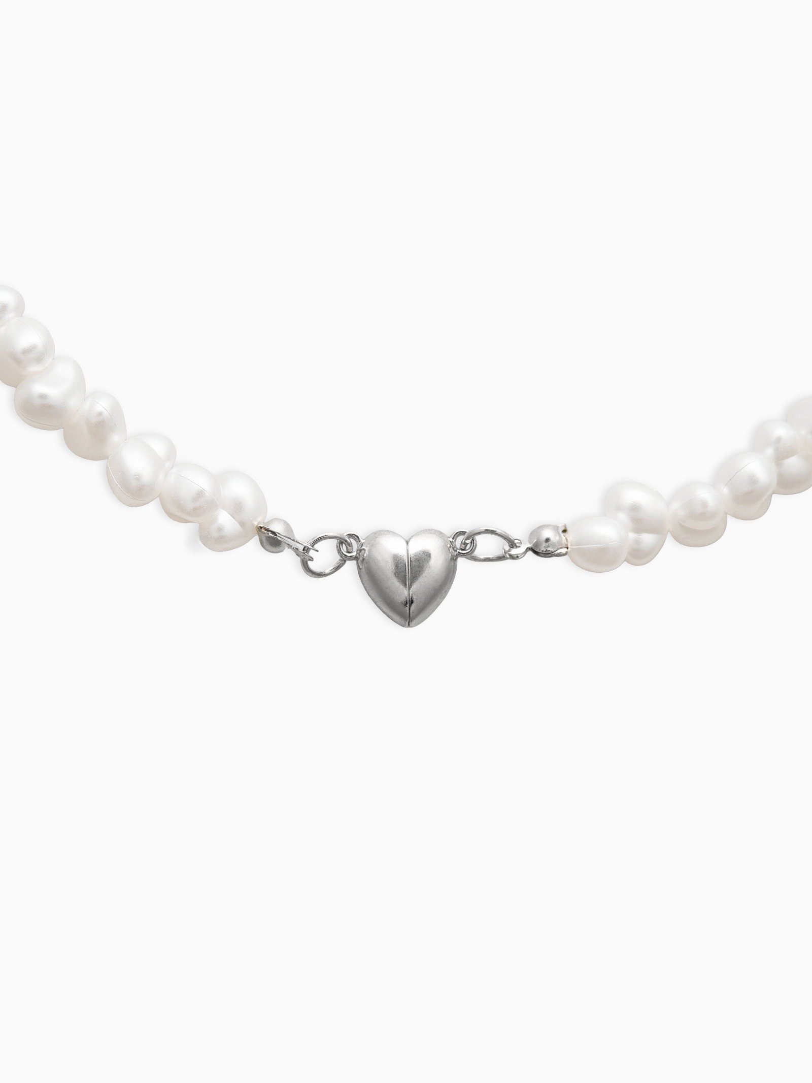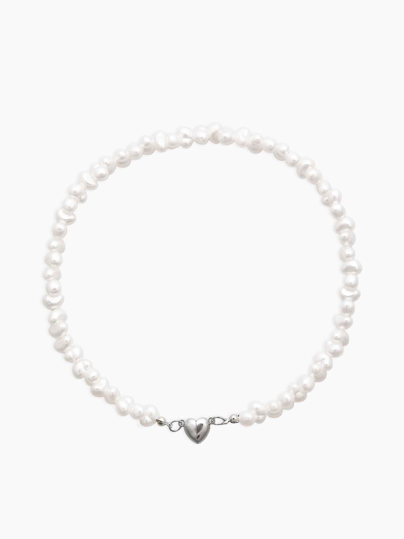 Колье жемчужное "Сердце" 35 см, белое в серебре, 1x35x0.5 см., QF, Китай