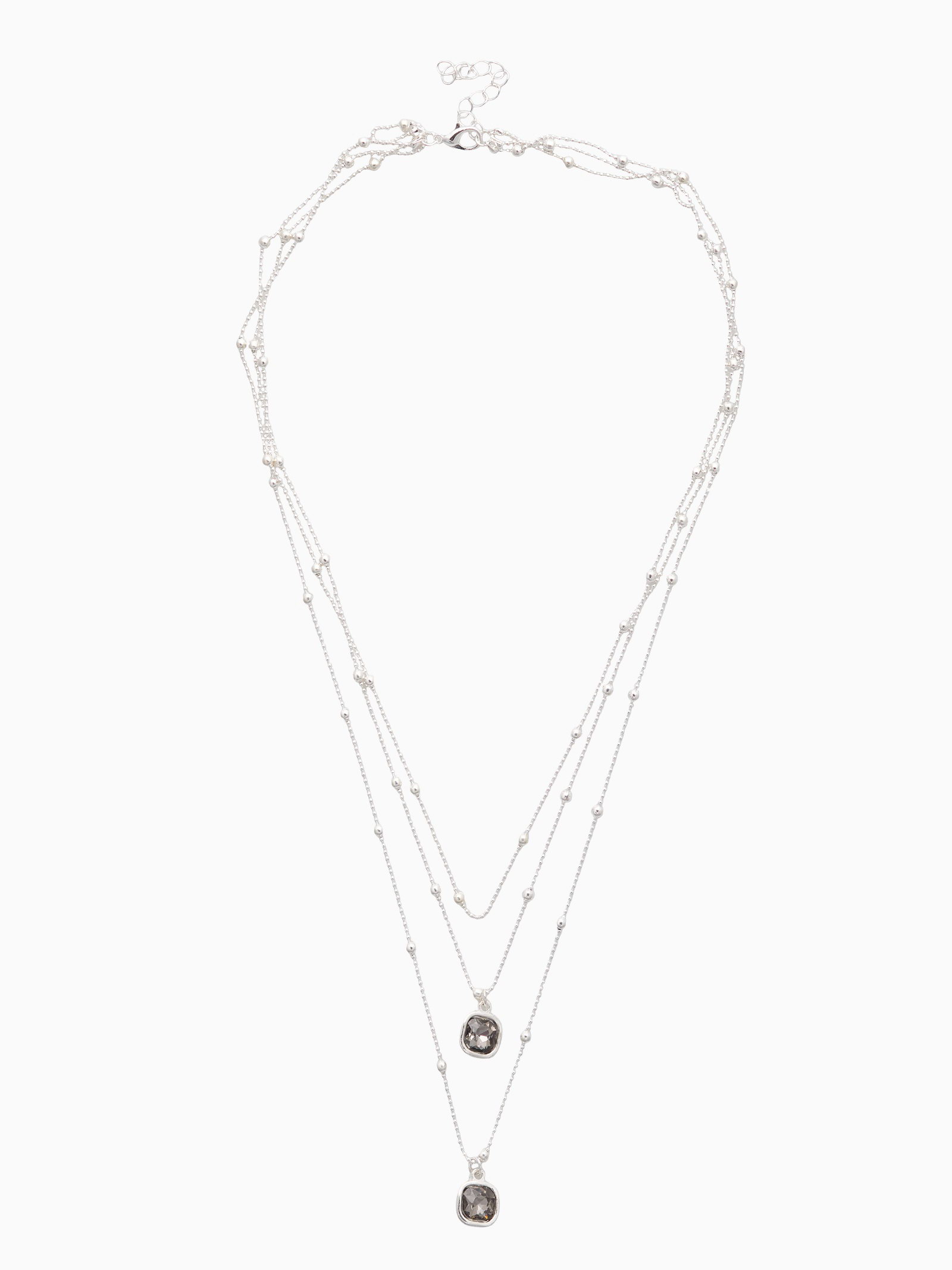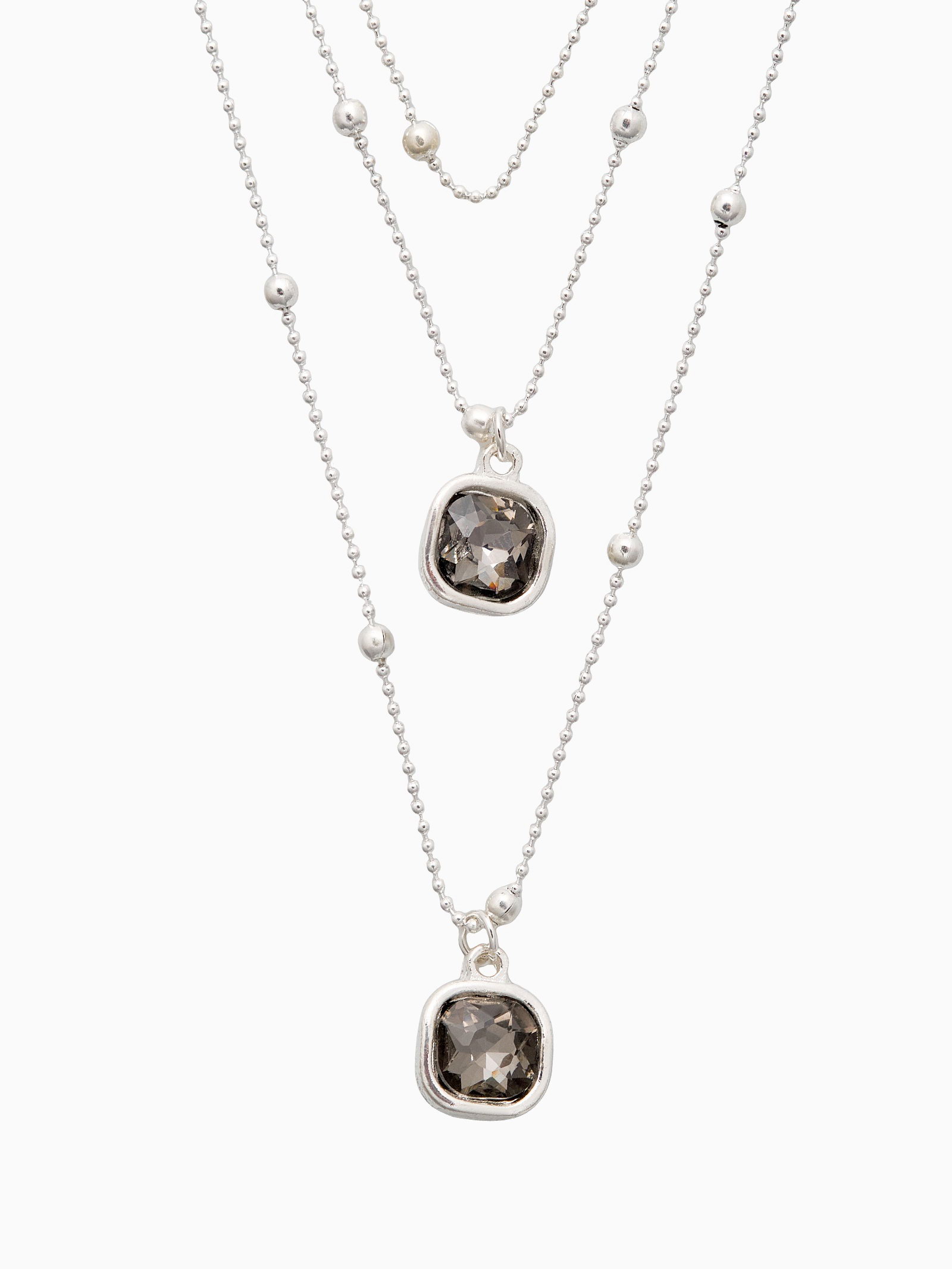 Колье 3 ярусы "Легкий стиль" квадрат, серое в серебре, 0.5x50x0.5 см., QF, Китай