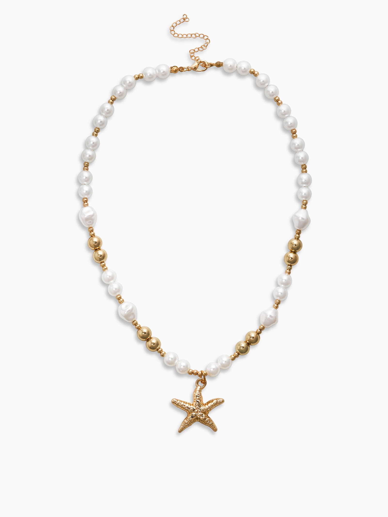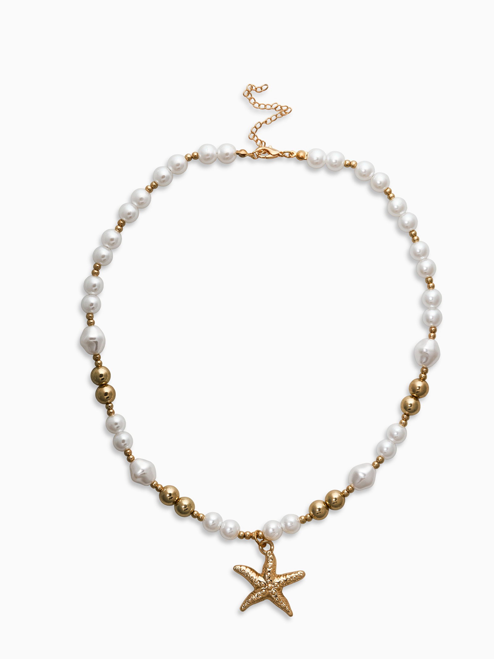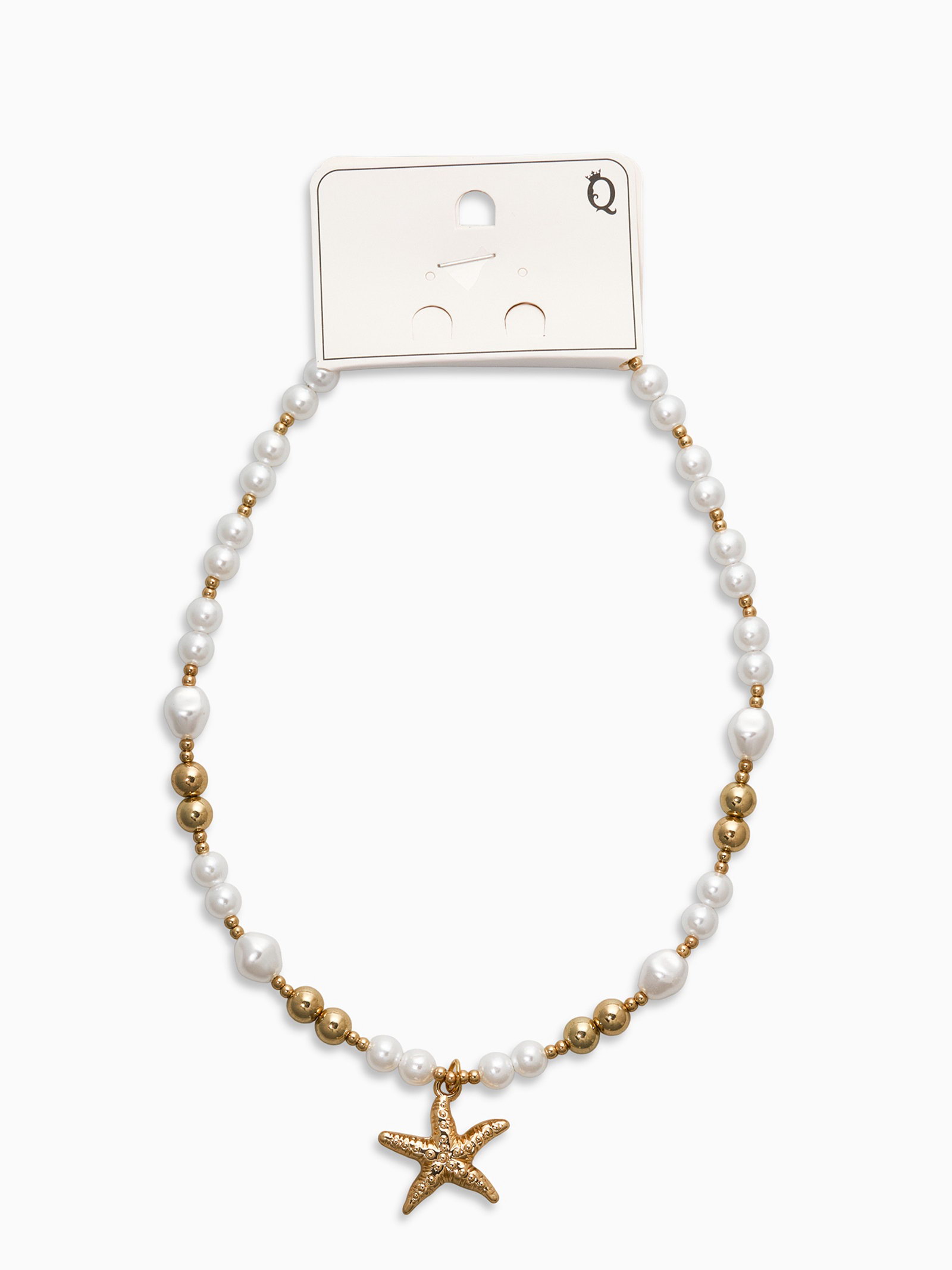 Кулон на жемчужных бусах "Морская звезда", 55 см, белый в золоте, 5.5x55x1 см., QF, Китай