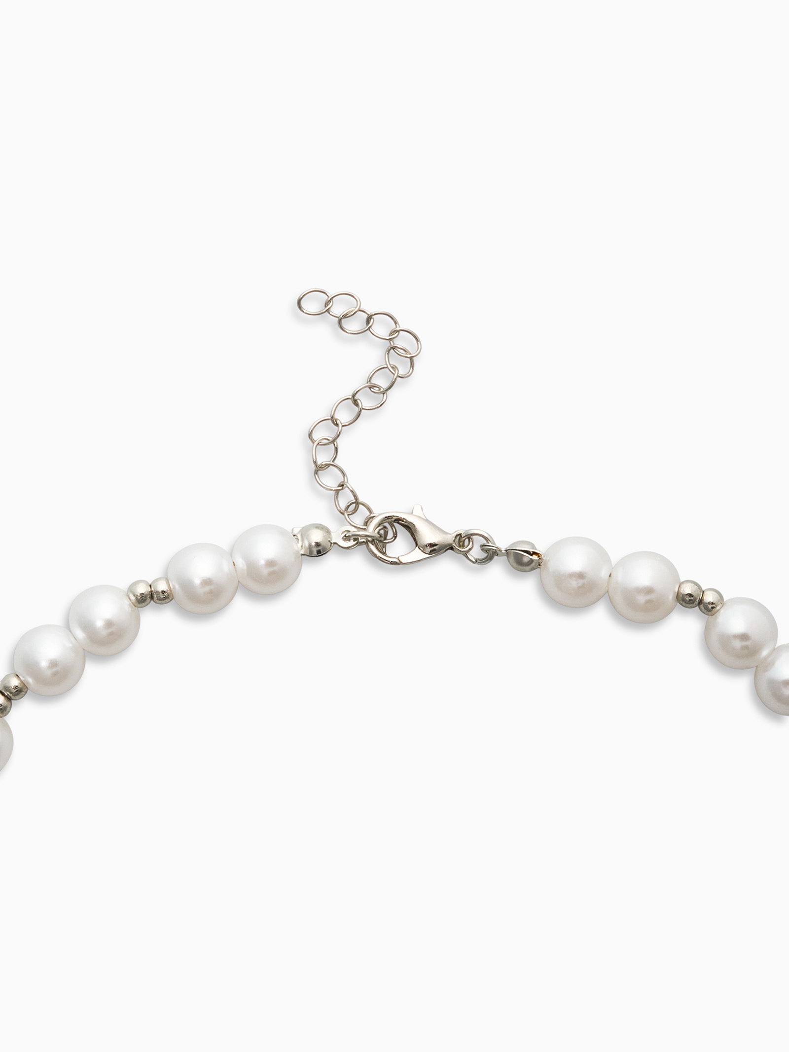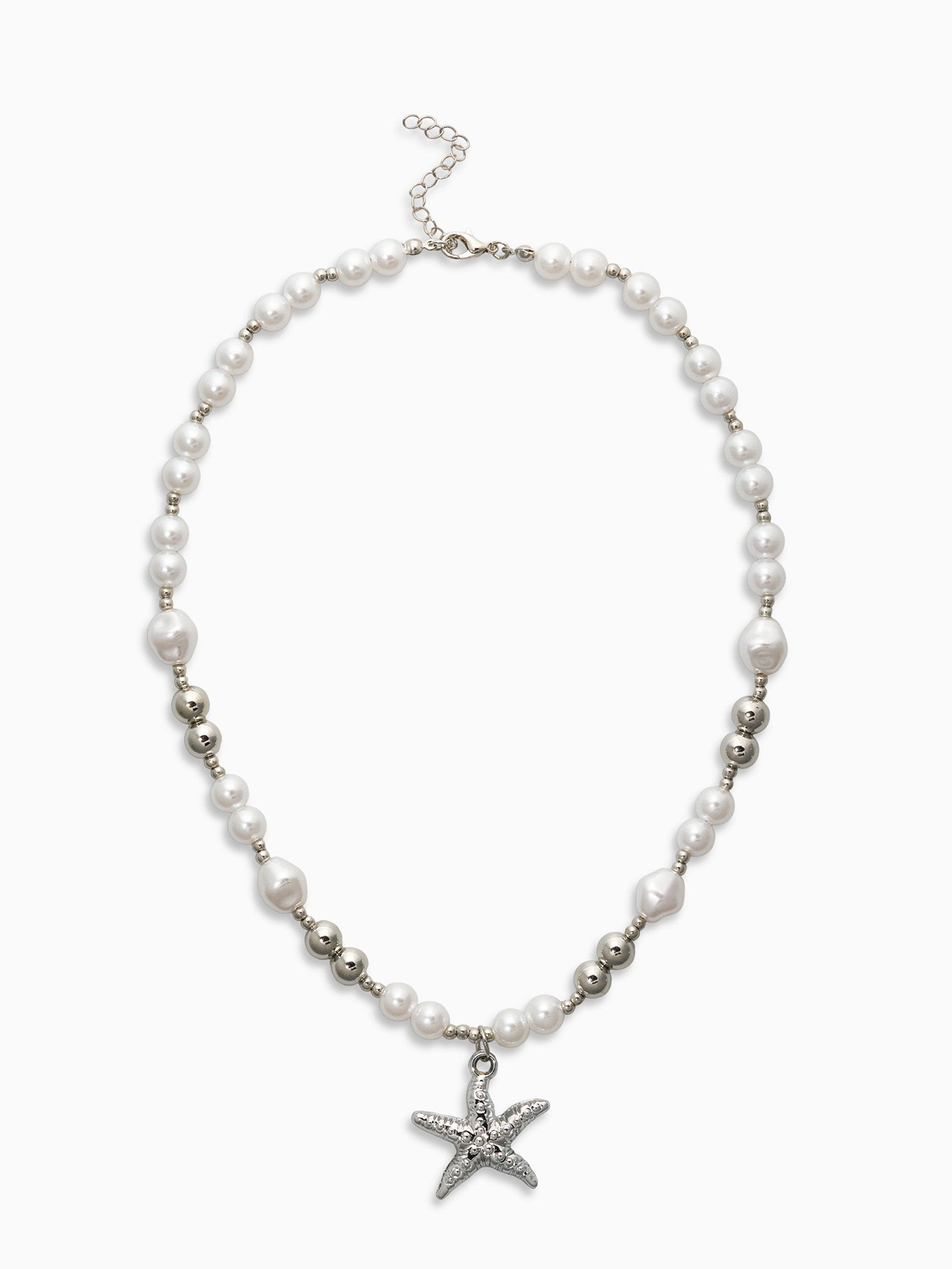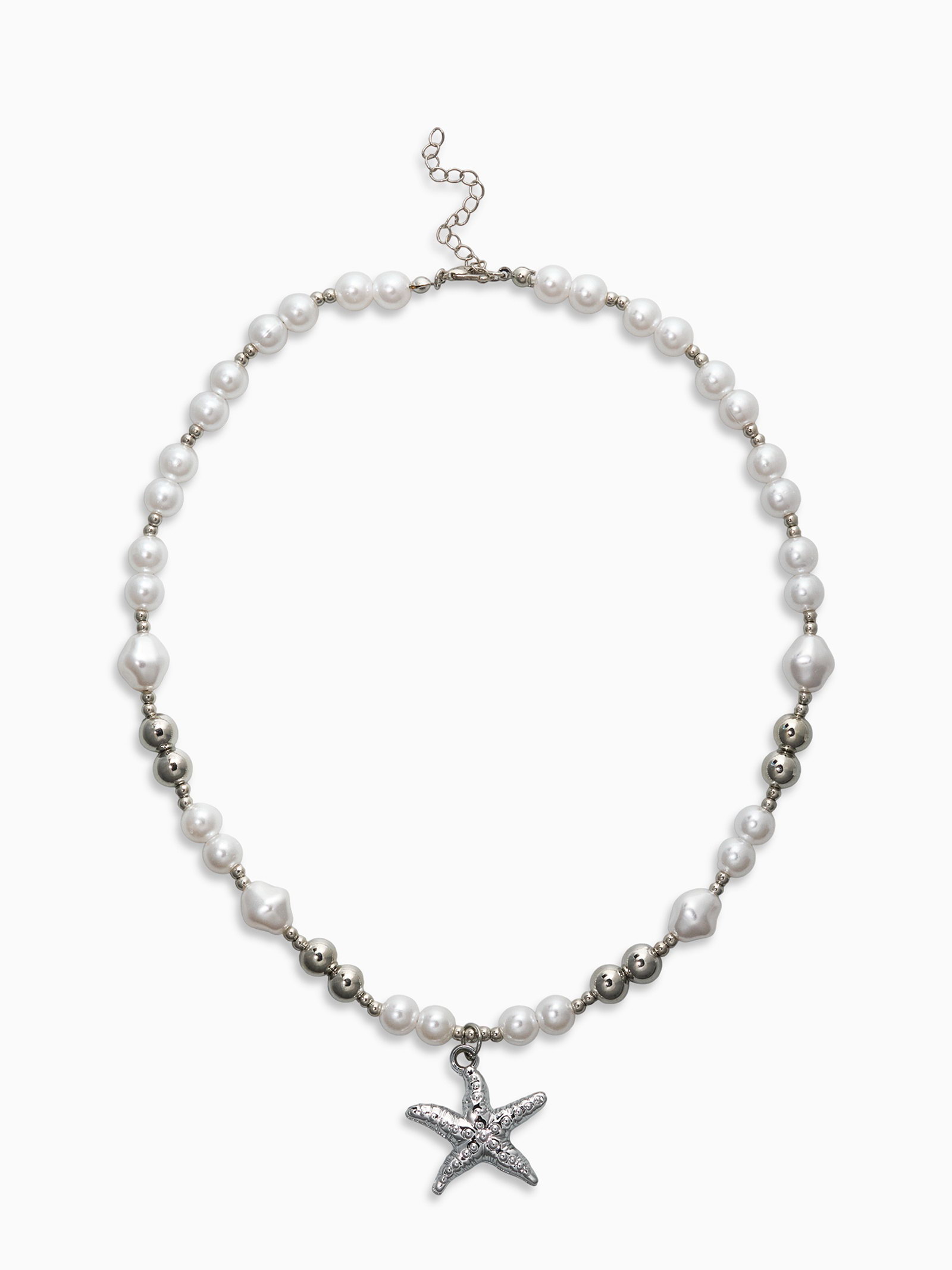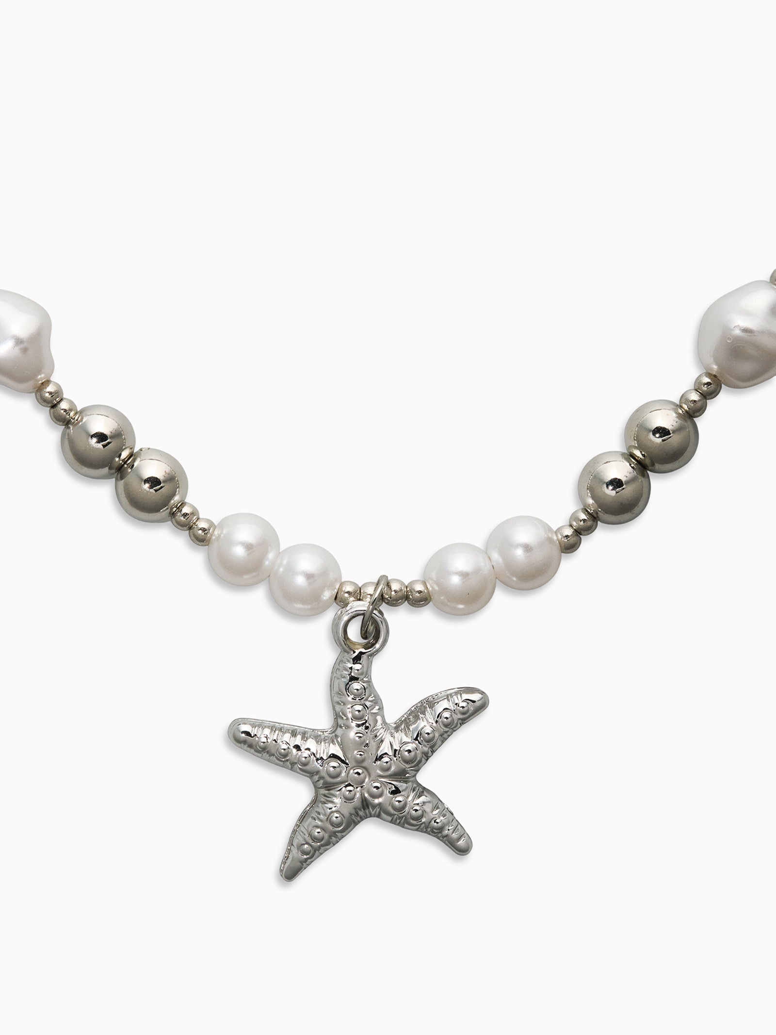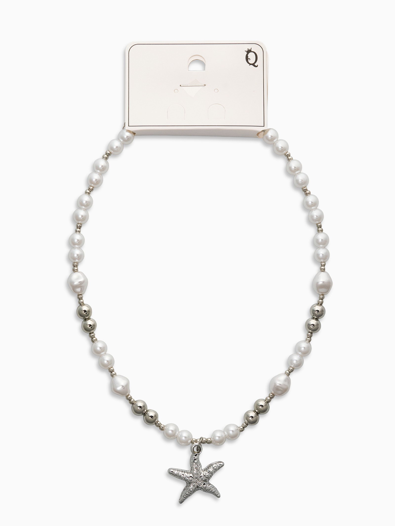 Кулон на жемчужных бусах "Морская звезда", 55 см, белый в серебре, 5.5x55x1 см., QF, Китай