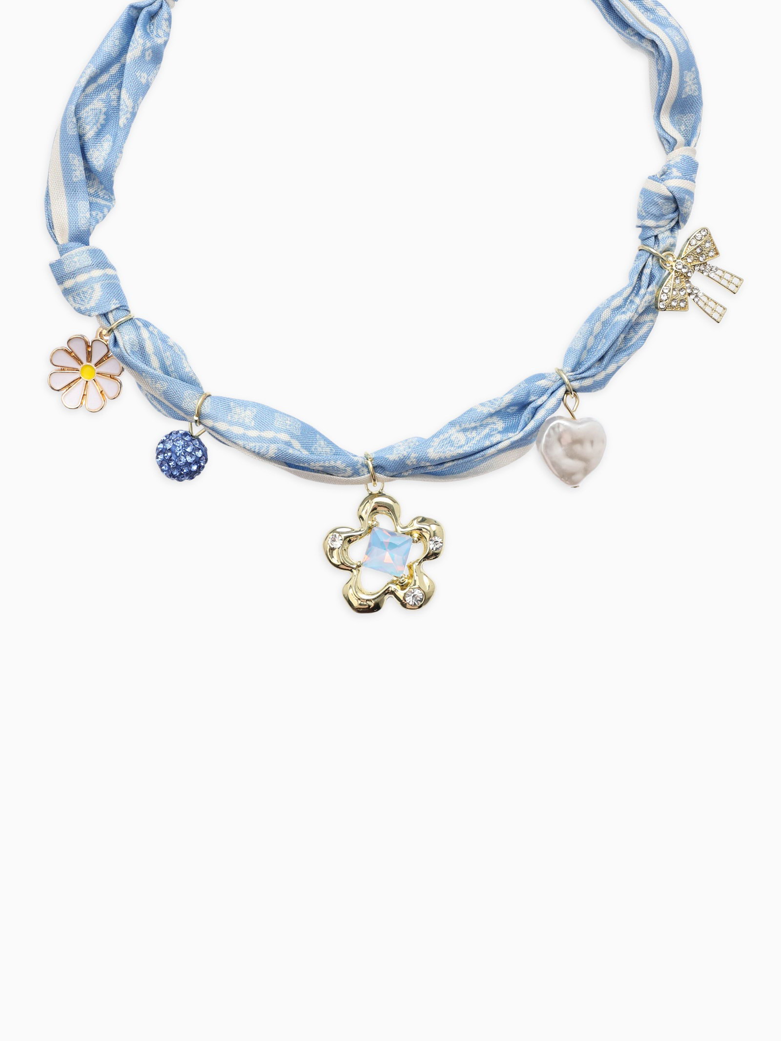 Колье-чокер на платке "Стиль". цвет голубой с золотом, 2x30x1 см., QF, Китай