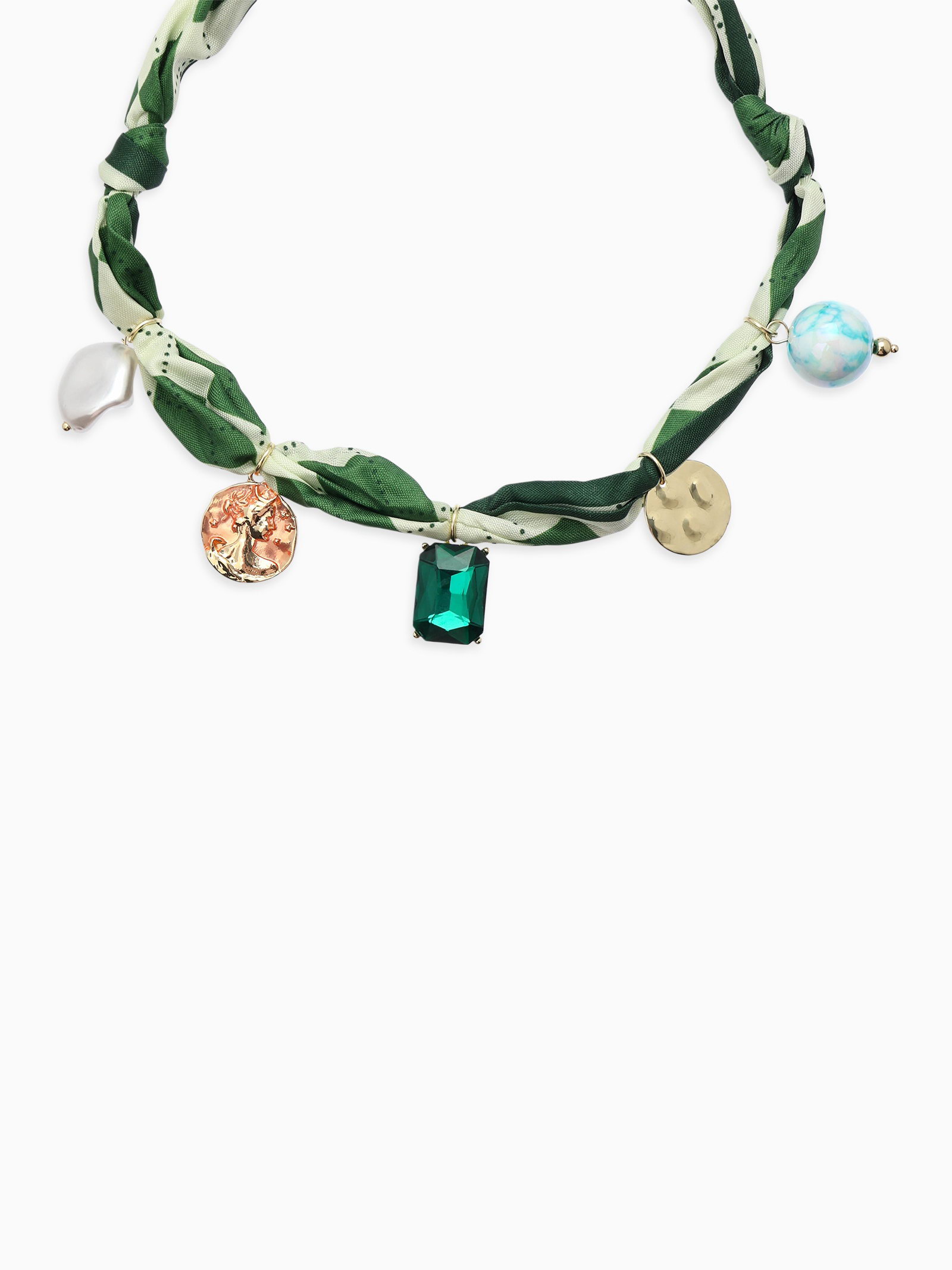 Колье-чокер на платке "Стиль". цвет изумрудный с золотом, 2x30x1 см., QF, Китай
