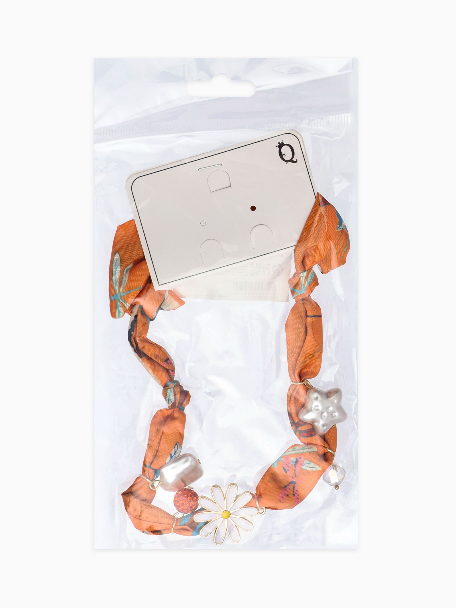 Колье-чокер на платке "Стиль". цвет оранжевый с золотом, 2x30x1 см., QF, Китай