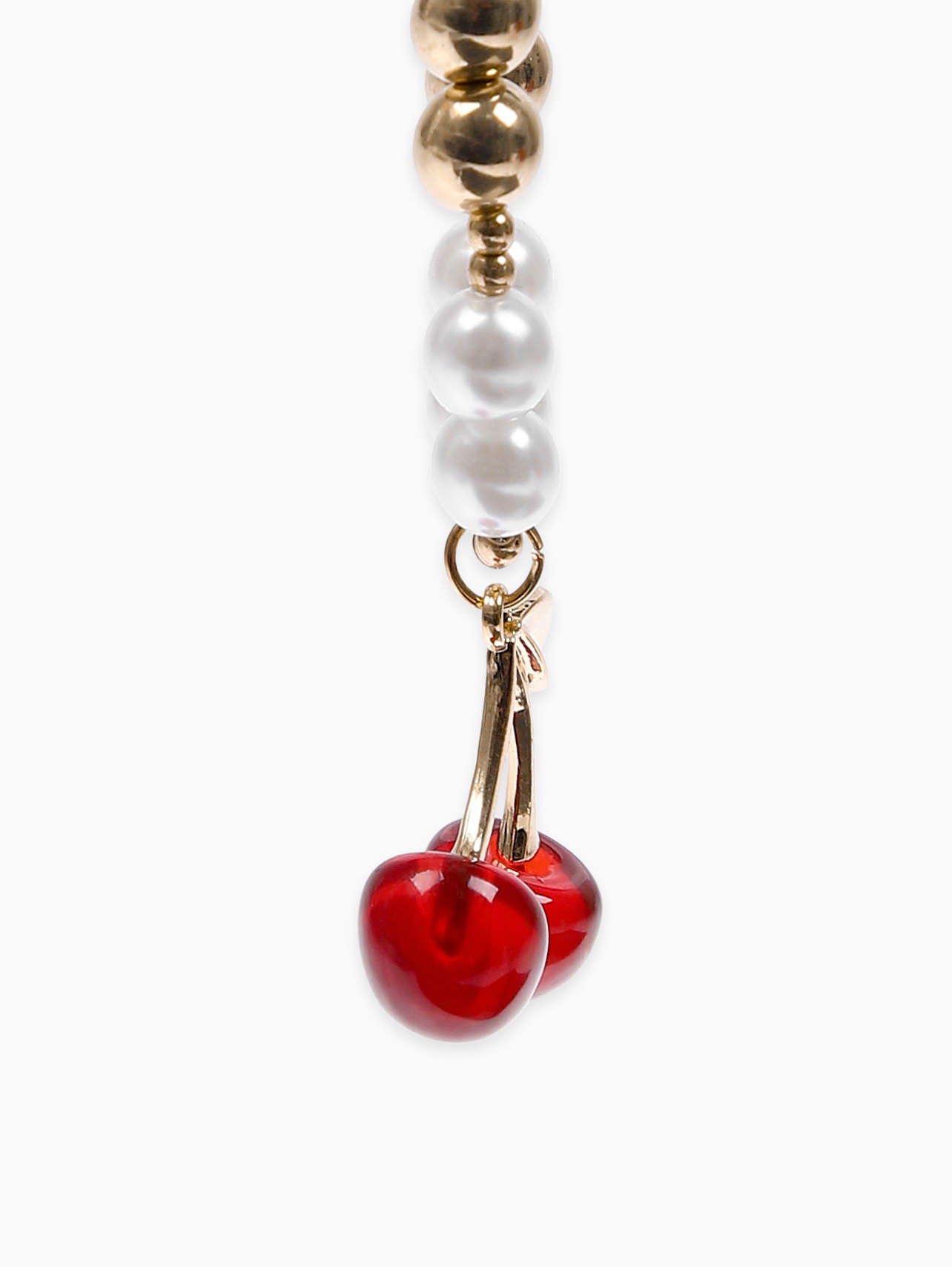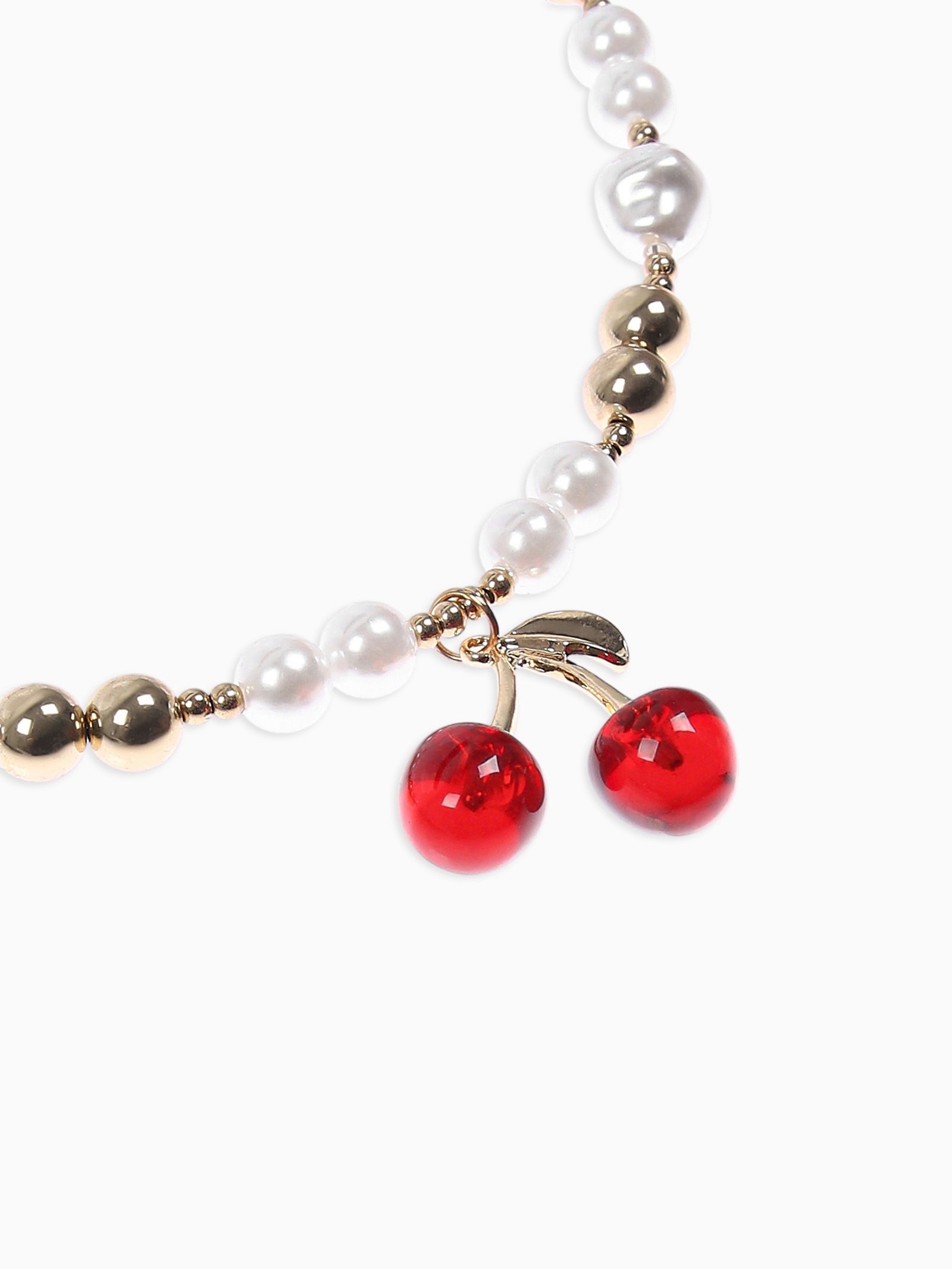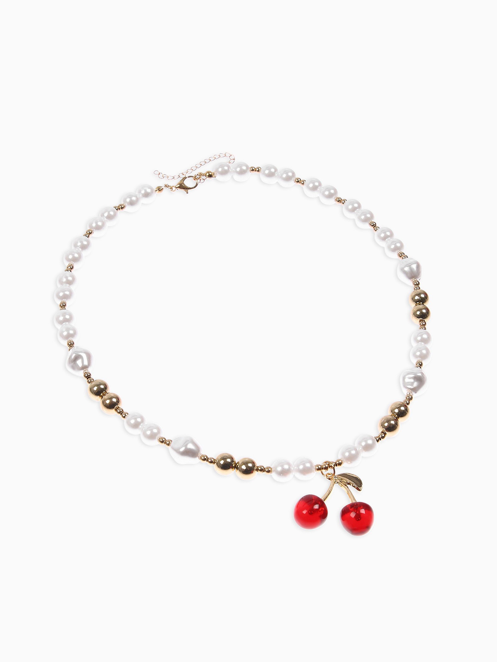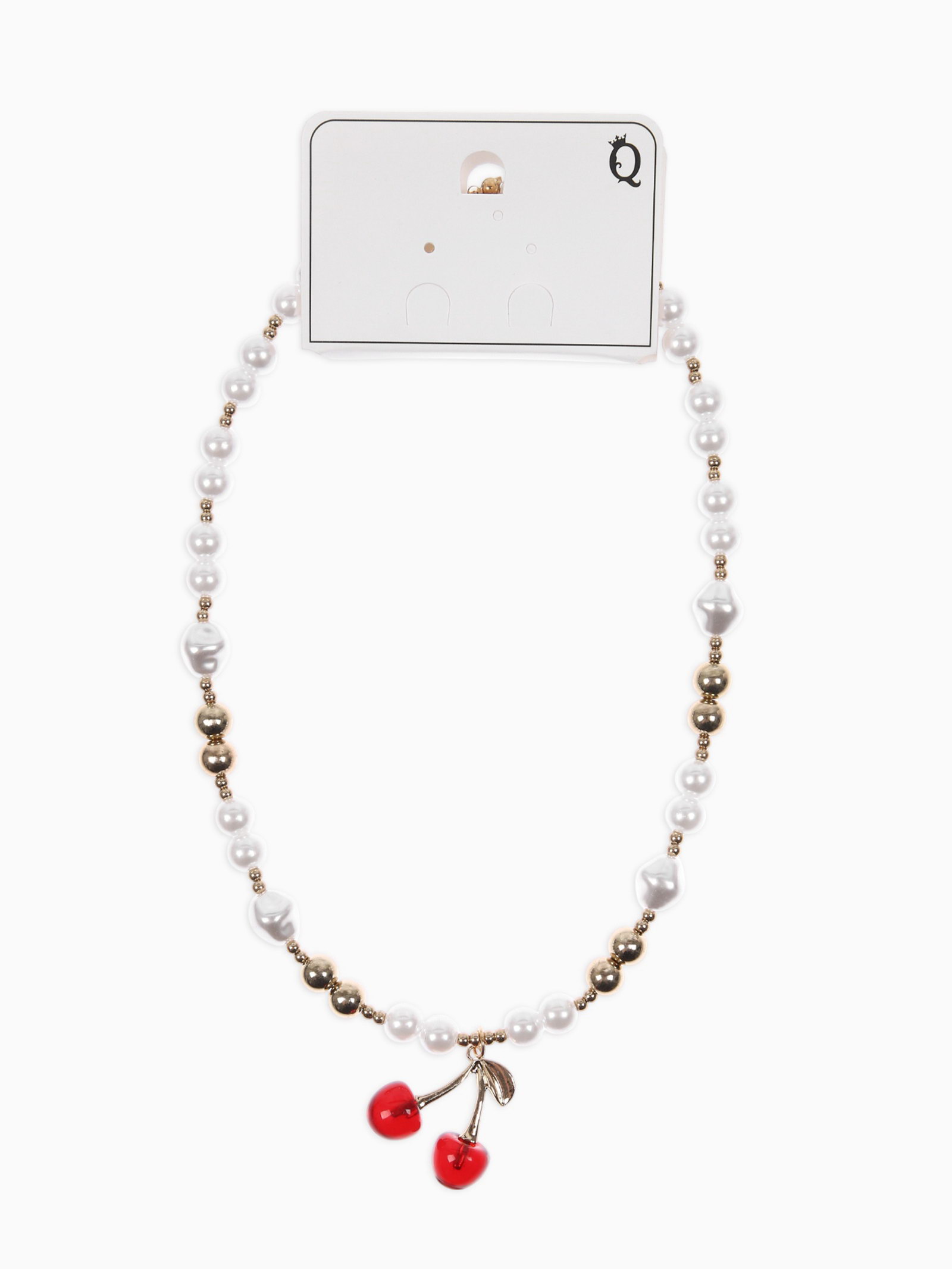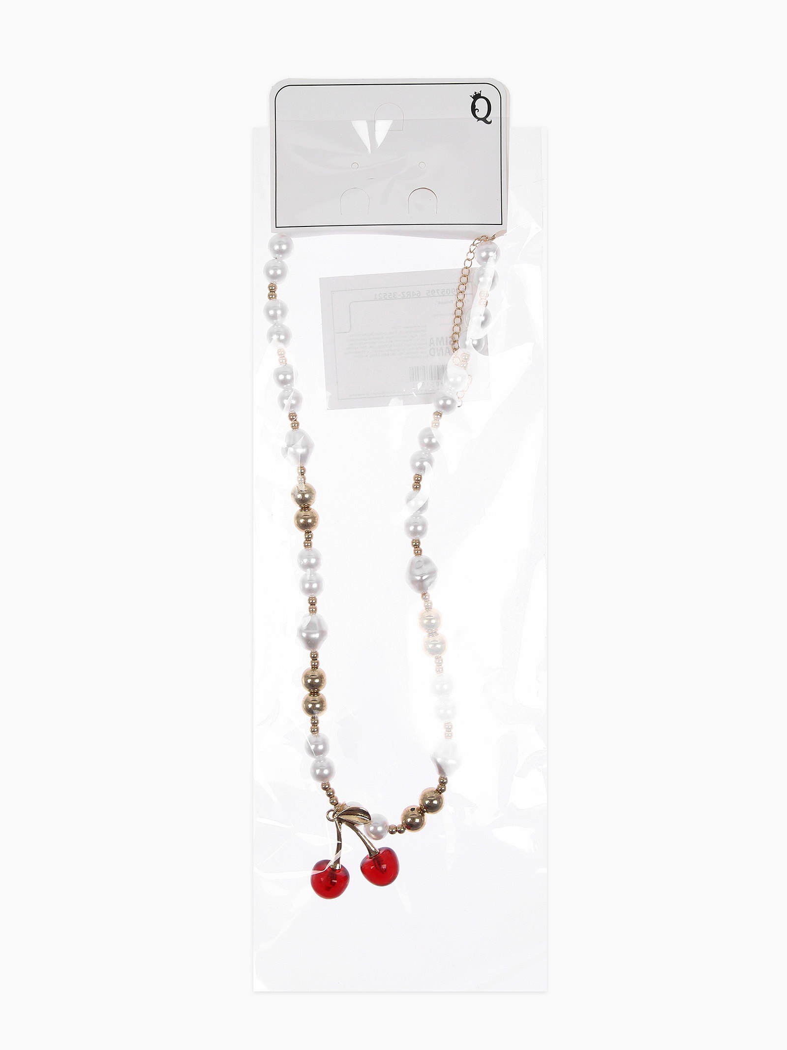 Кулон на жемчужных бусах "Вишня", белый в золоте, 3.5x50x1.5 см., QF, Китай