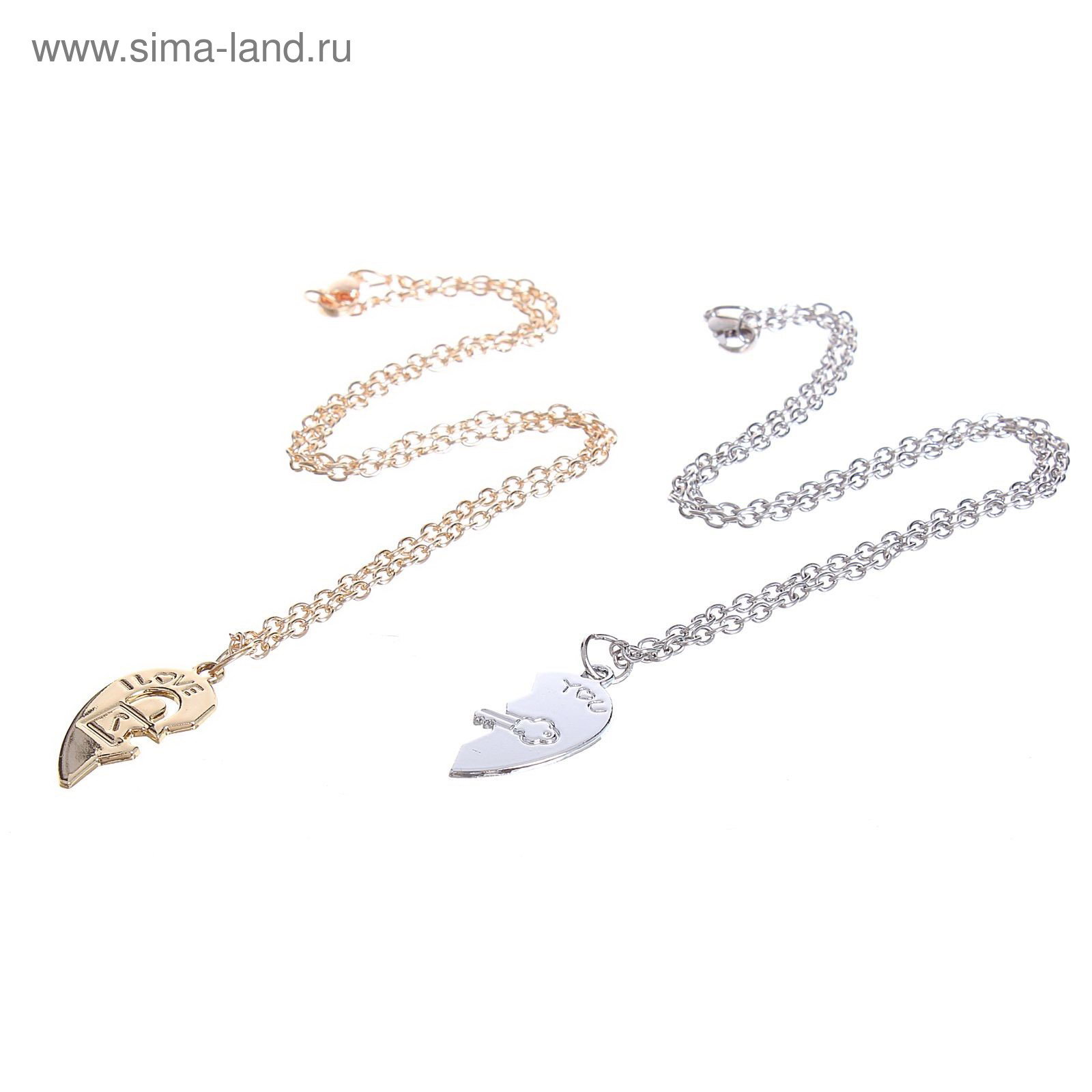 Кулоны парные "Неразлучники. Половинки сердец, ключ и замок", цвет серебристо-золотой, 45 см, 2.5x45x3 см., Tell your story, Китай