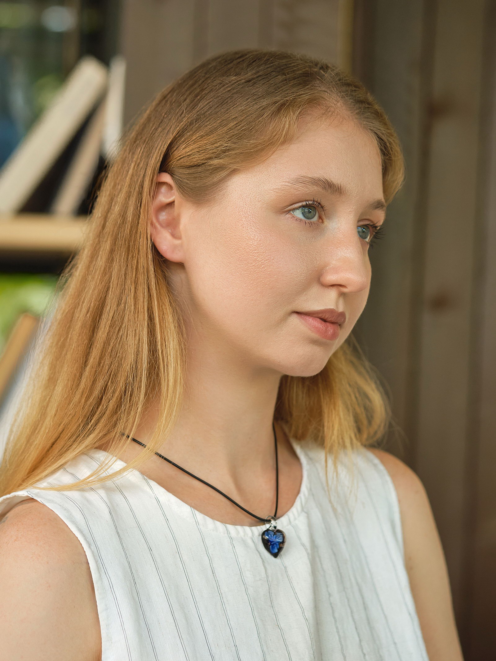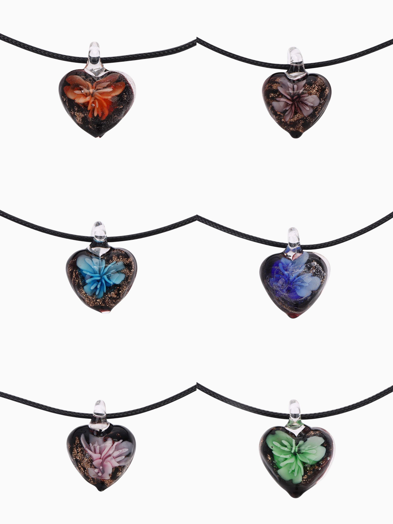 Кулон на шнурке "Муранское стекло", малый, сердечко темное, МИКС, 45 см, 1x45x1 см., QF, Китай