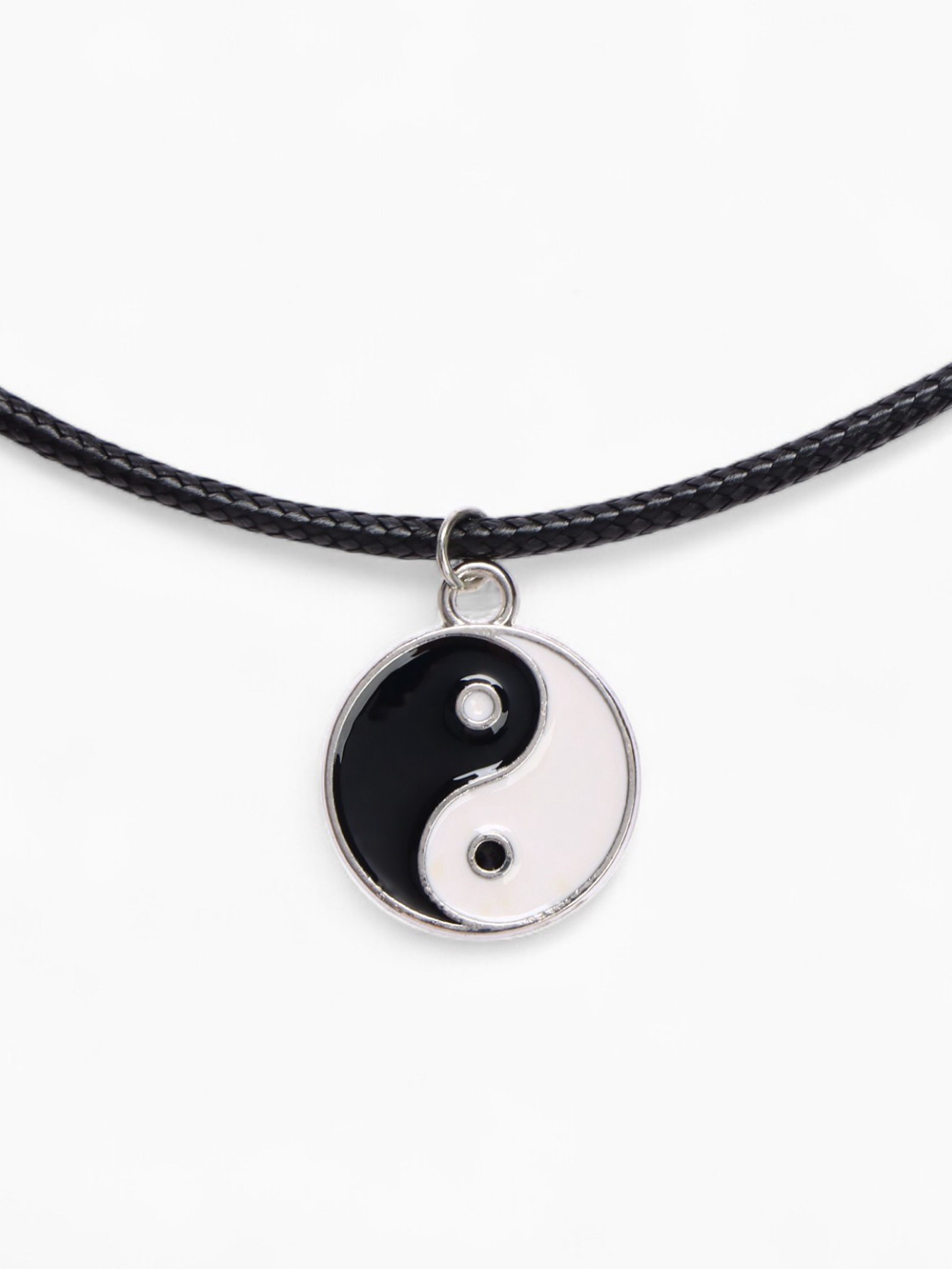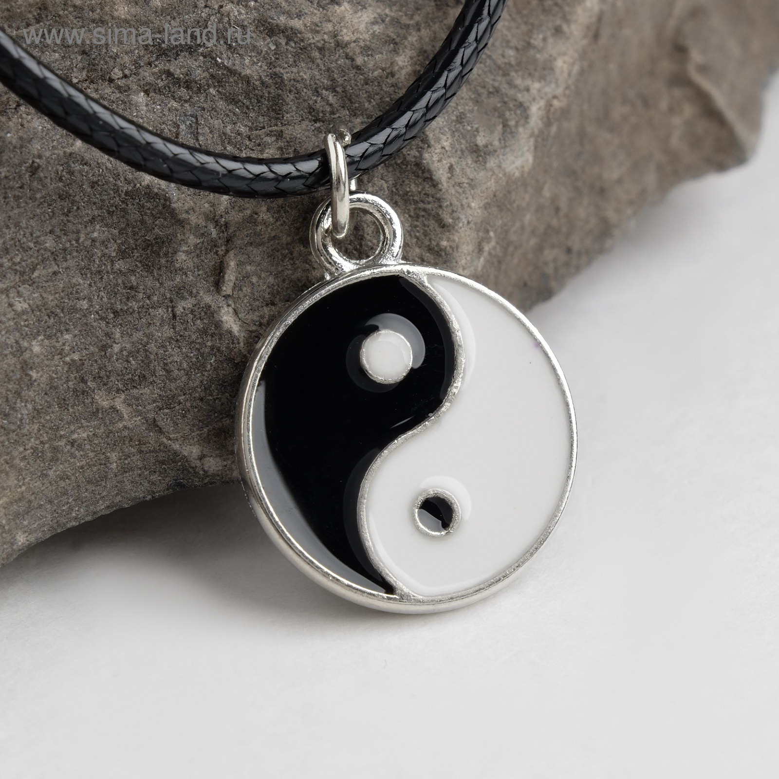 Кулон на шнурке "Инь-ян", чёрно-белый в серебре, 45 см, 2.5x45x0.3 см., QF, Китай