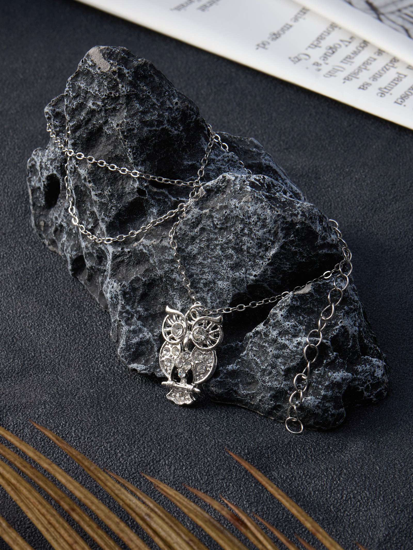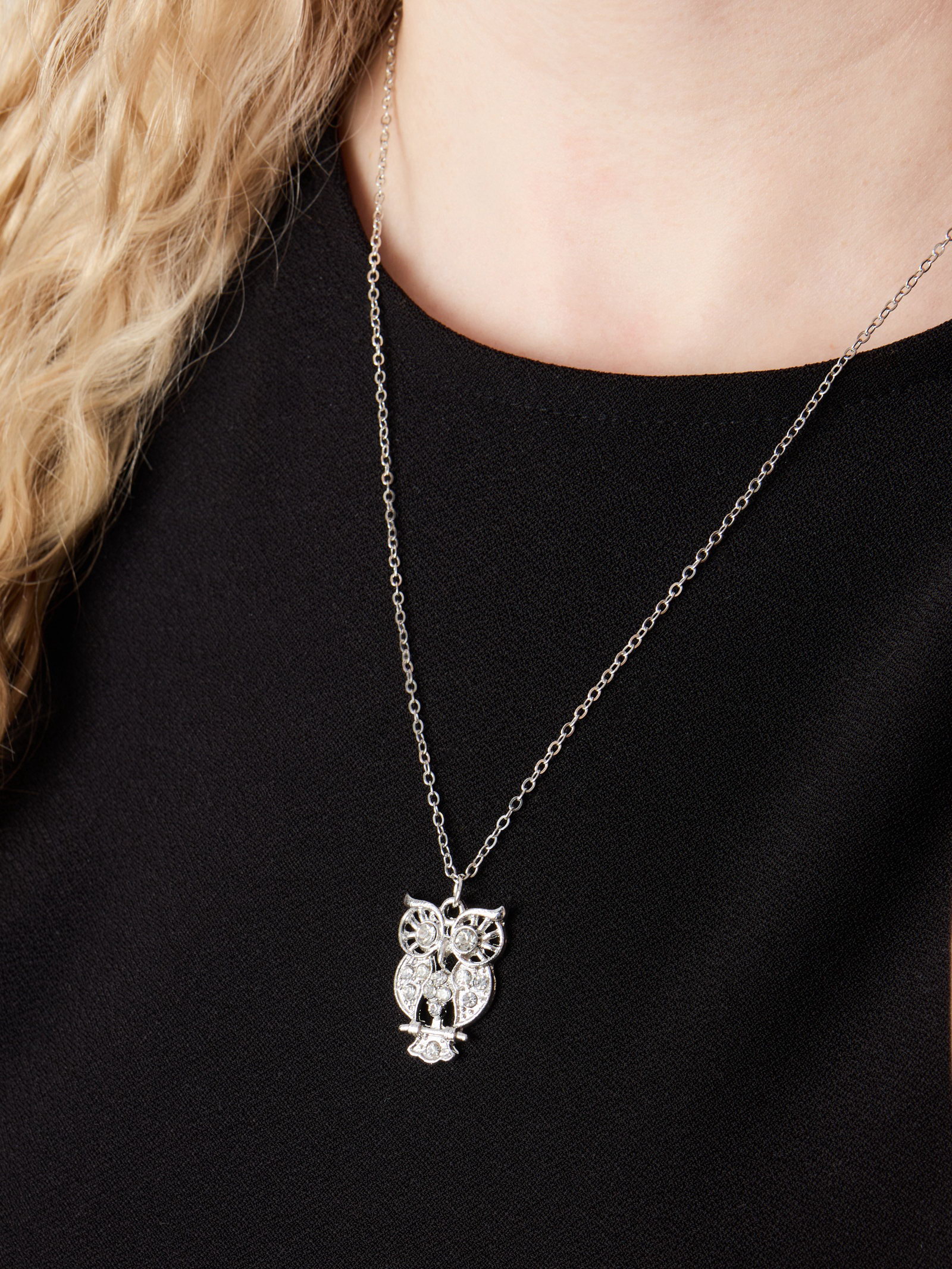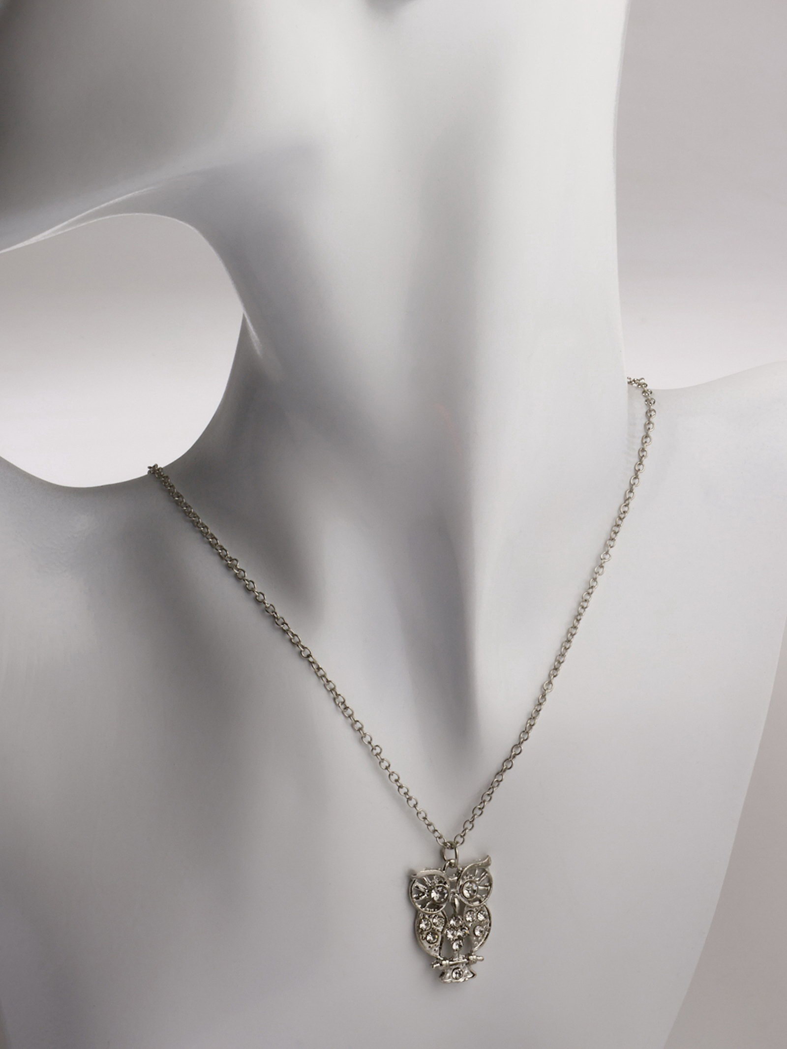 Кулон "Ажурная сова", белый в серебре, 45 см, 20x45x1 см., QF, Китай