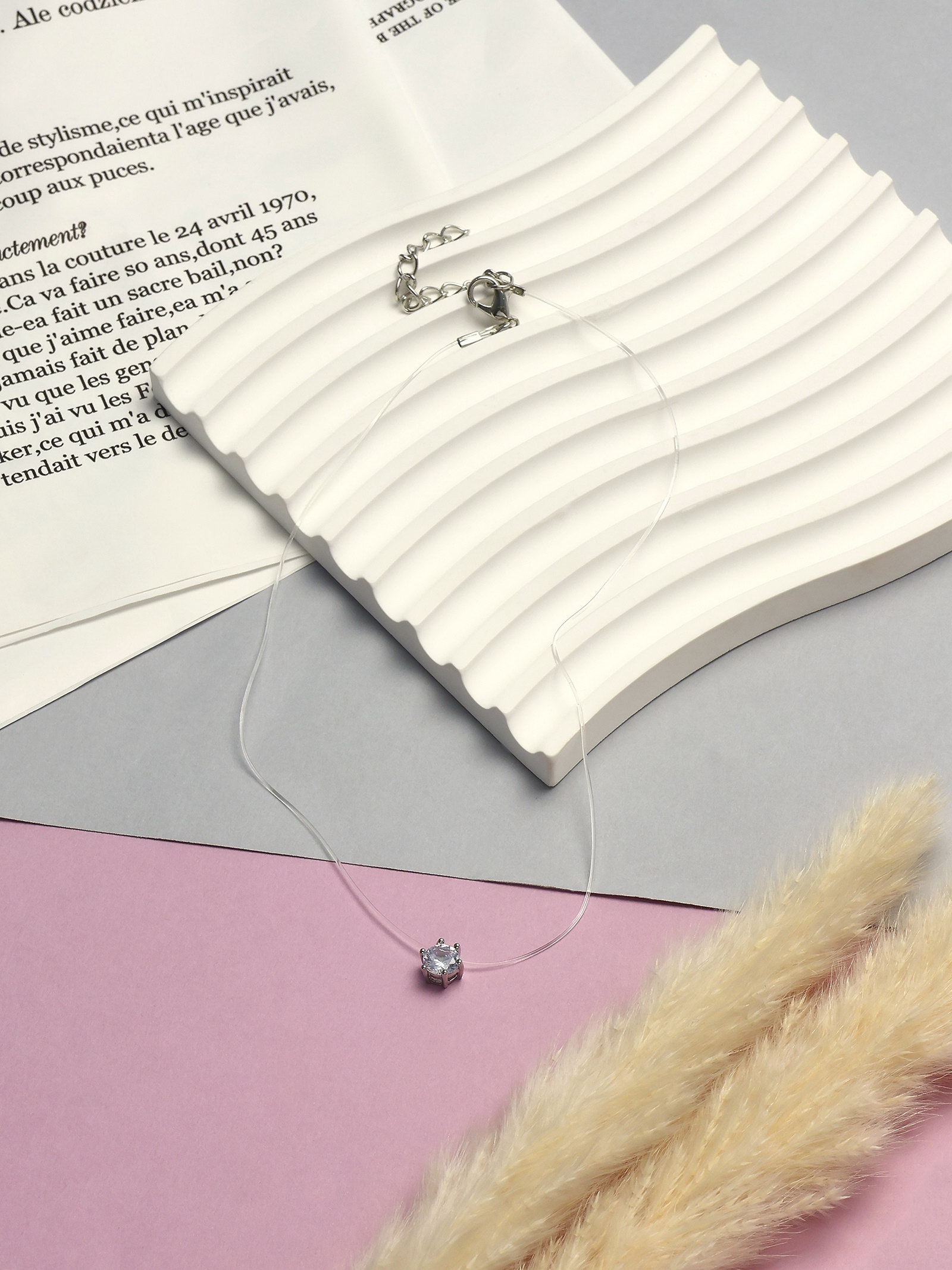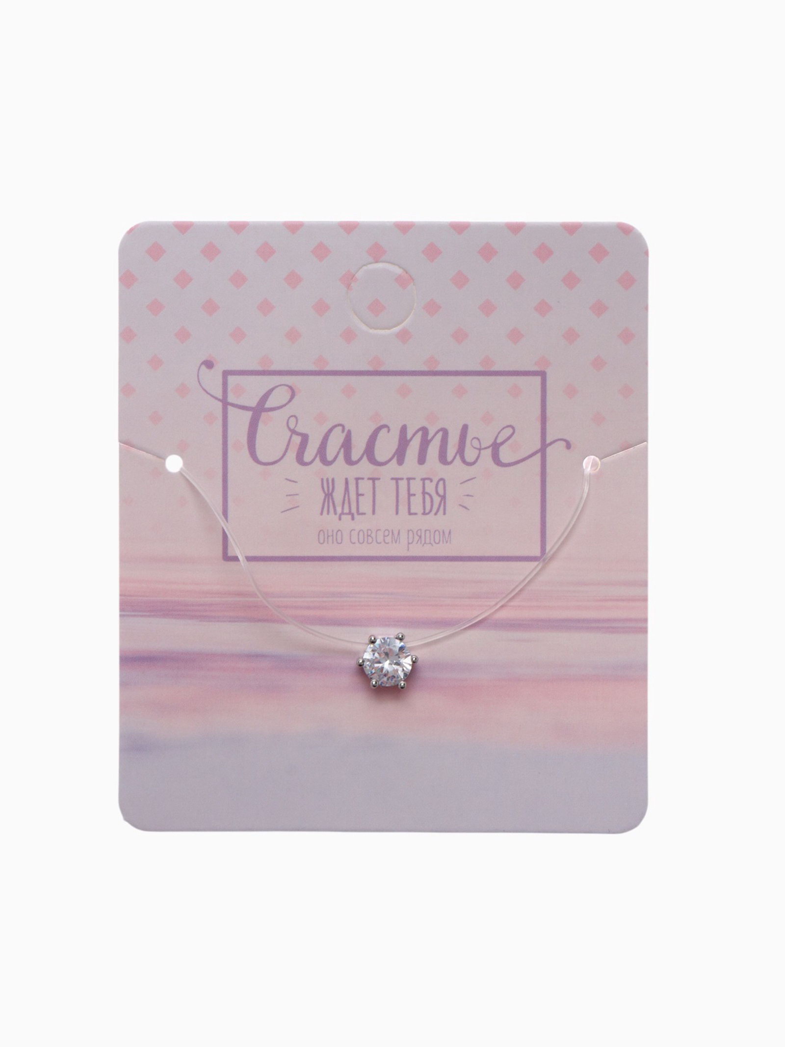 Кулон на леске "Счастье ждёт тебя", белый в серебре, 40 см, 0.8x40x0.8 см., QF, Китай
