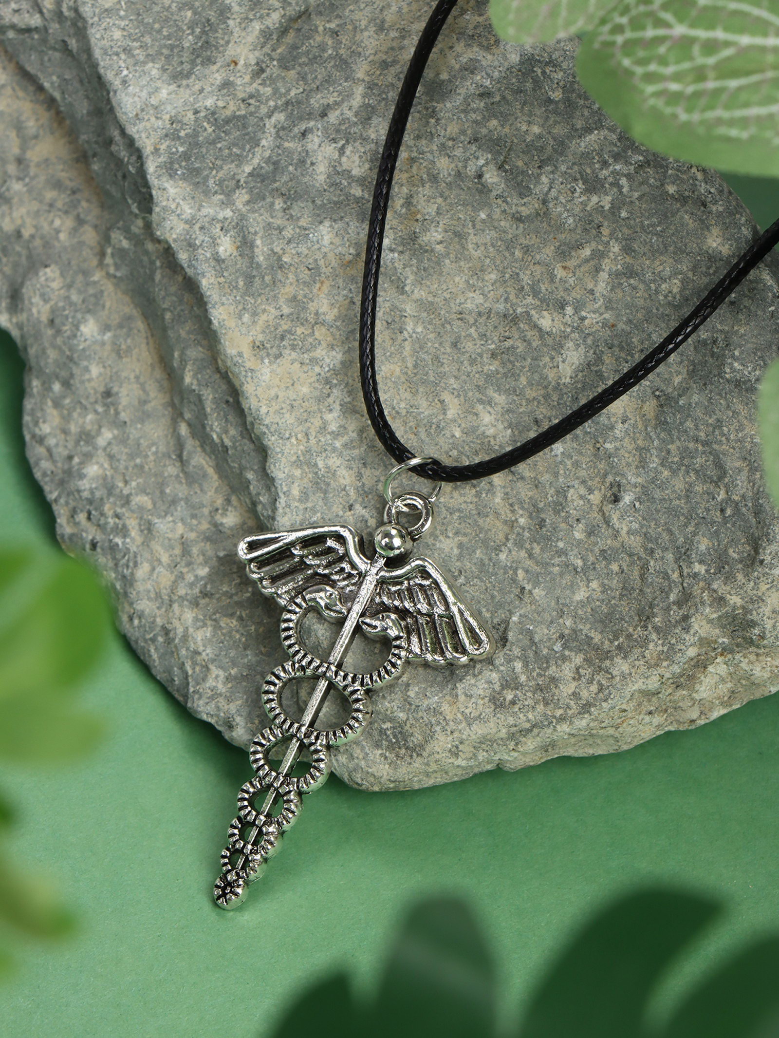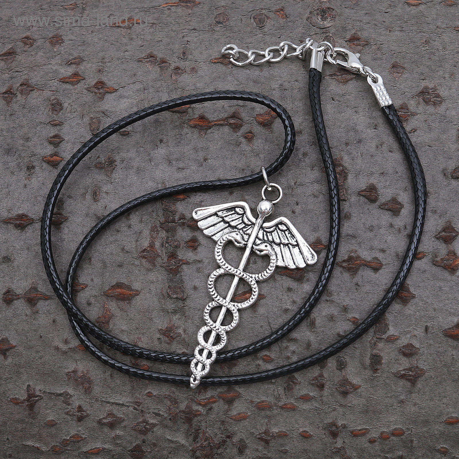 Кулон на шнурке "Кадуцей", цвет чернёное серебро, 40 см, 6.5x40x1 см., QF, Китай
