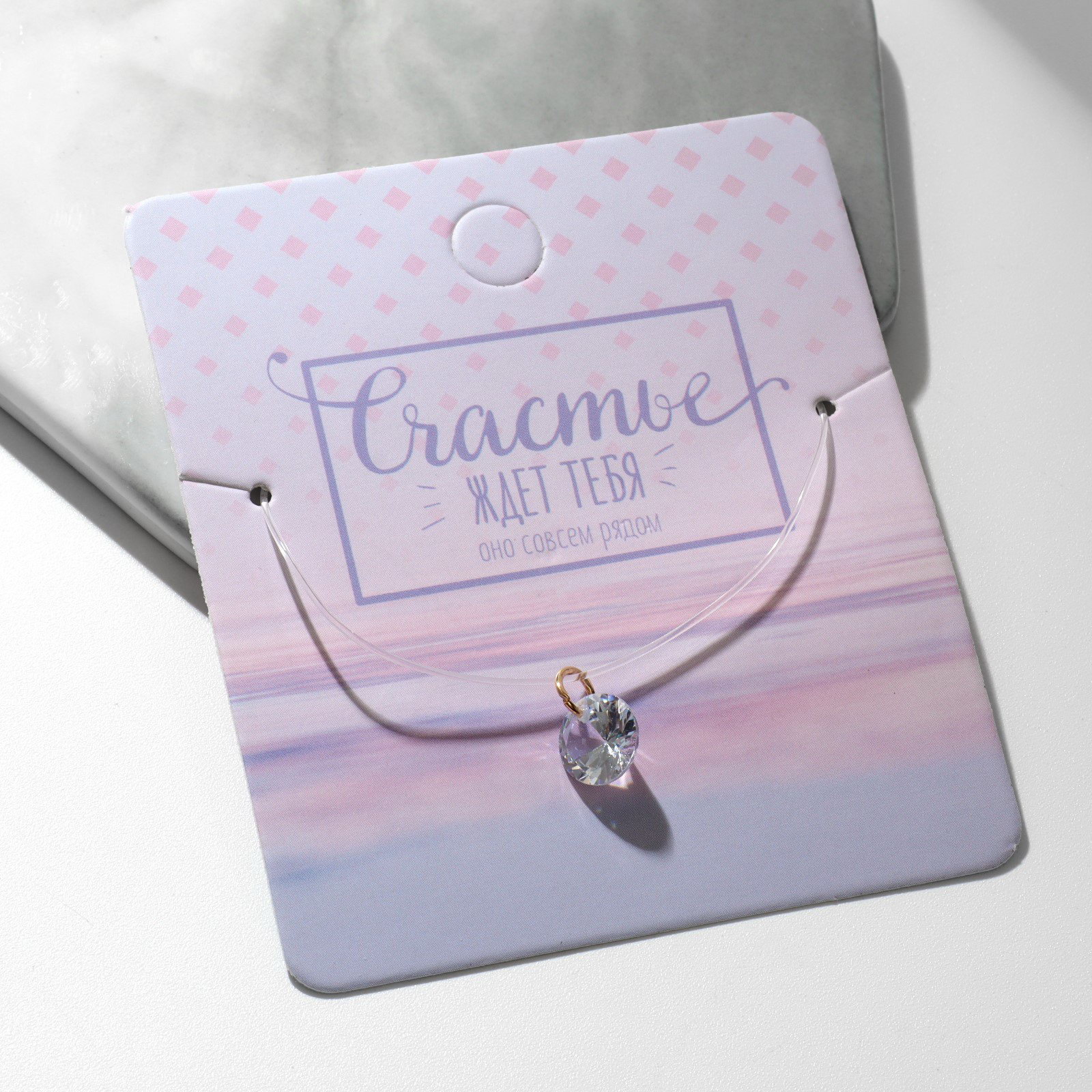 Кулон "На леске" кристаллик, цвет белый в золоте, 30 см, 6.5x30x1 см., QF, Китай