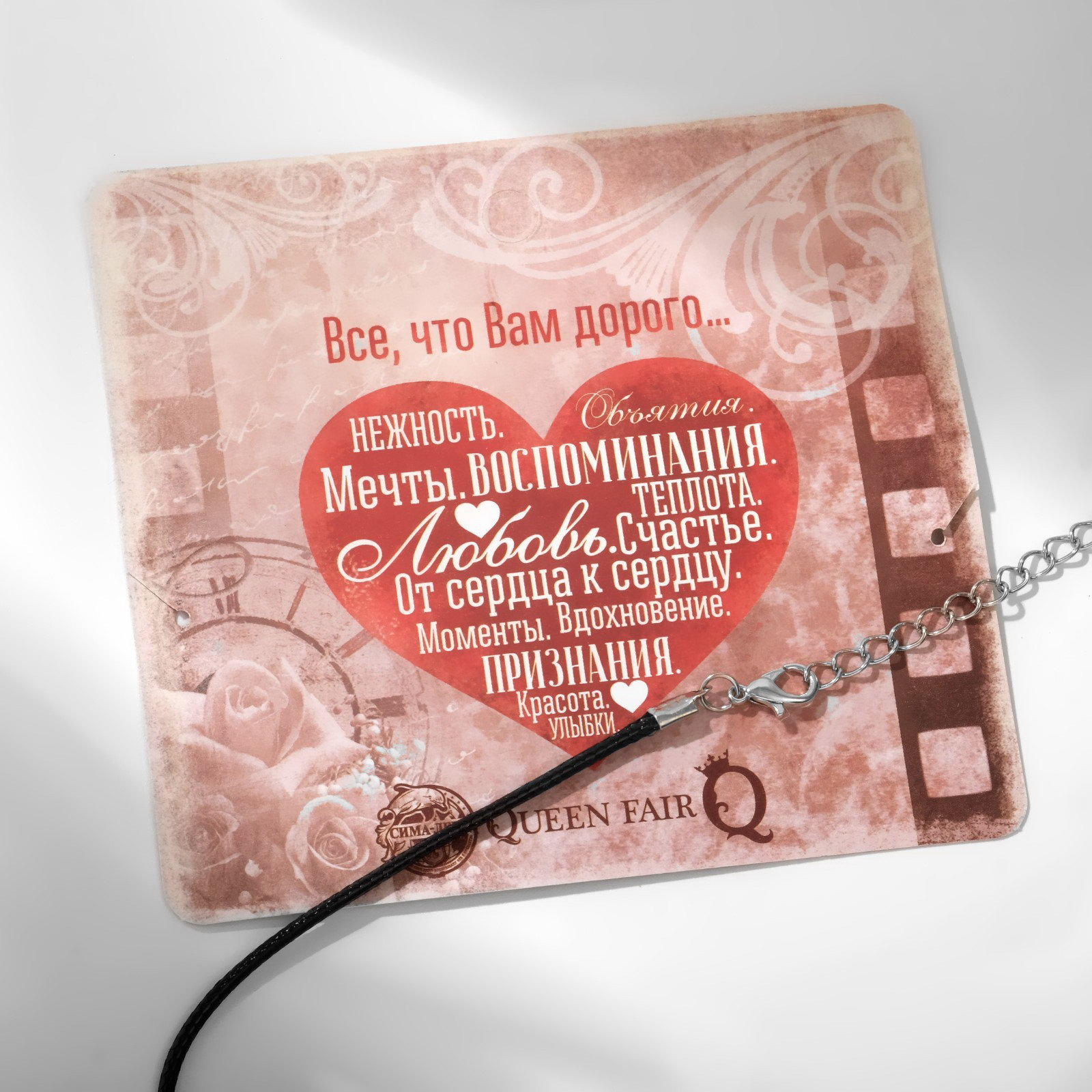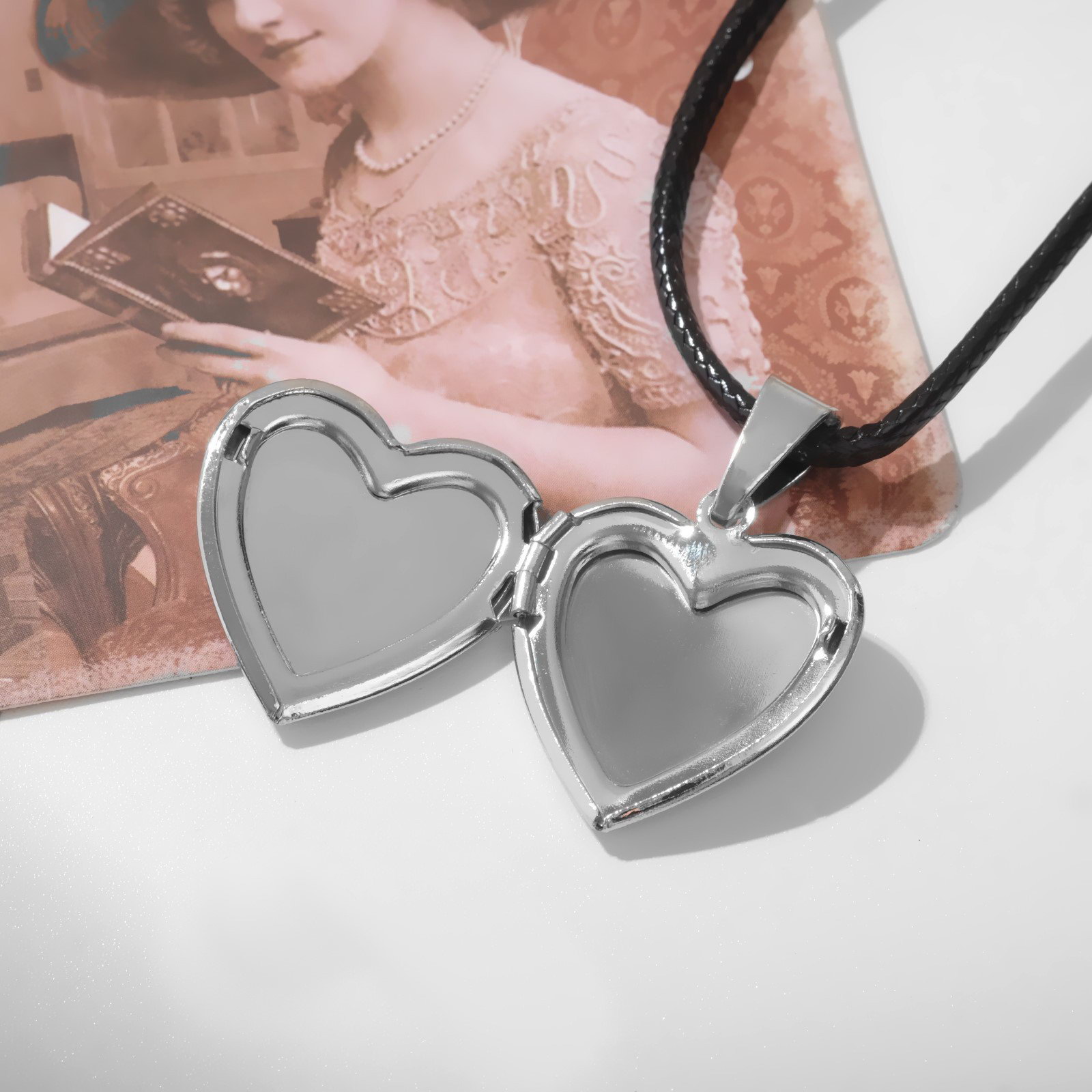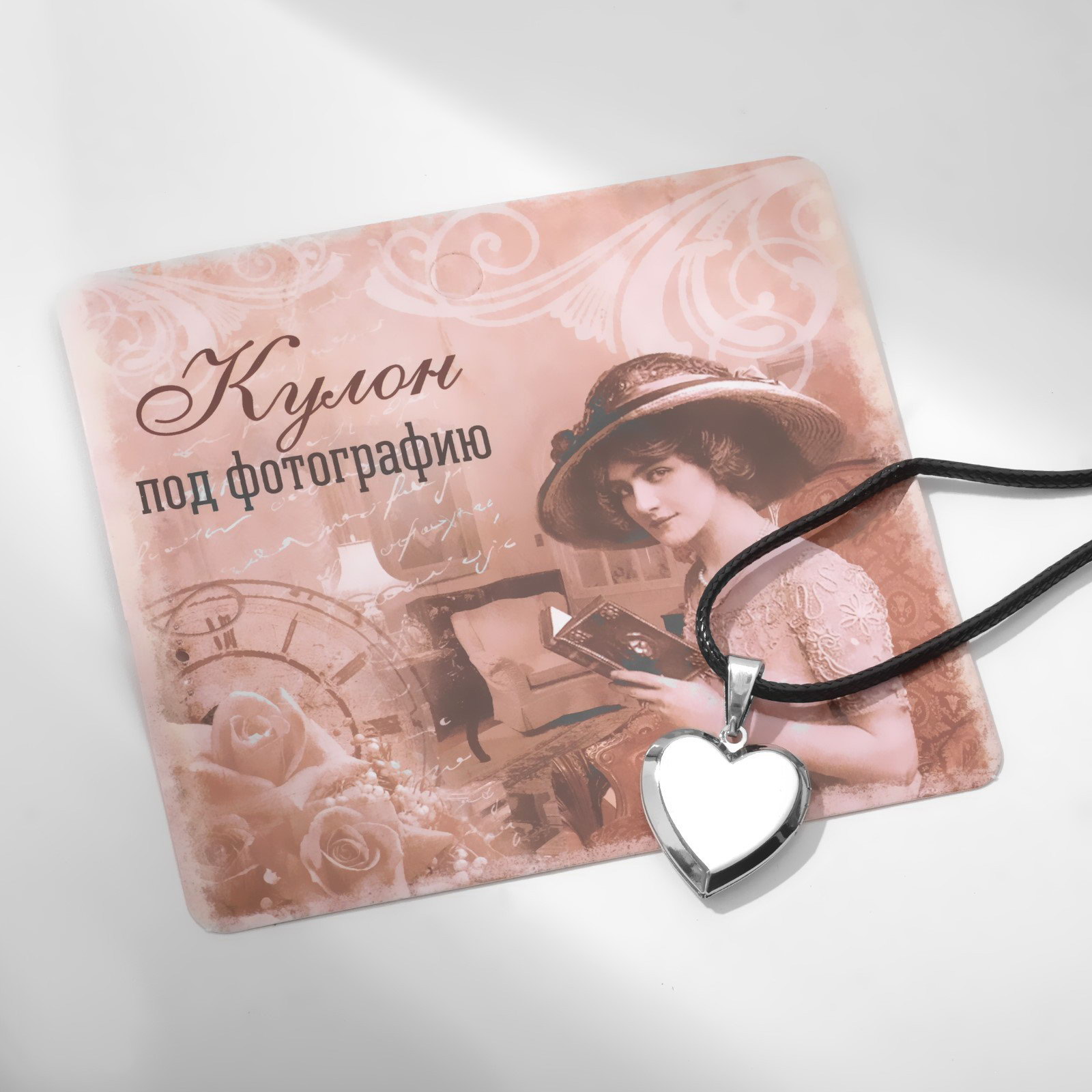 Кулон на шнурке "Для фото" сердце, цвет серебро на чёрном шнурке, 45 см, 2.5x45x3 см., QF, Китай