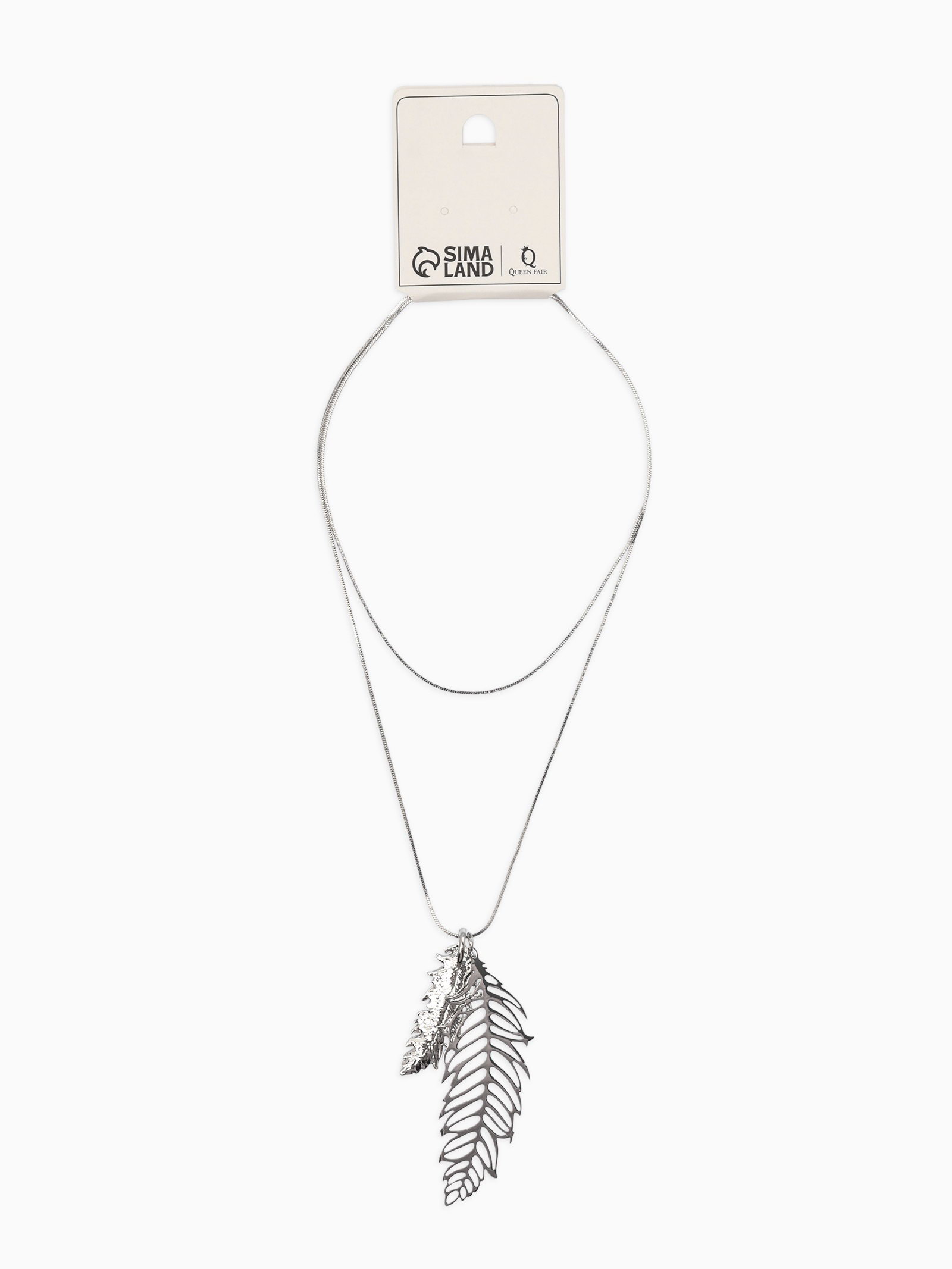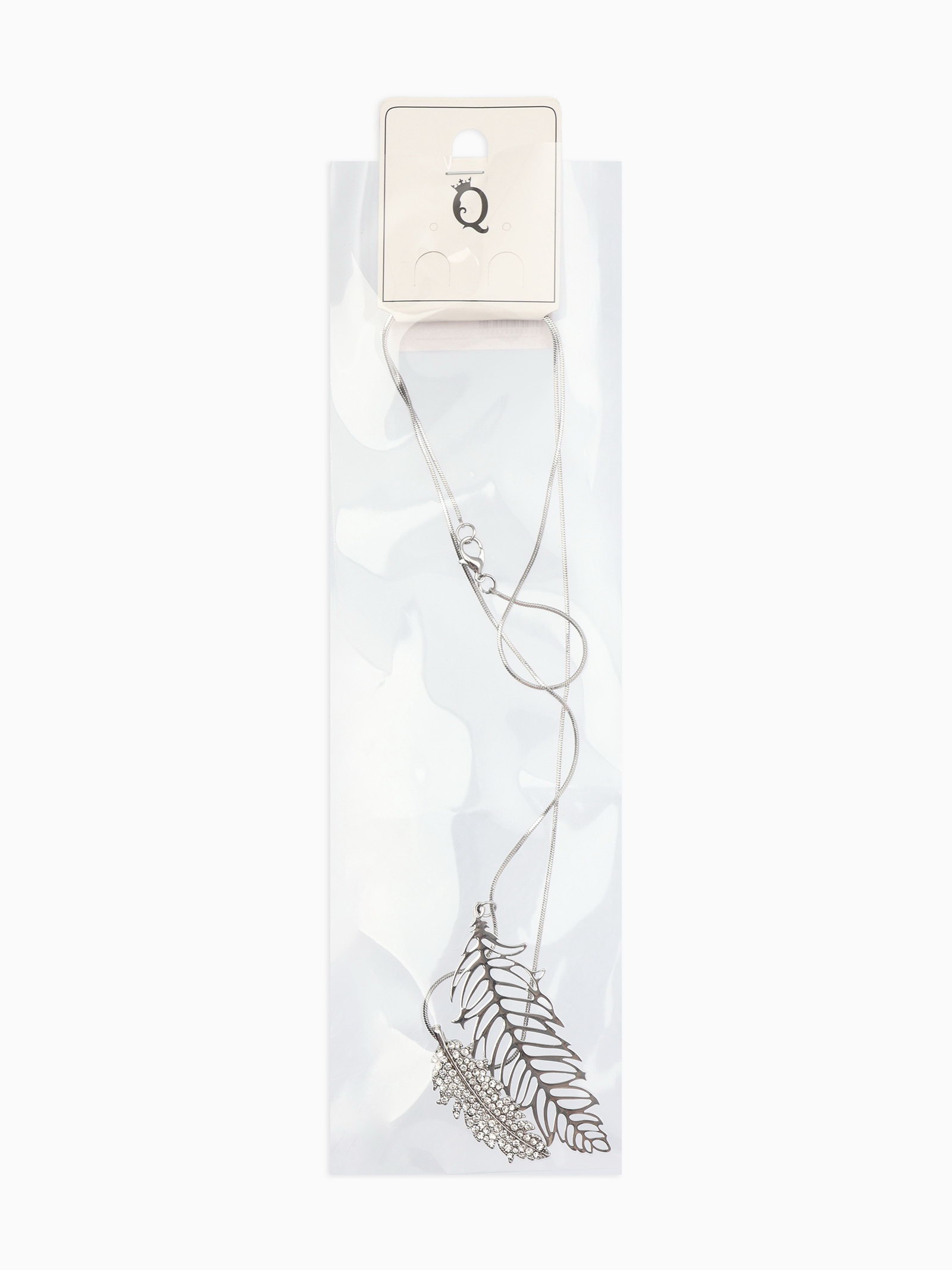Кулон на цепочке "Перо", ангела, белый в серебре, 72 см, 6.5x72x3 см., QF, Китай
