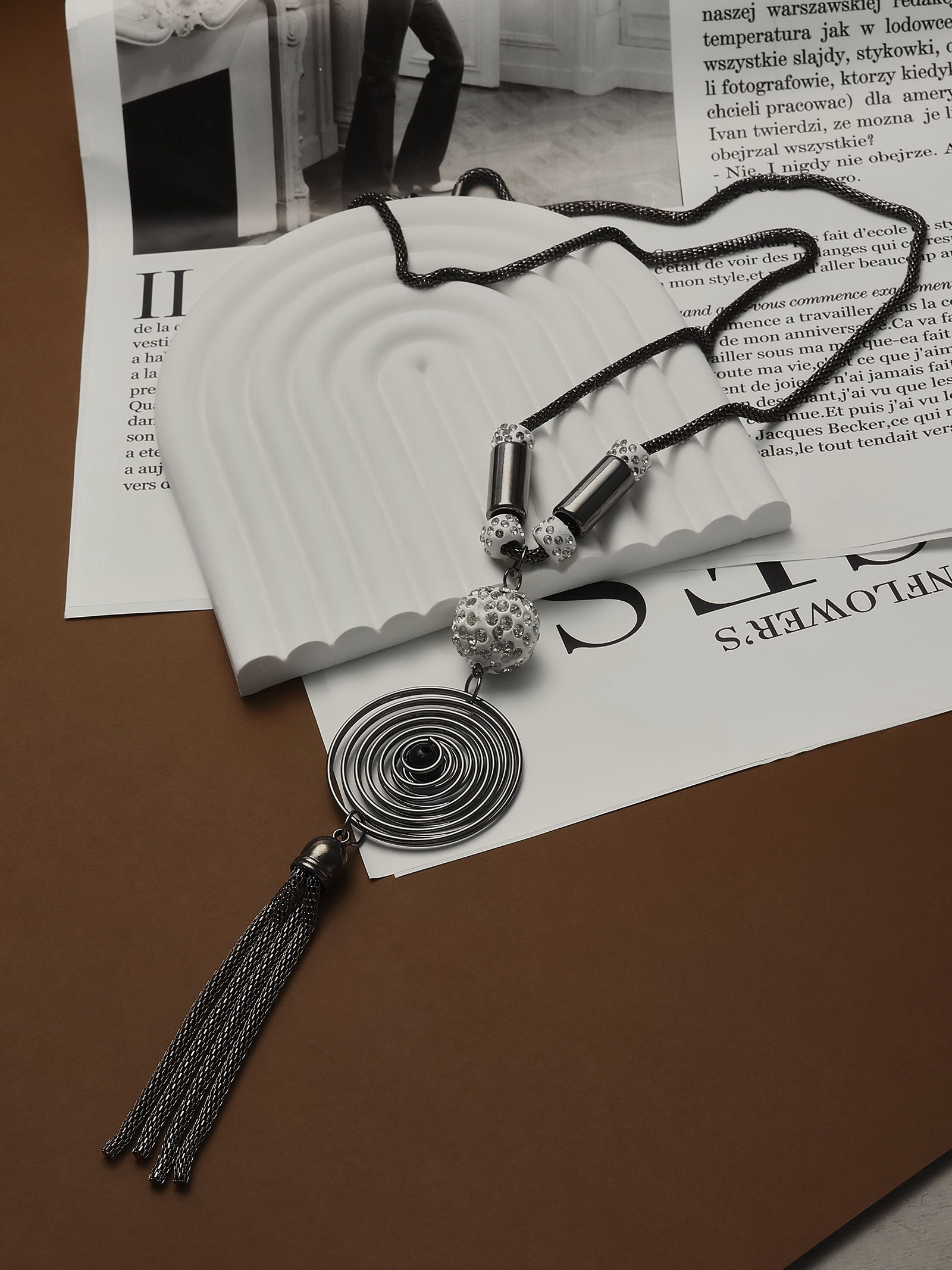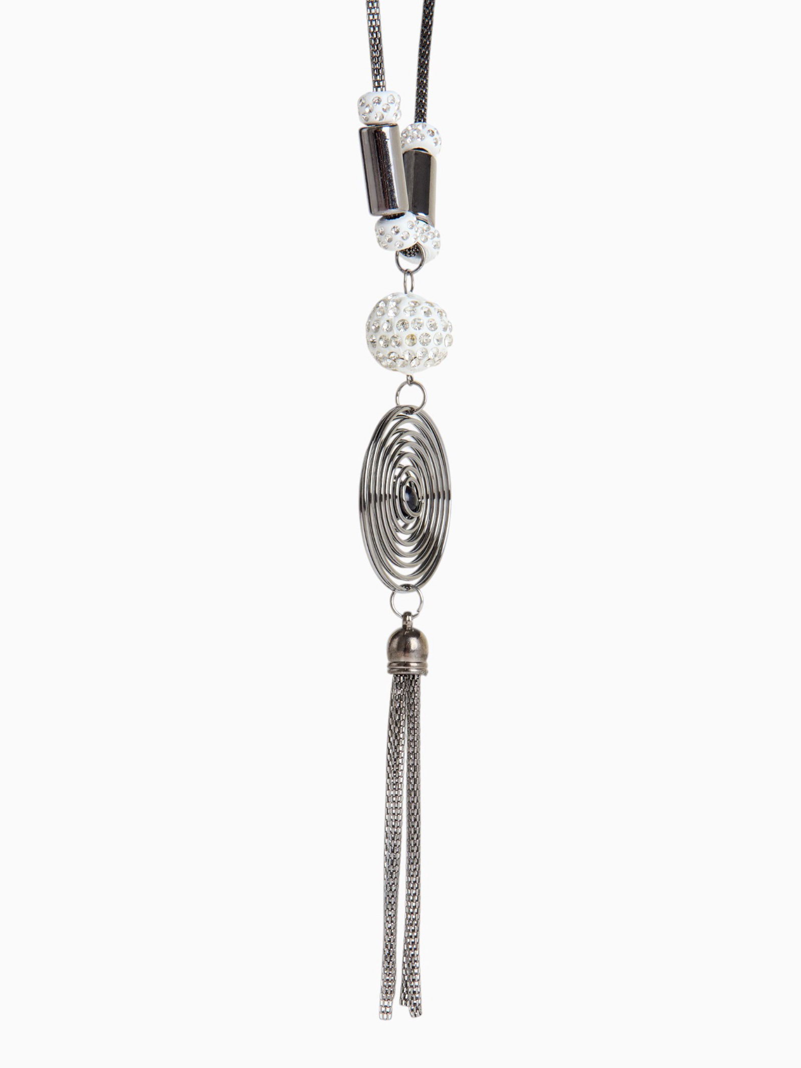 Кулон на цепочке "Спираль", бело-серый, L=70 см, 19x70x4.5 см., QF, Китай