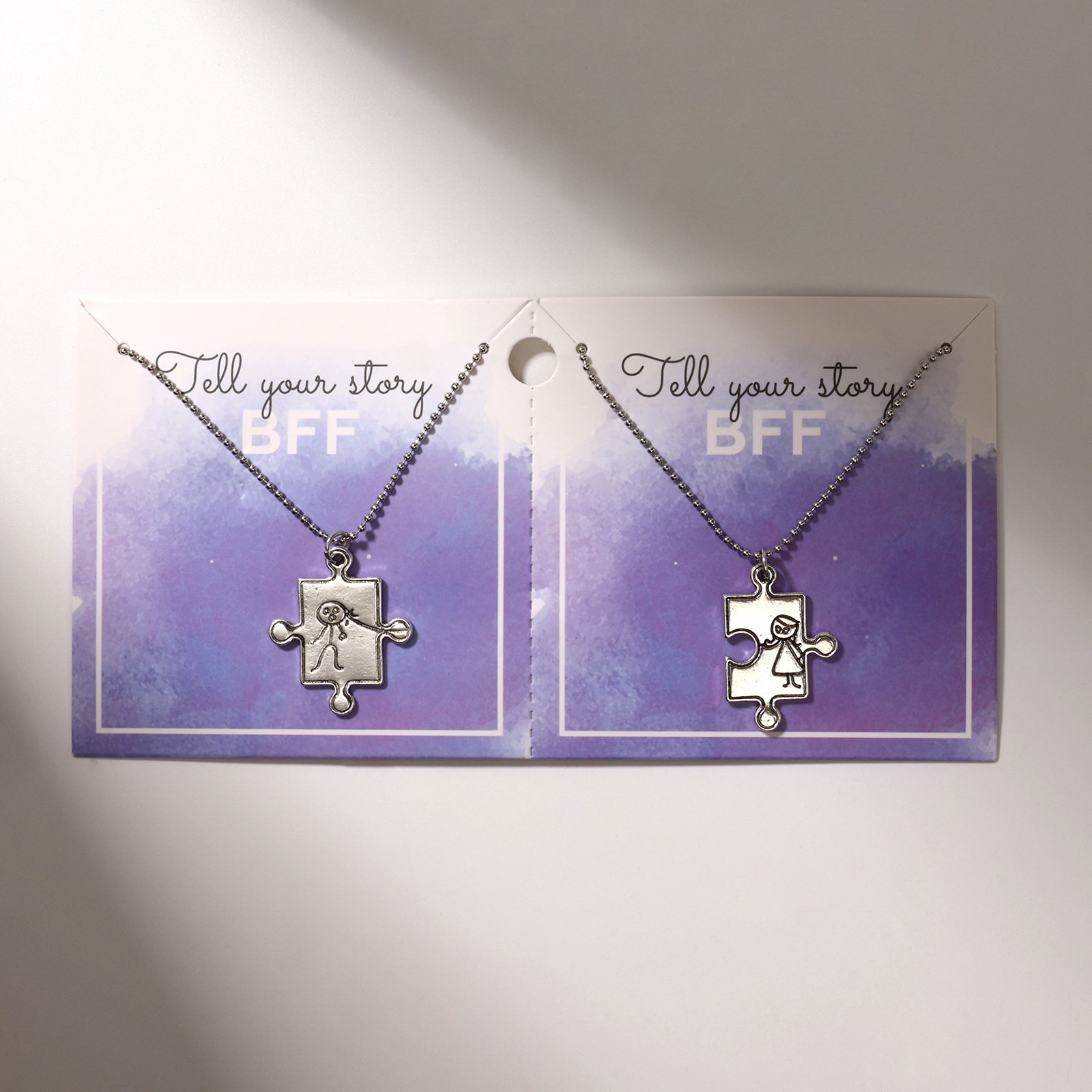 Кулоны парные на цепочке "Пазлы", 45 см, цвет чернёное серебро, 3x45x2.7 см., Tell your story, Китай