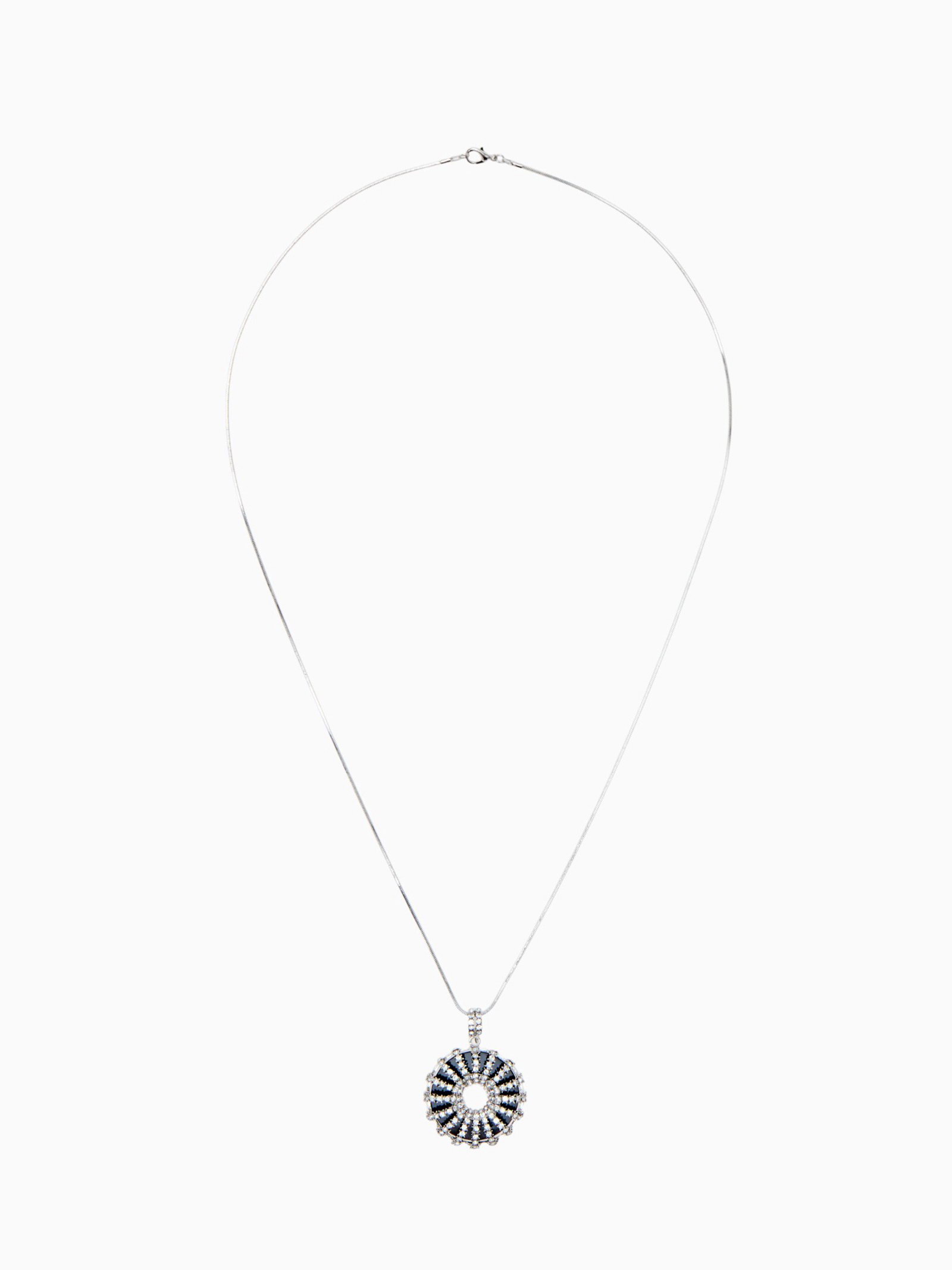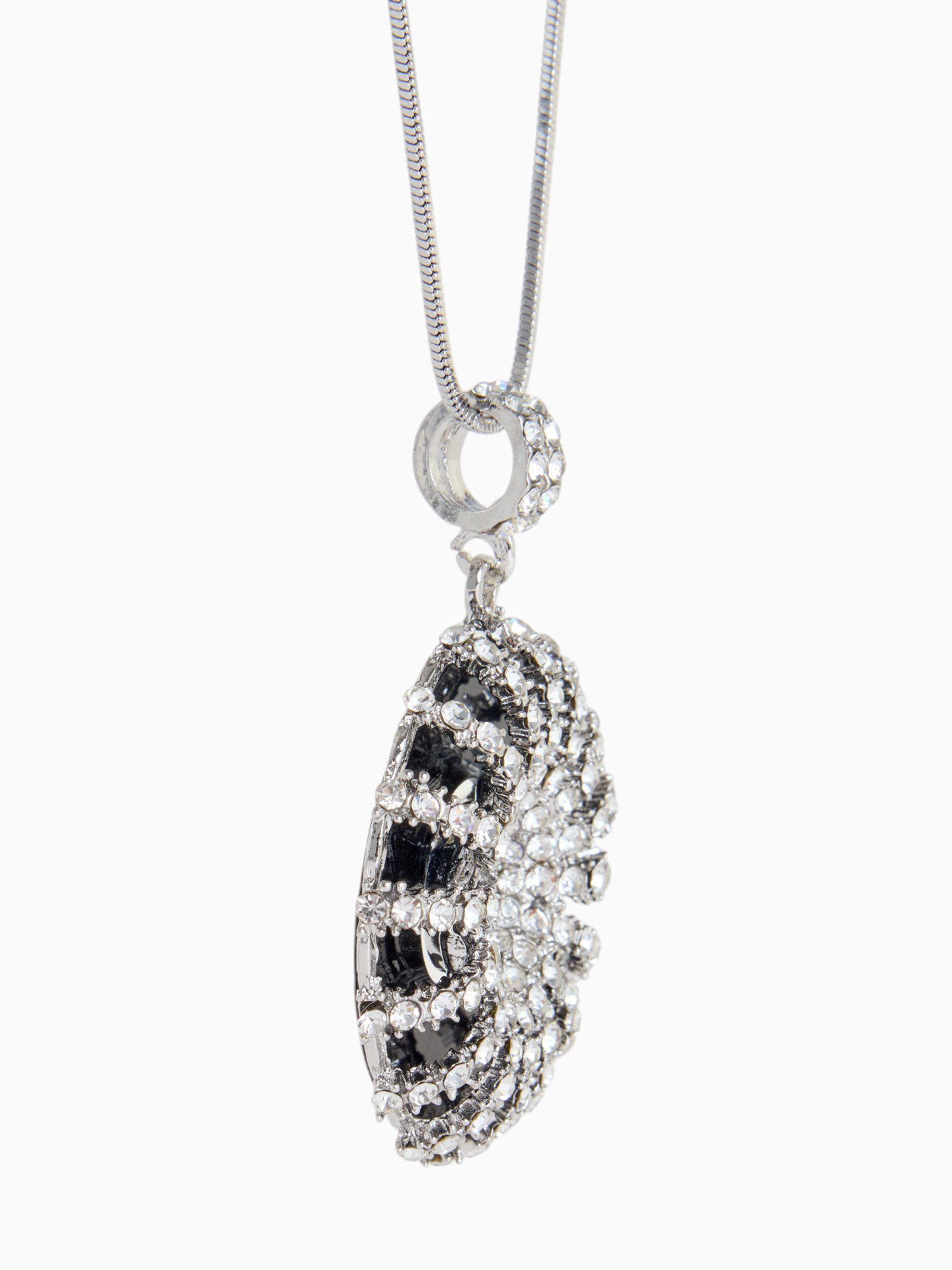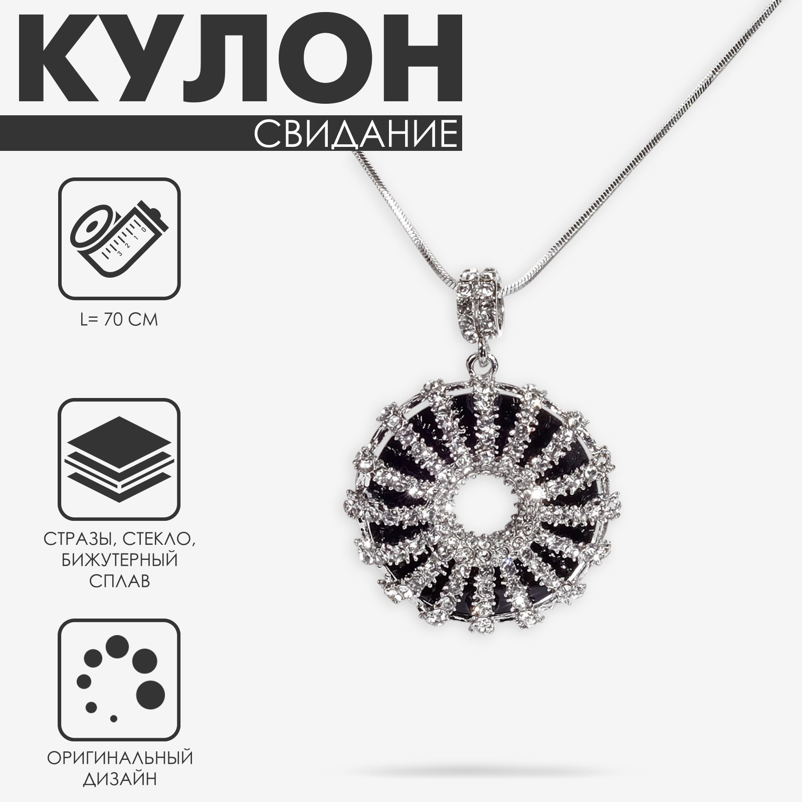 Кулон на цепочке "Свидание", круг с узором, чёрно-белый в серебре, L=70 см, 5.5x70x3.5 см., QF, Китай
