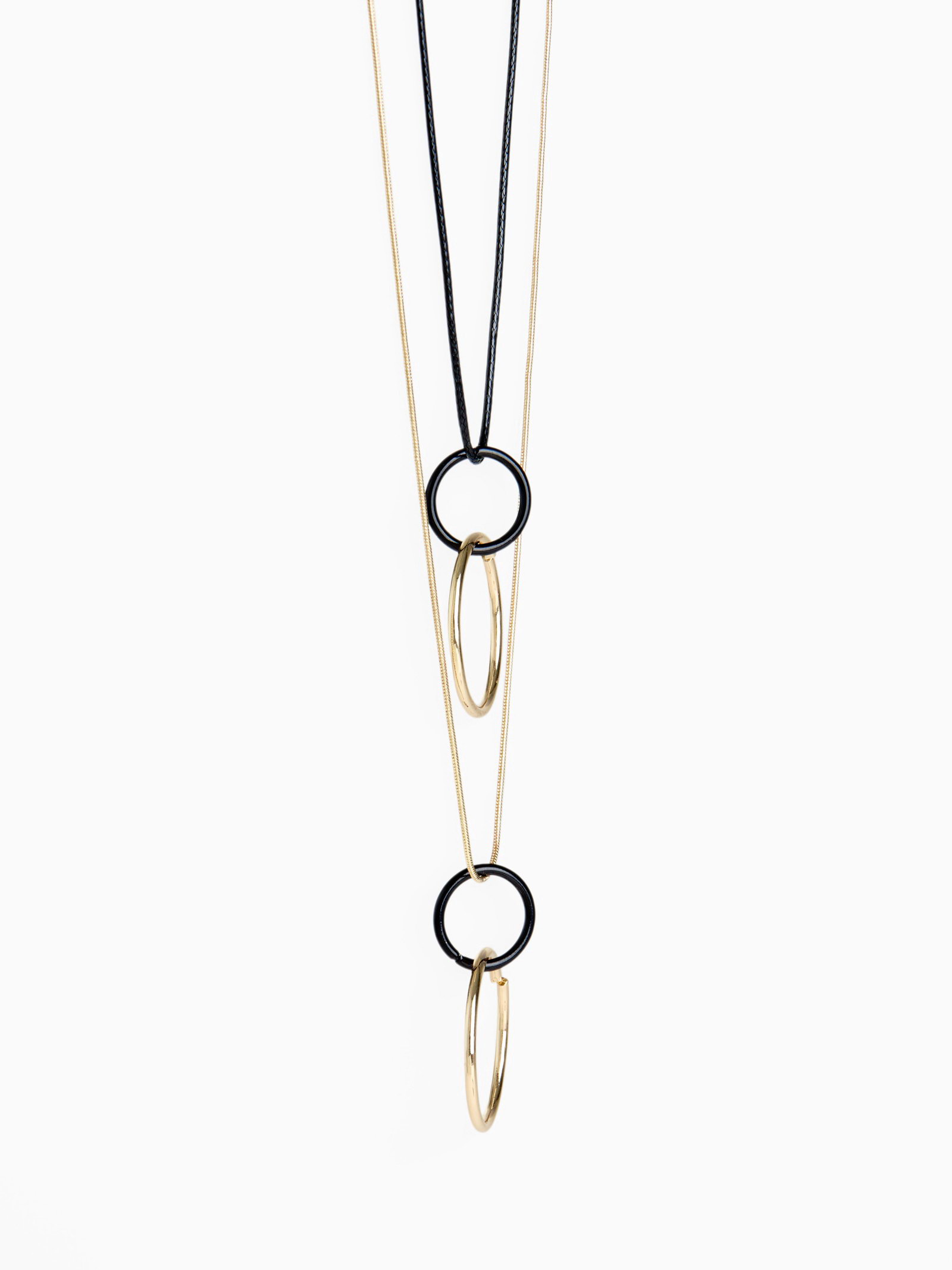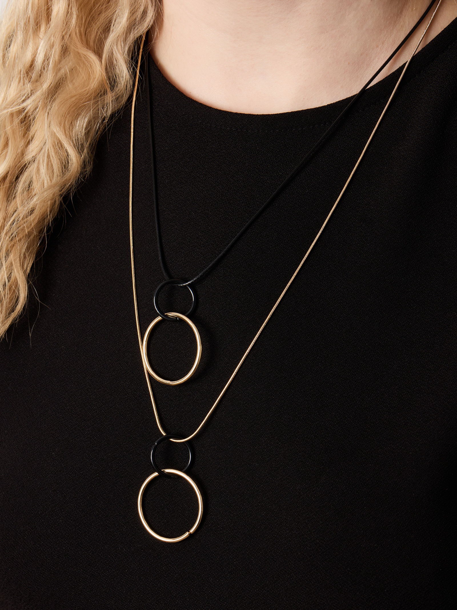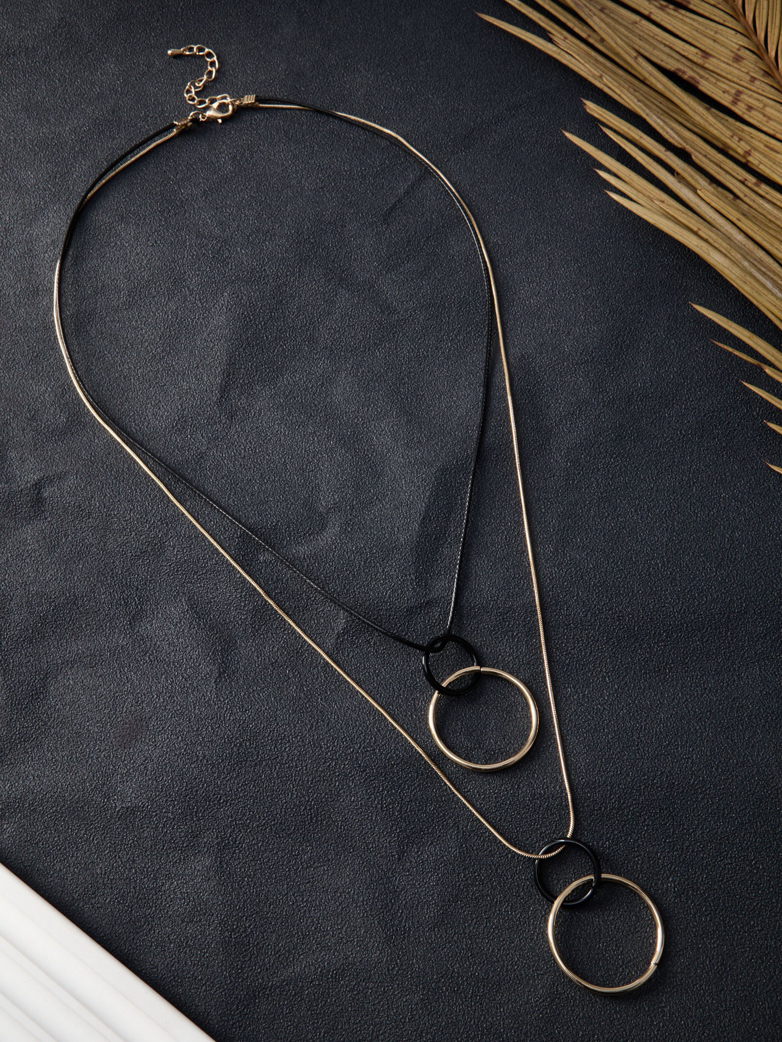 Кулон на цепочке "Цепь", меланхолия, сплетение круги и овалы, чёрный в золоте, 55 см, 5x55x2.5 см., QF, Китай