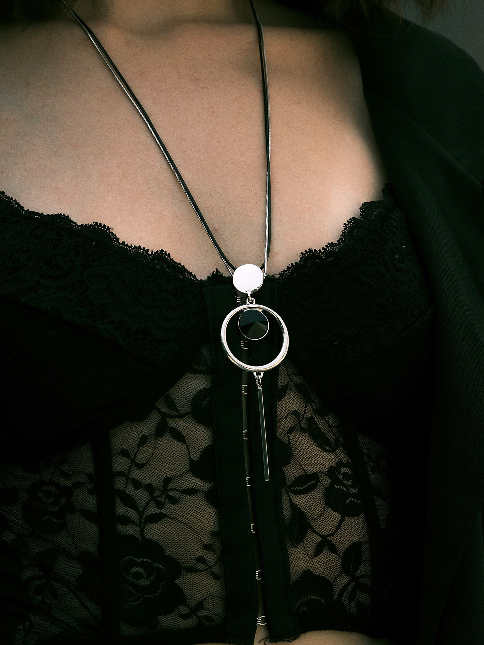 Кулон на цепочке "Цепь", тотем, кольцо с иголкой, чёрный в серебре, 72 см, 10x72x3 см., QF, Китай