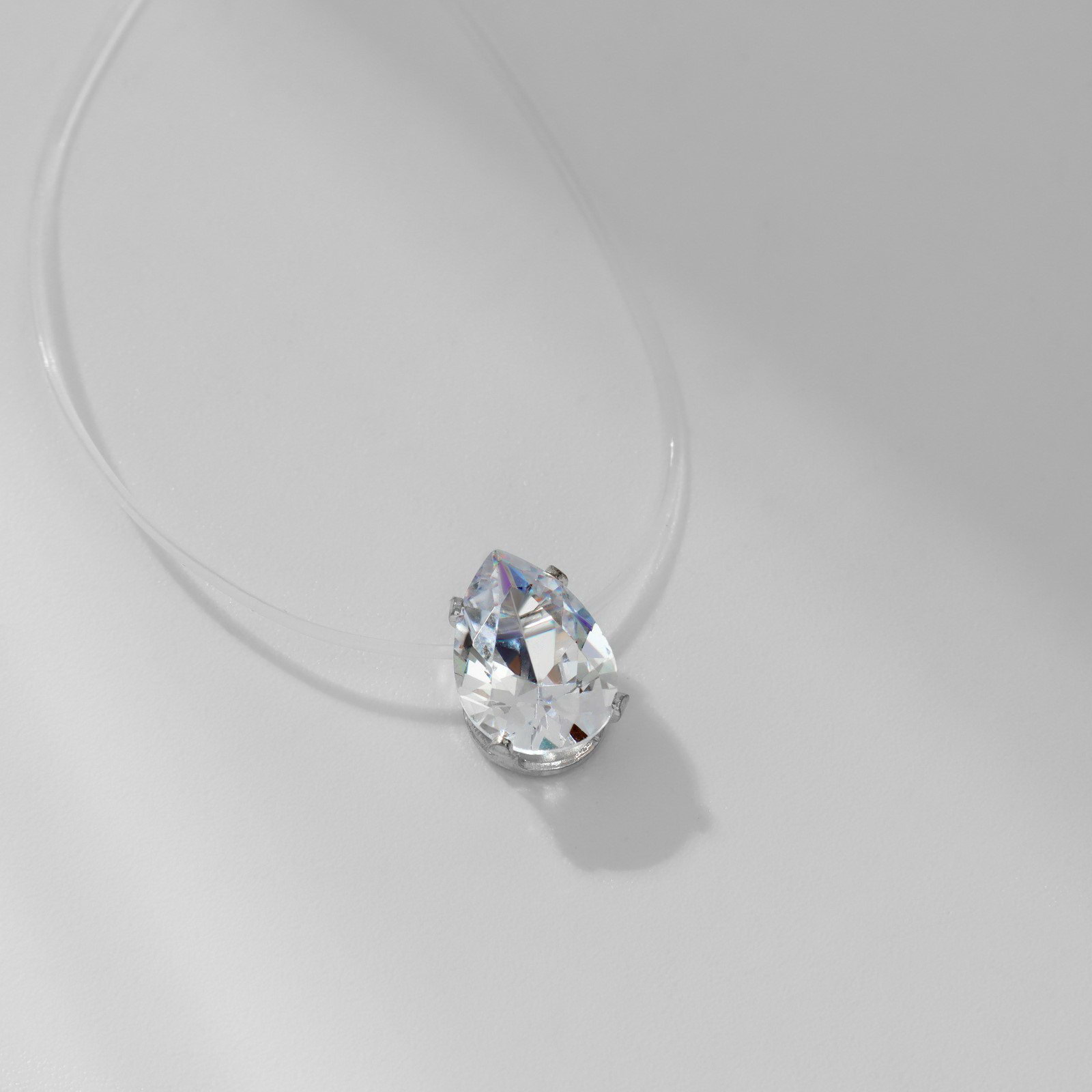 Кулон на леске "Счастье ждёт тебя", капля в обрамлении, белый в серебре, 35 см, 0.7x30x0.5 см., QF, Китай