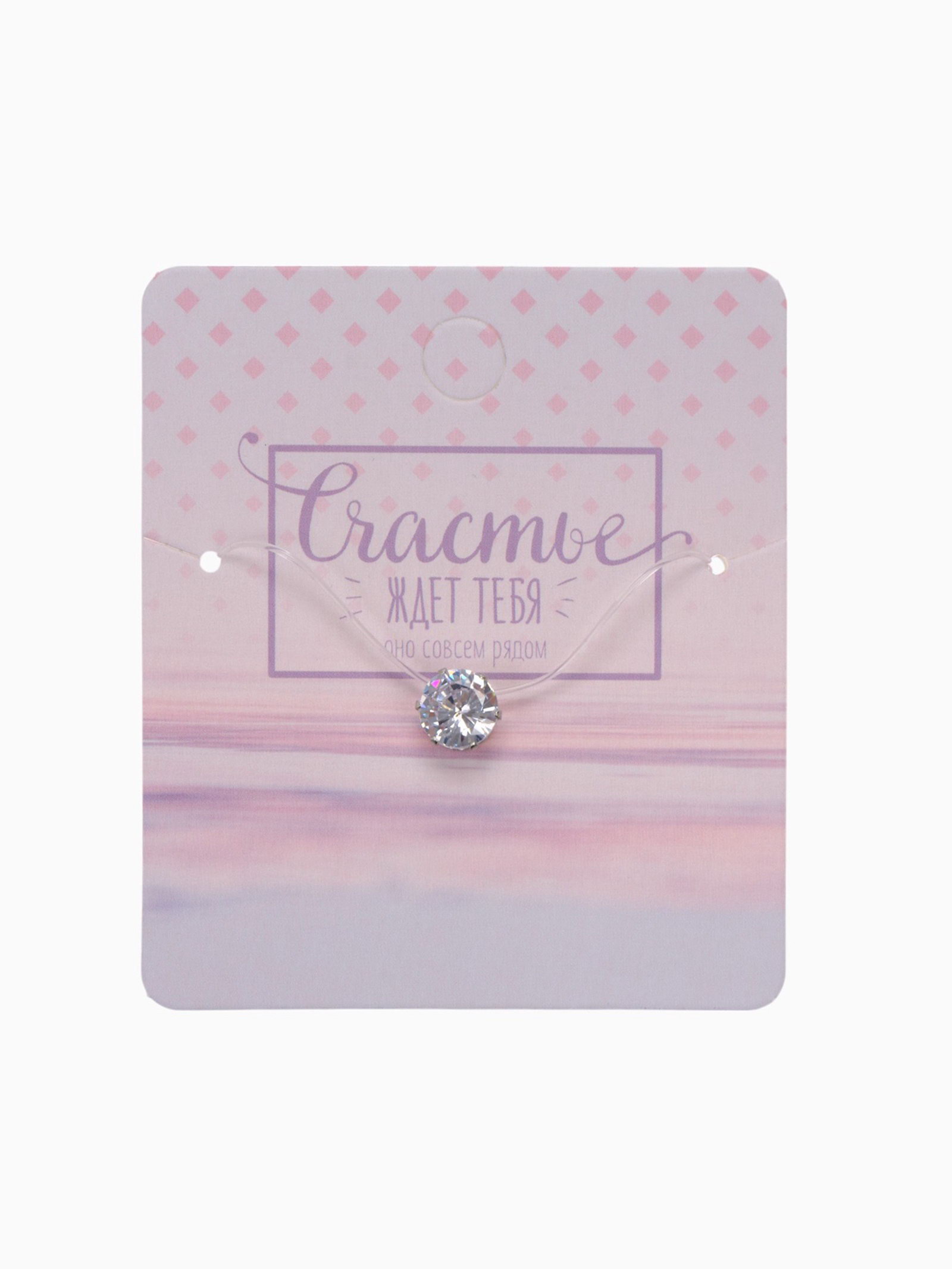 Кулон на леске "Счастье ждёт тебя", цилиндр, белый в серебре, 30 см, 0.8x35x0.5 см., QF, Китай