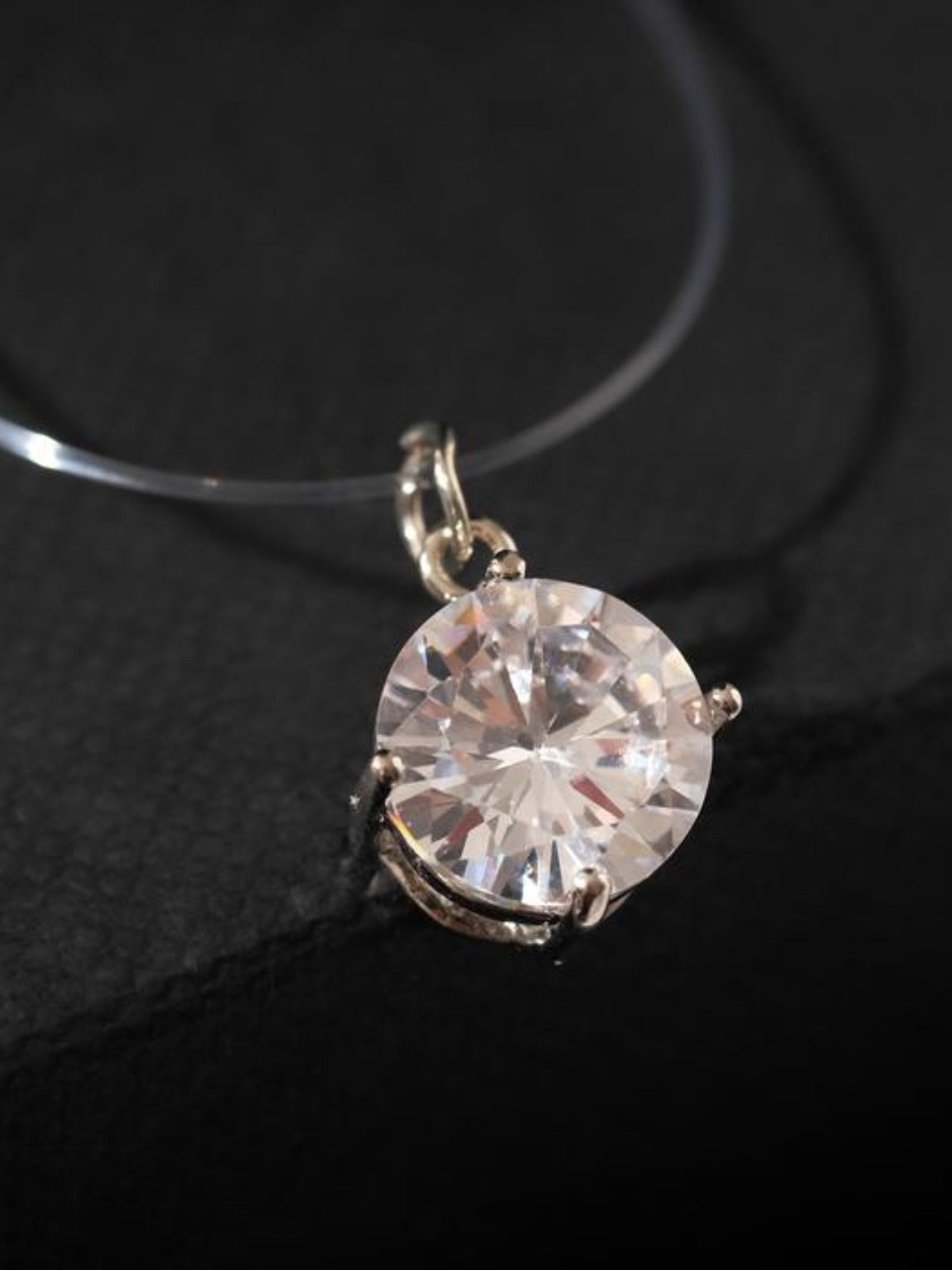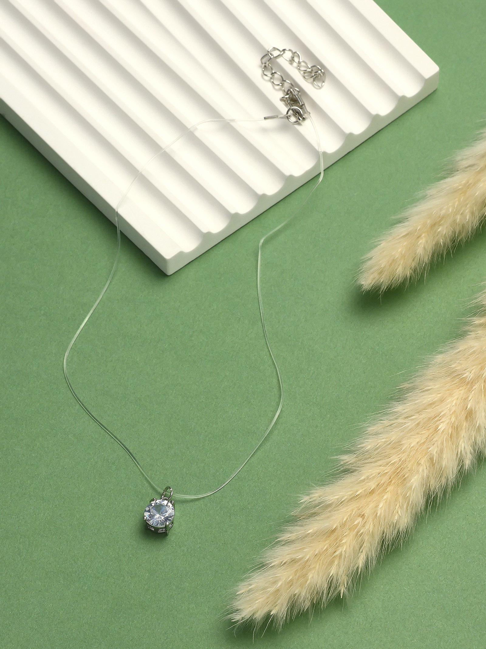 Кулон на леске "Страза", белый в серебре, 30 см, 1x30x0.5 см., QF, Китай