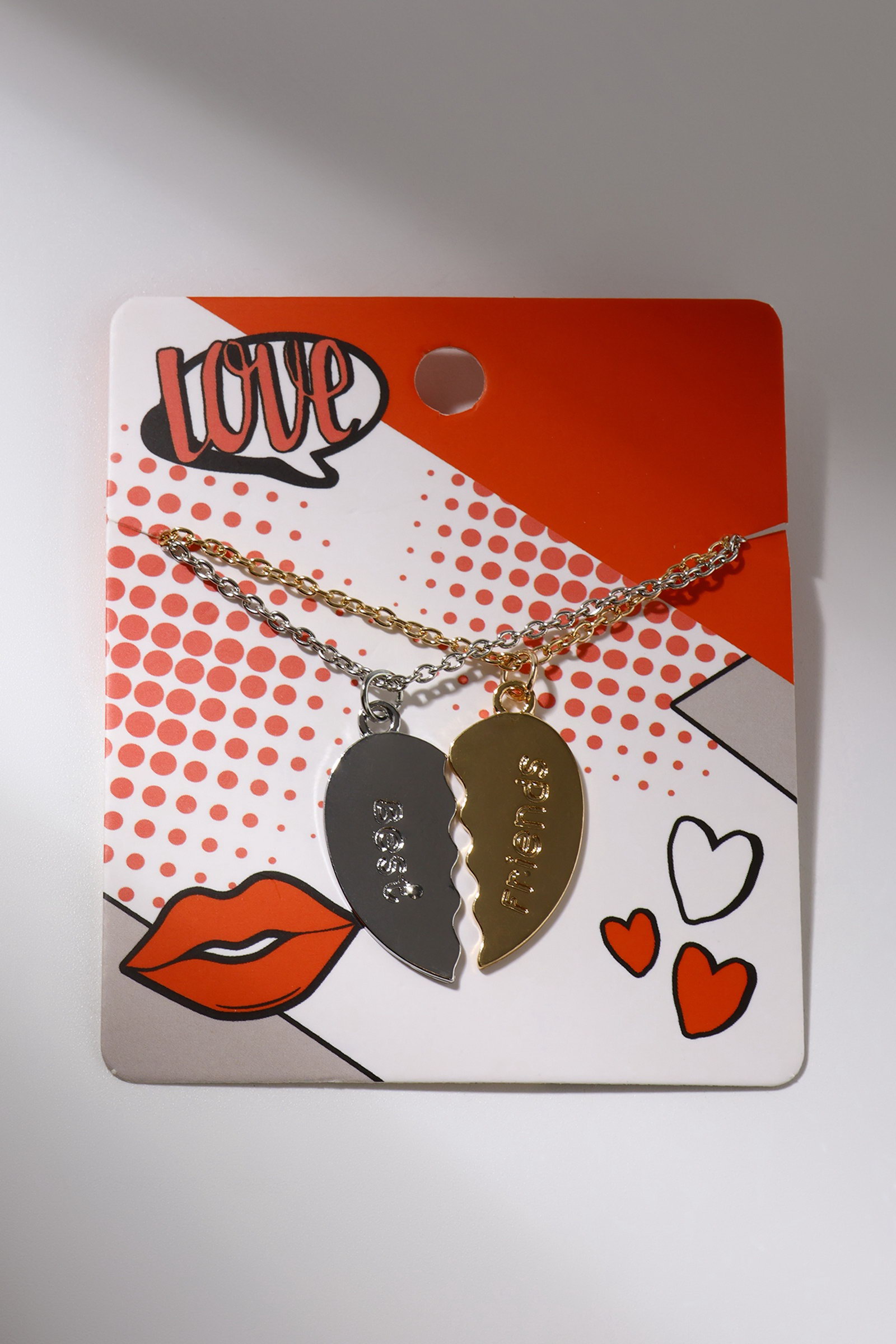 Кулоны парные на цепочке Best friends, 45 см, цвет серебряный, золотой, 8x45x1 см., QF, Китай