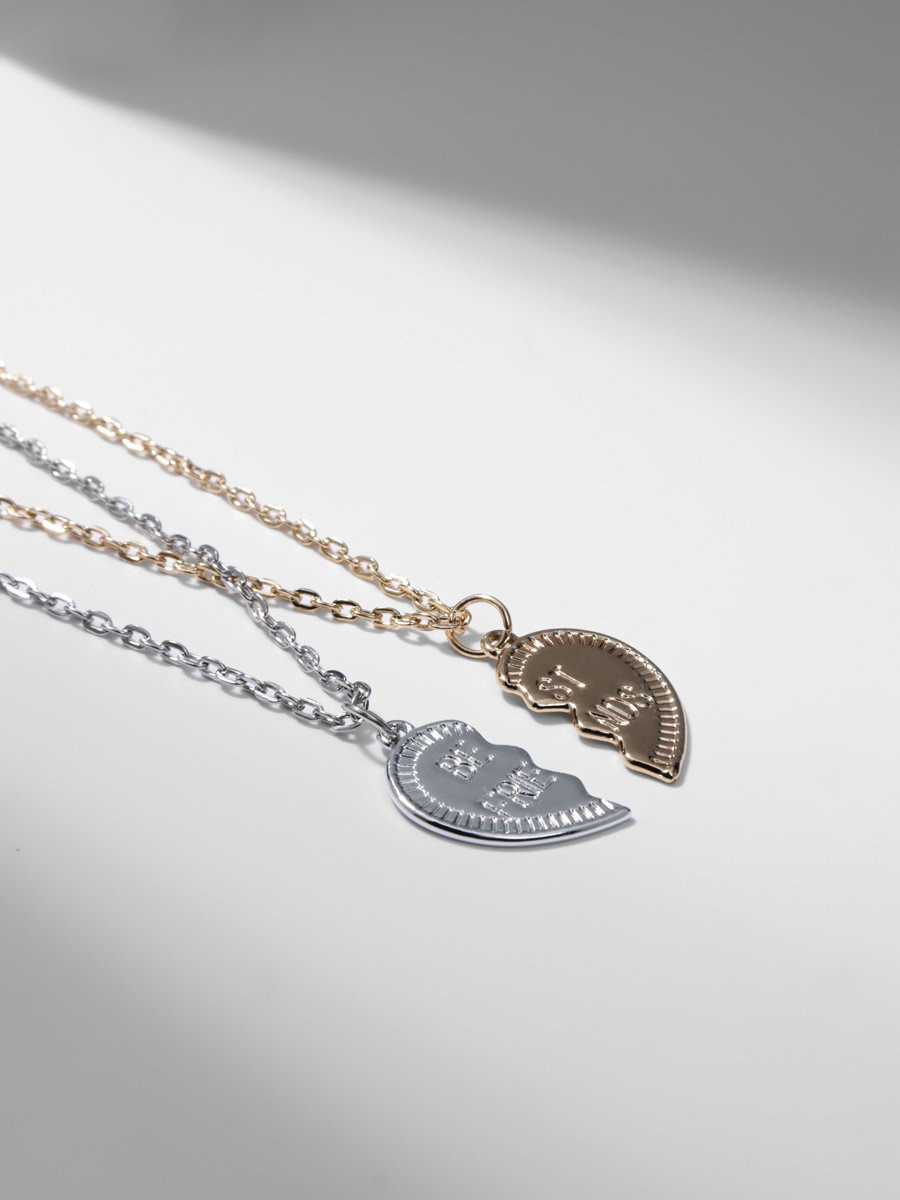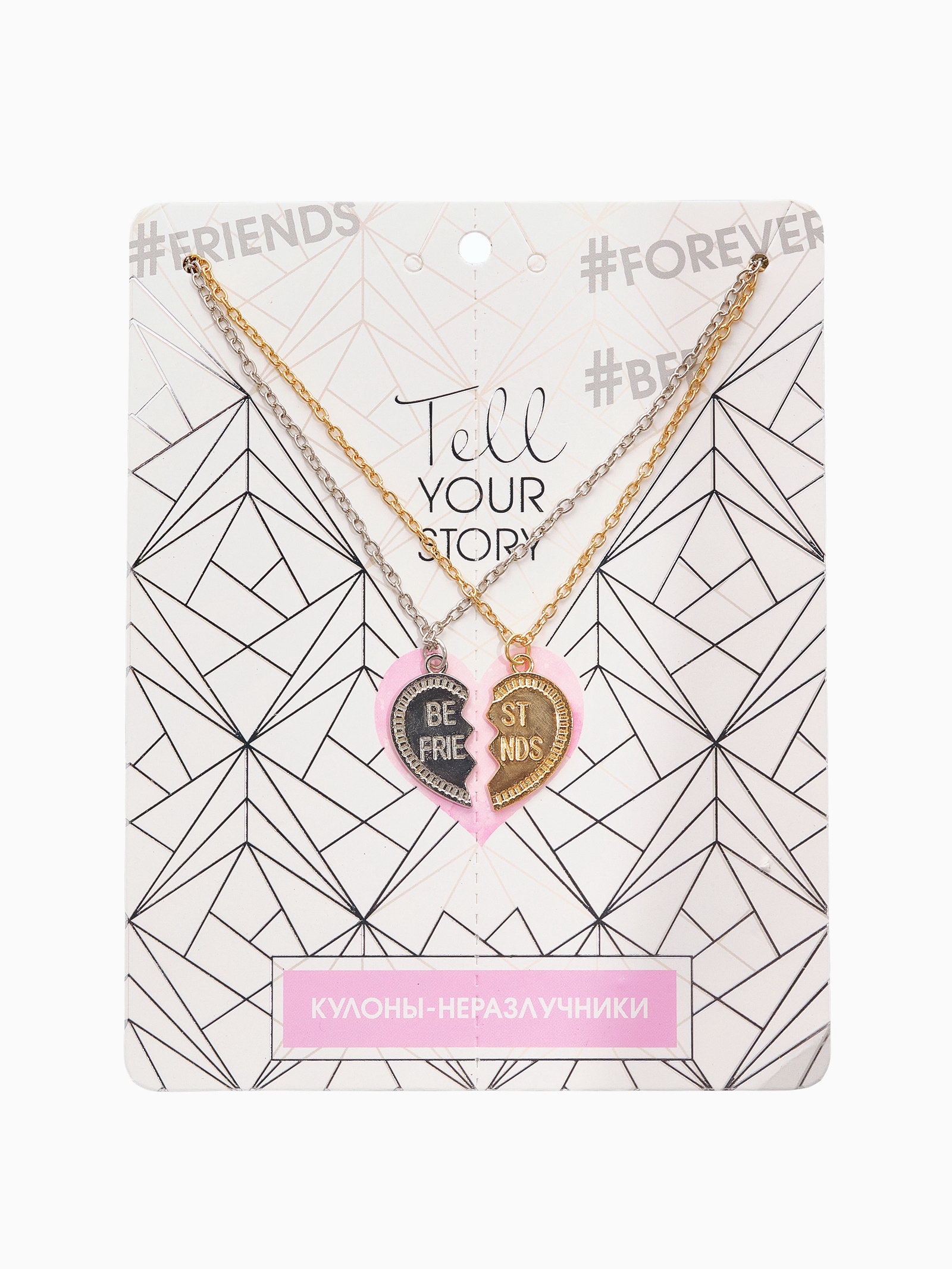 Кулоны парные "Неразлучники", лучшие друзья, цвет серебристо-золотой, 45 см, 2.5x45x3 см., Tell your story, Китай