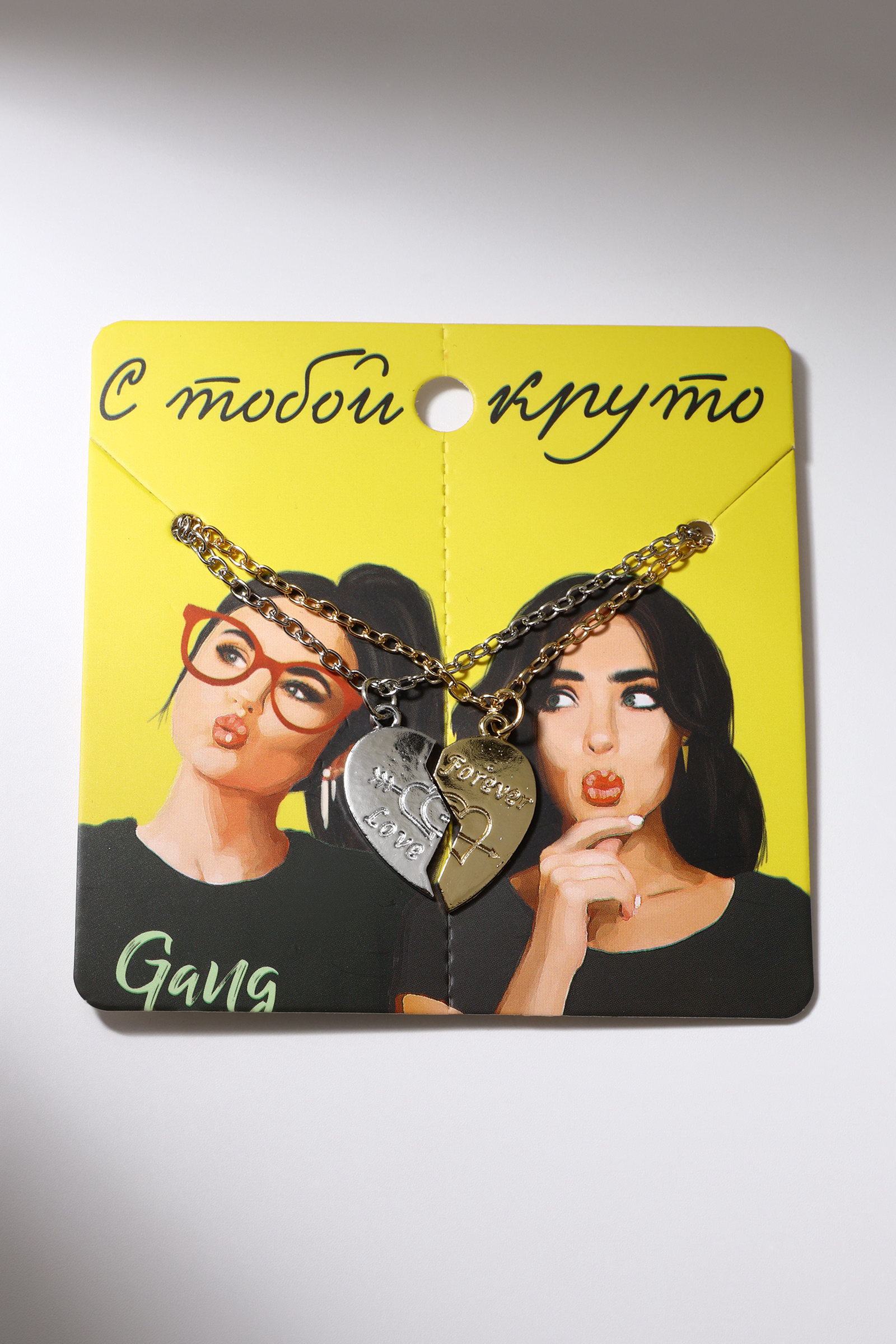 Кулоны парные на цепочке Forever love, цвет серебряно-золотой, 50 см, 2x50x0.5 см., Tell your story, КИТАЙ