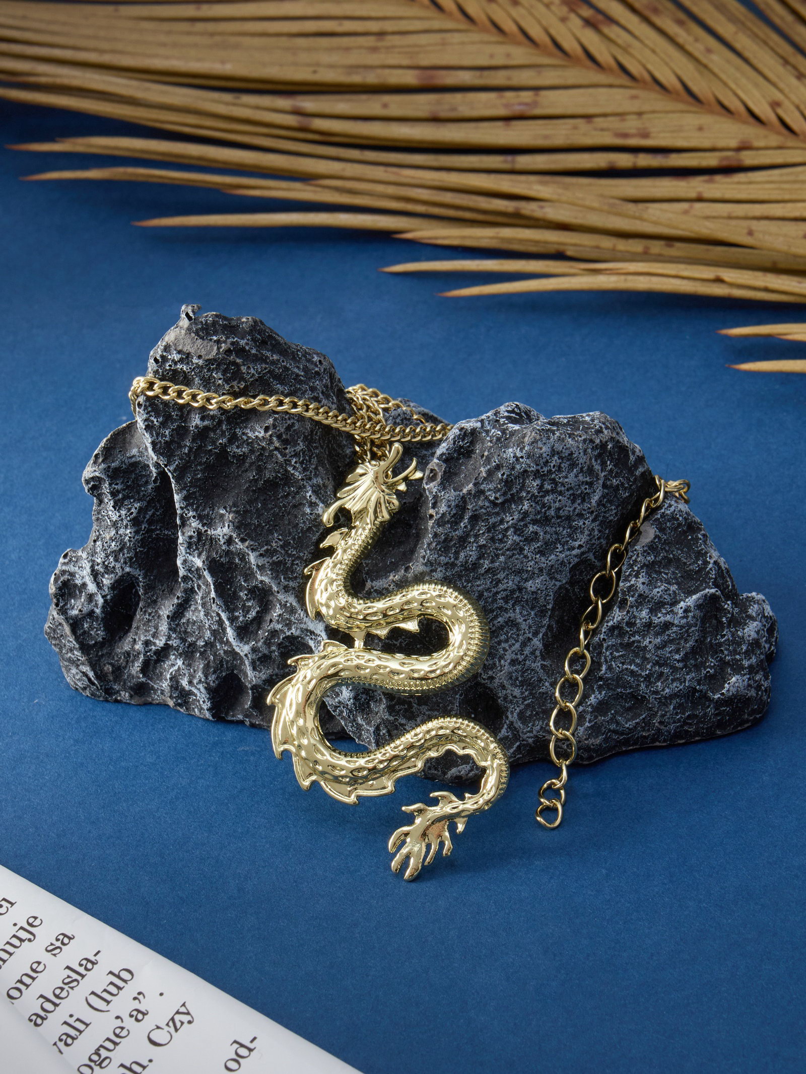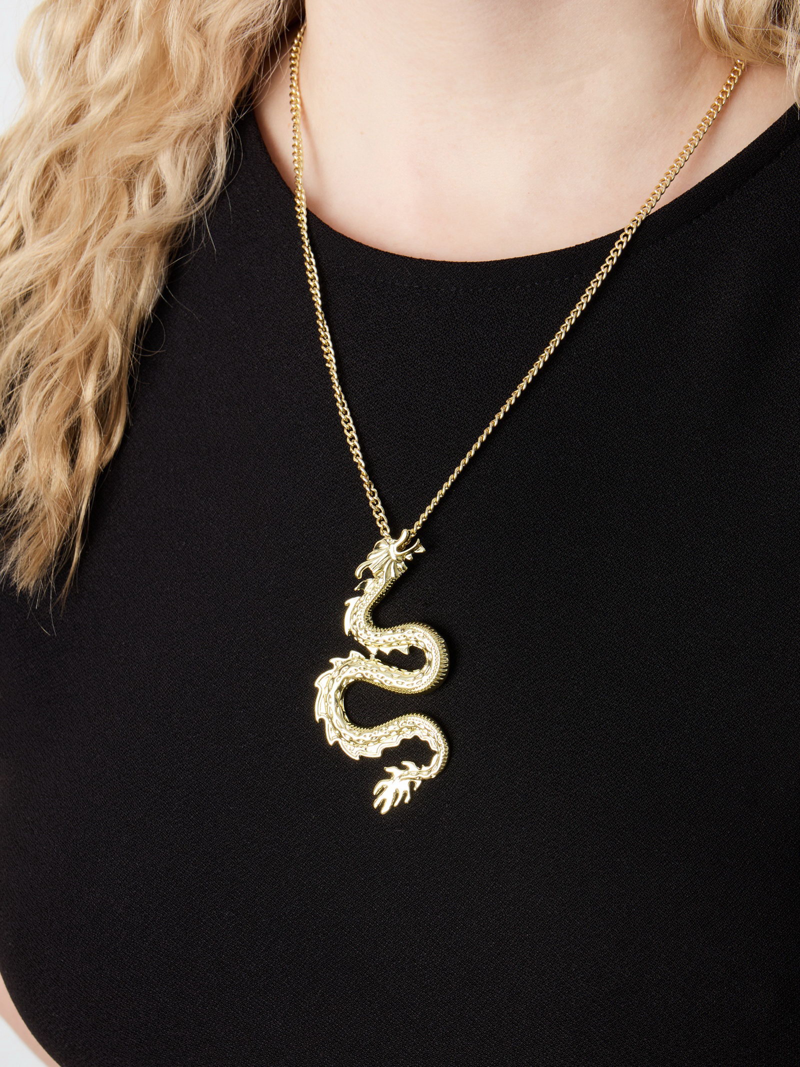 Кулон на цепочке "Извивающийся дракон", цвет золото, L=46 см, 7x46x3.5 см., QF, Китай