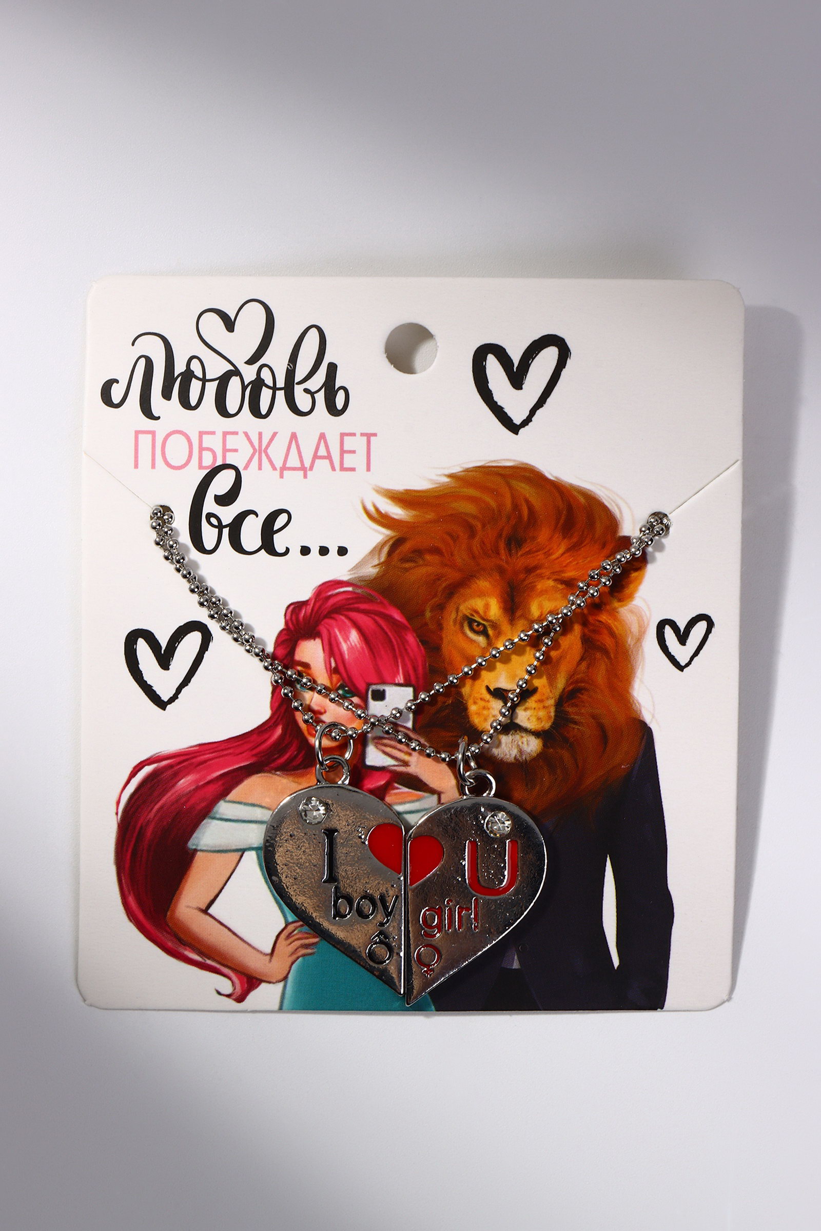Кулоны парные "Половинки сердца", 45 см, цвет чёрный/красный в серебре, 1.2x45x2 см., QF, Китай