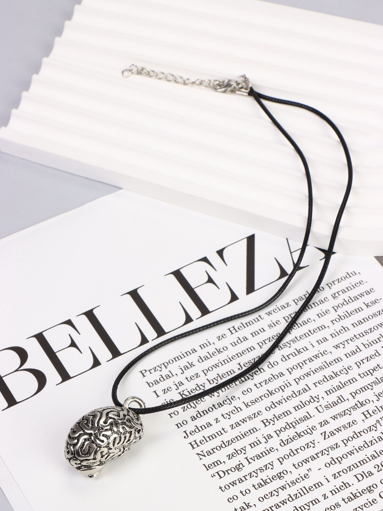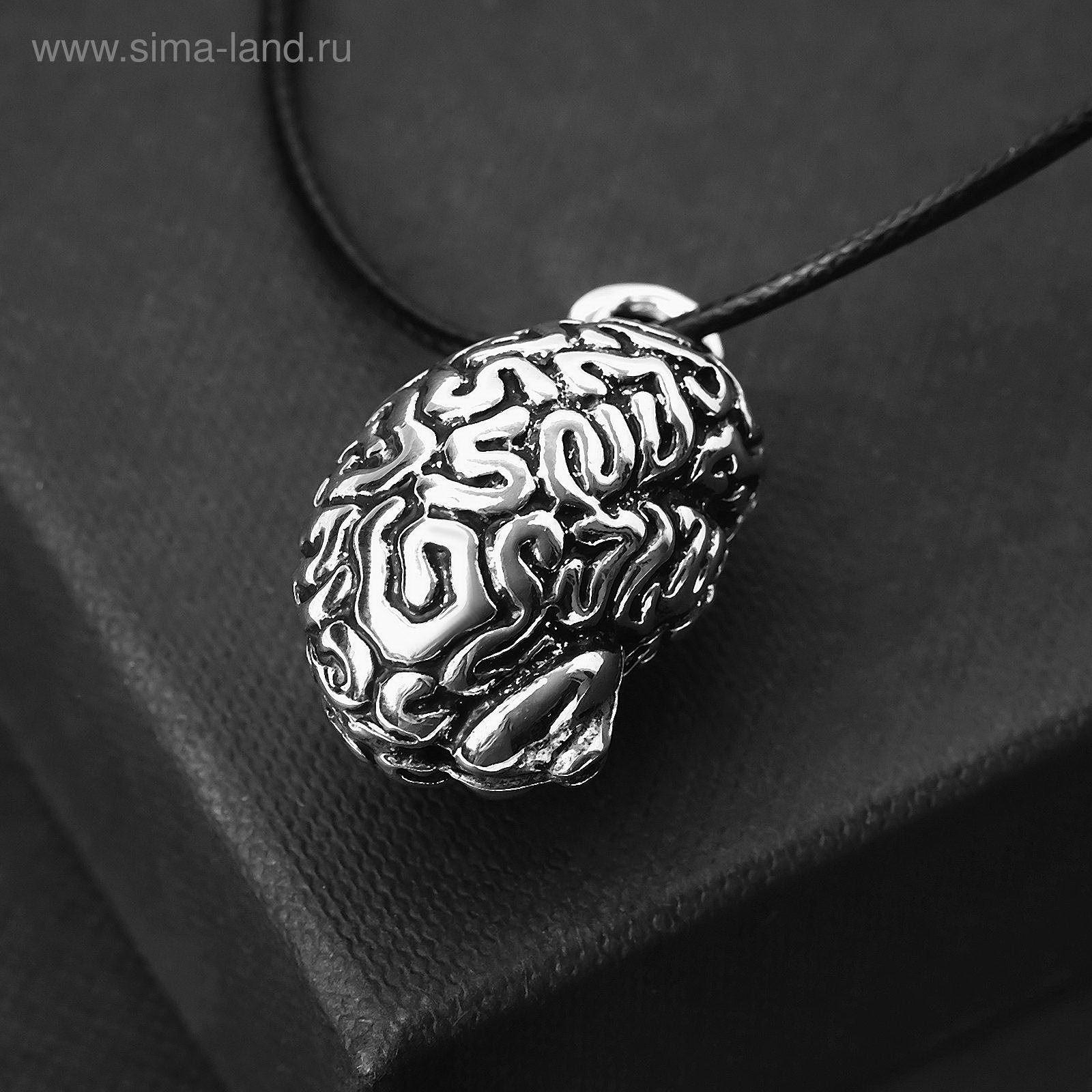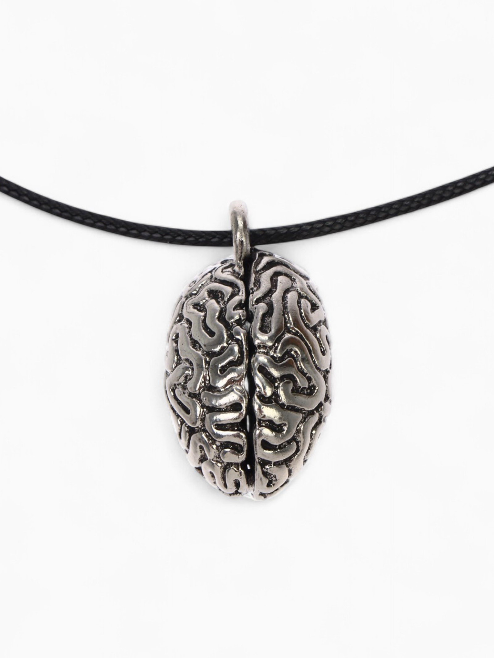 Кулон на шнурке "Анатомический мозг", цвет чернёное серебро на чёрном шнурке, 45 см, 3x45x2 см., QF, Китай