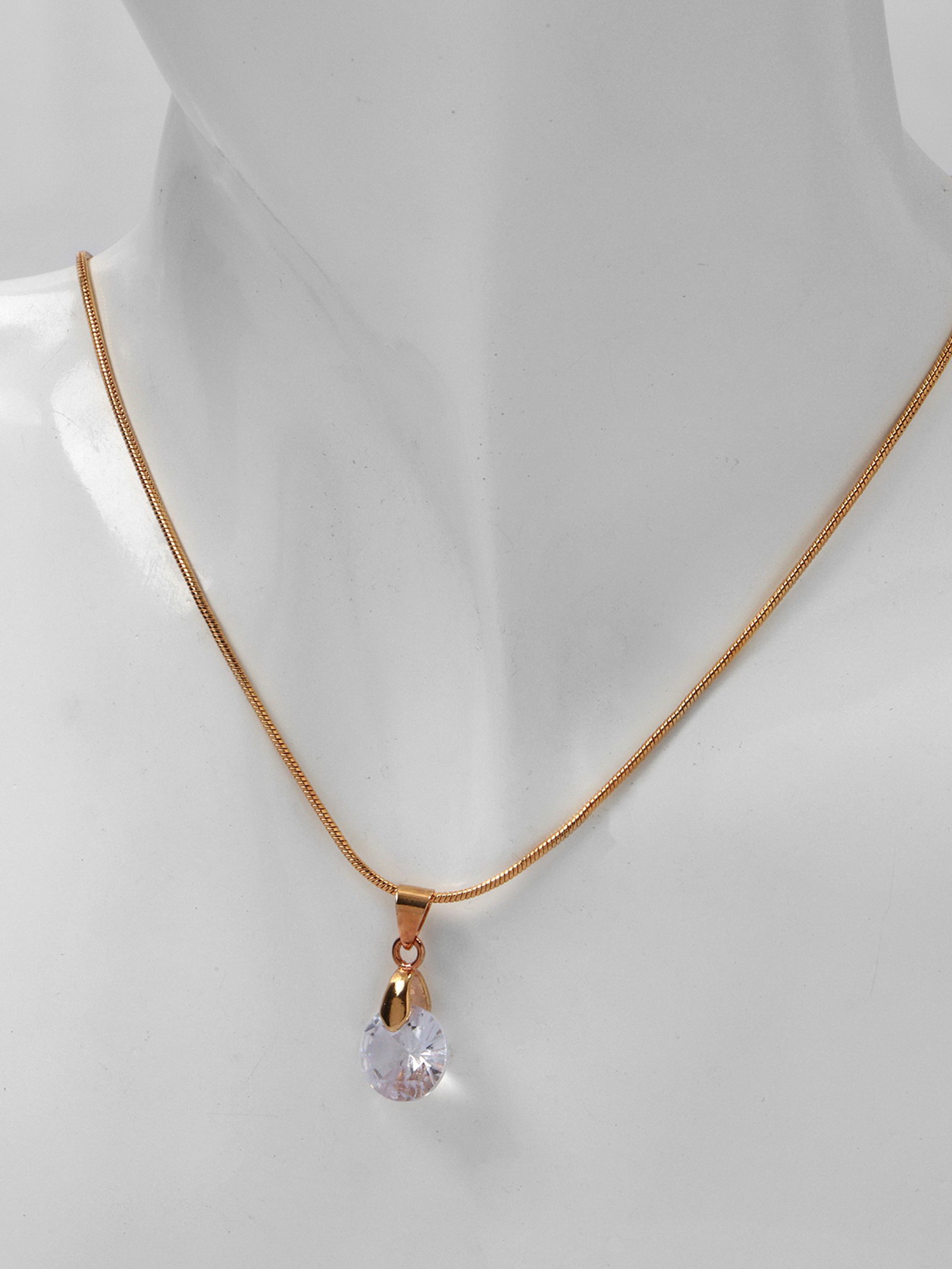 Кулон на цепочке "Стразинка", крупная, 40 см, белый в золоте, 1x40x0.5 см., QF, КИТАЙ