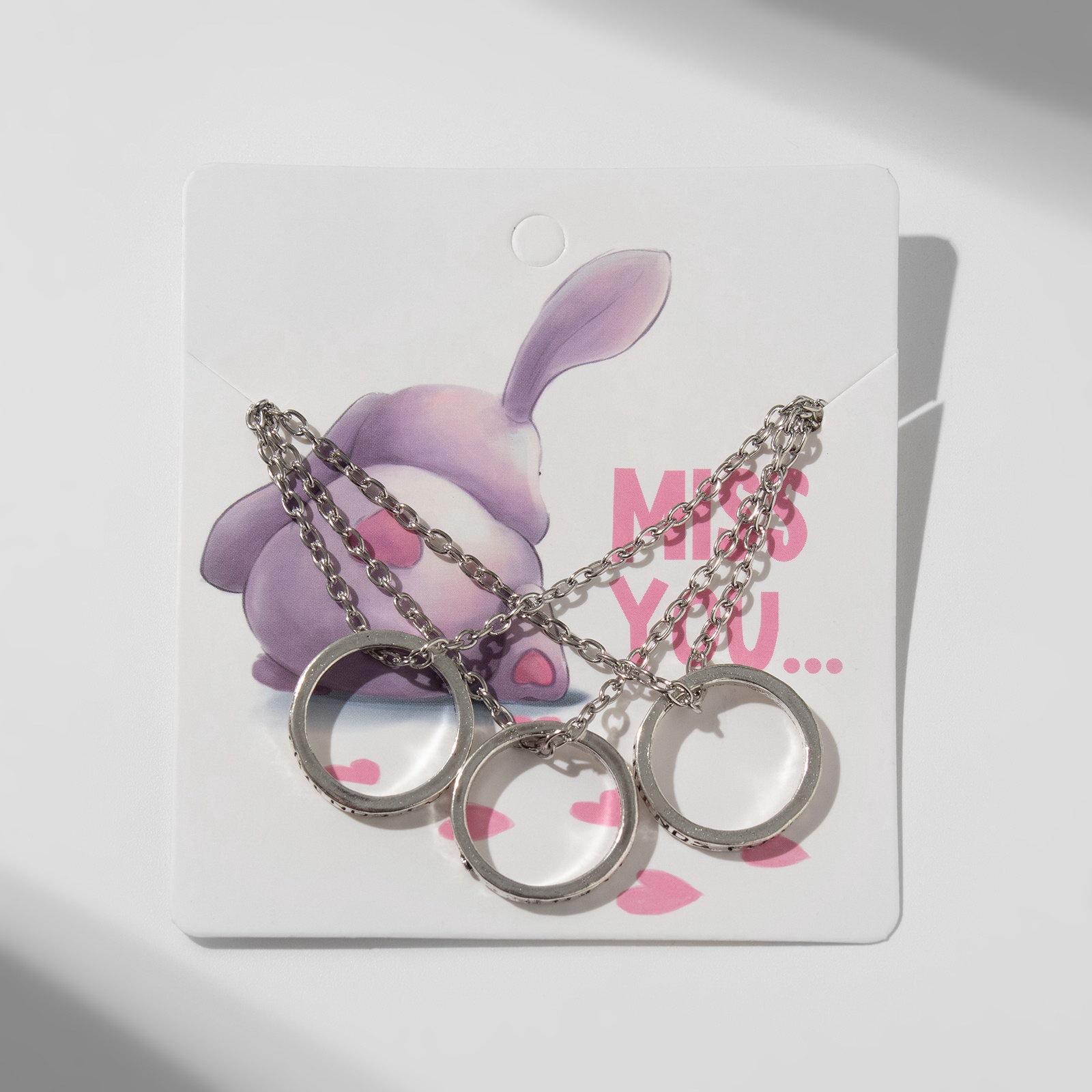 Кулоны парные "Три кольца", 45 см, цвет серебро, 2.5x45x0.5 см., Tell your story, Китай