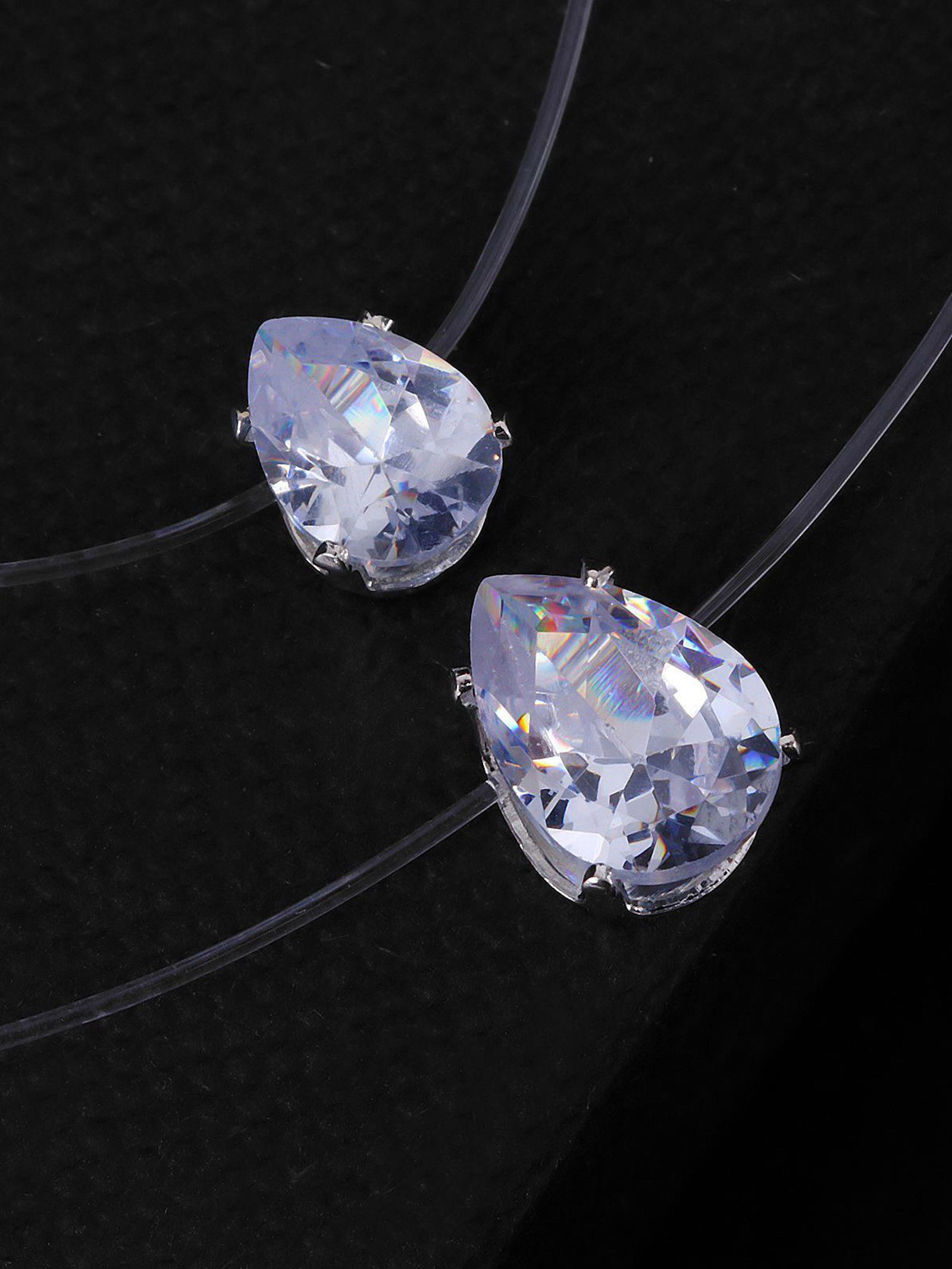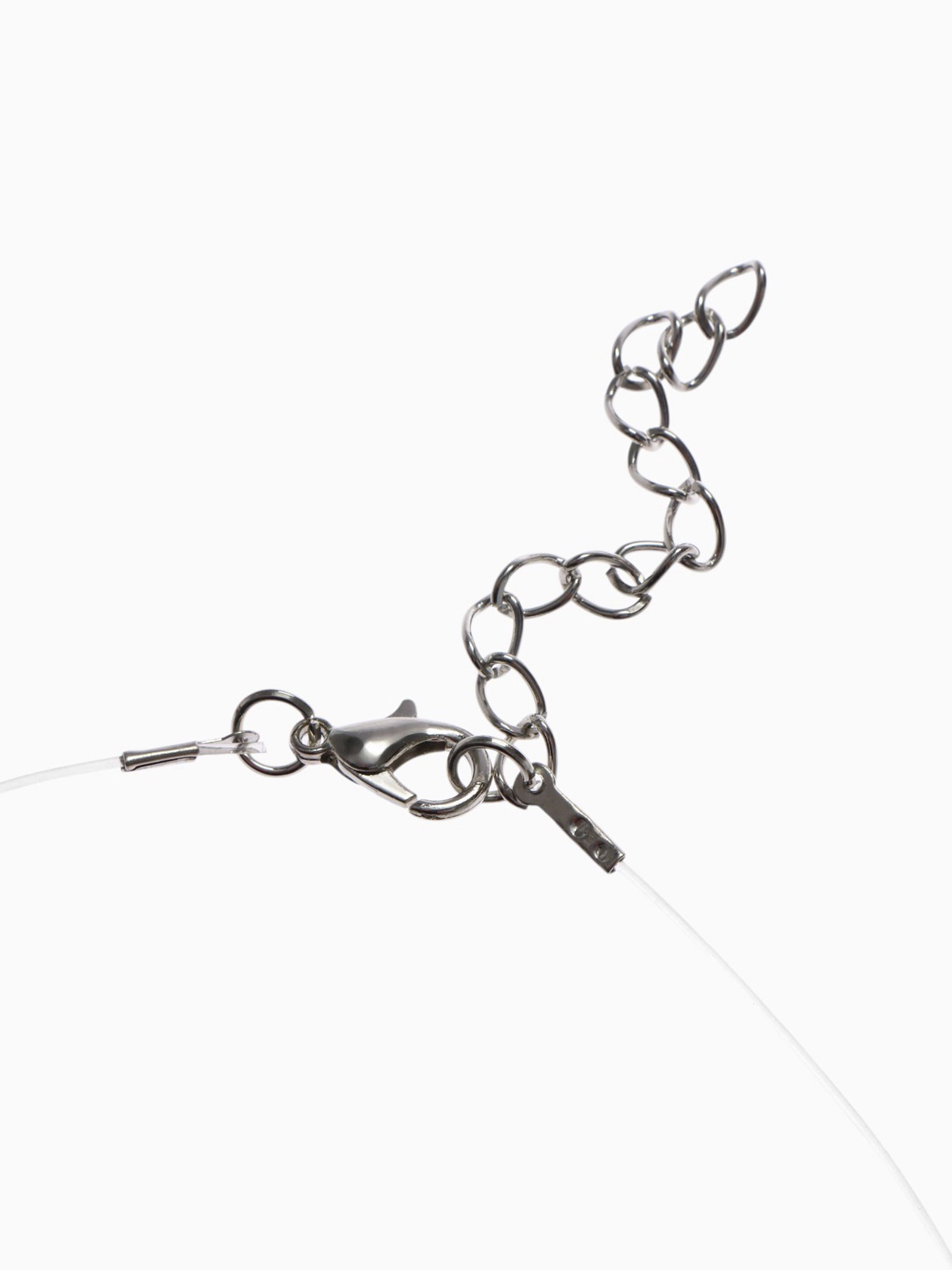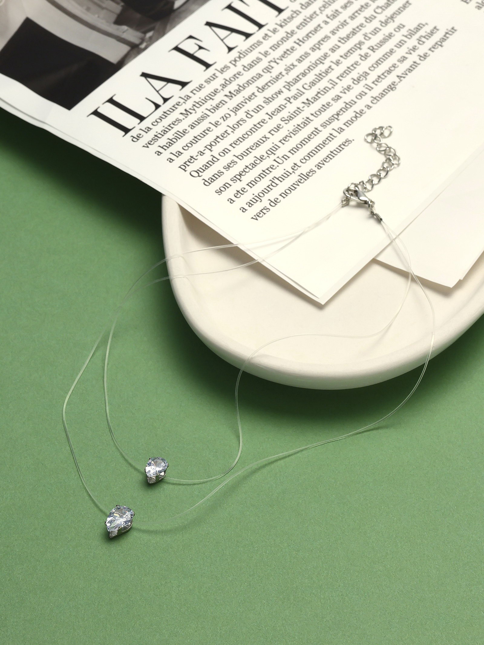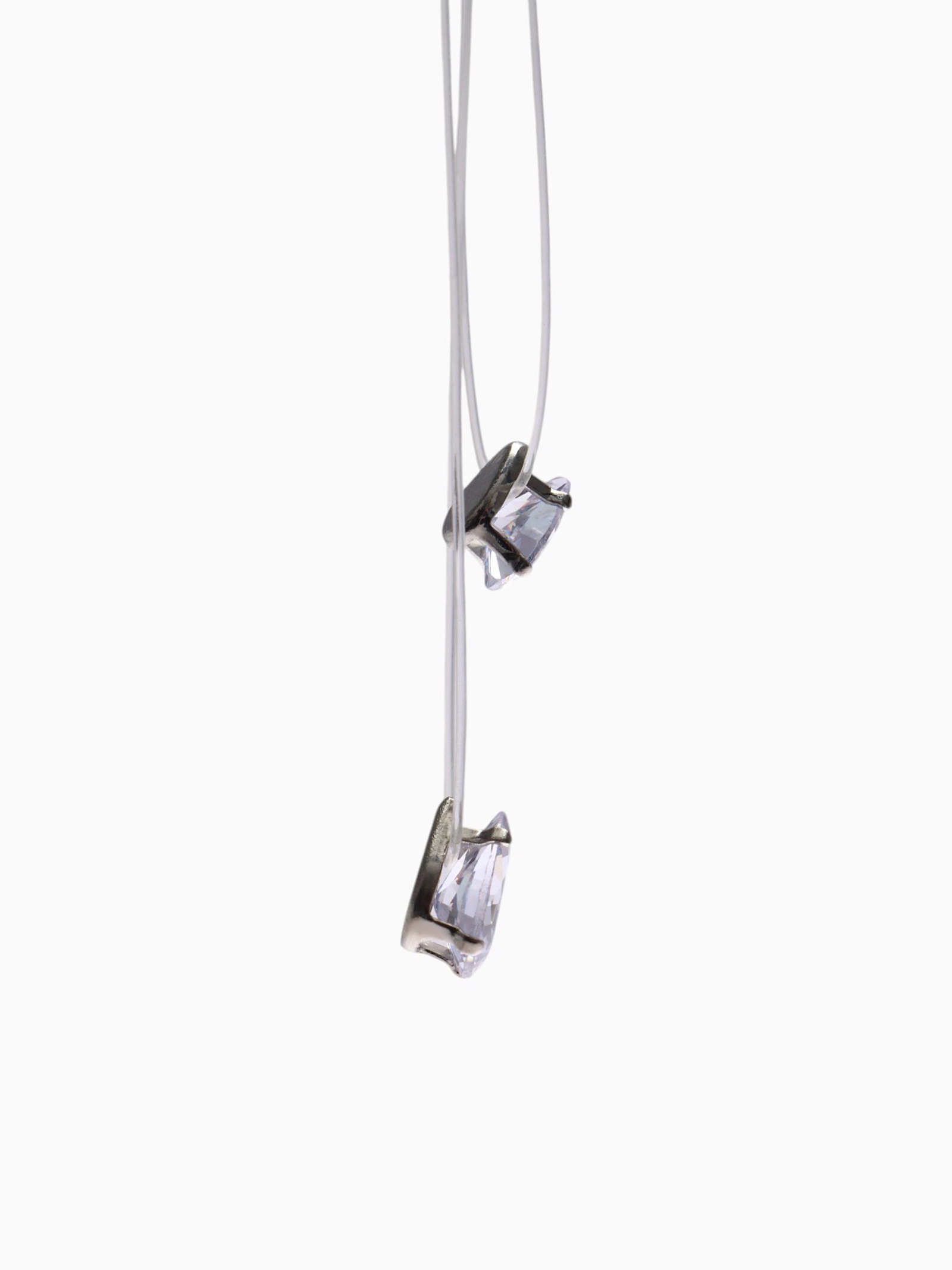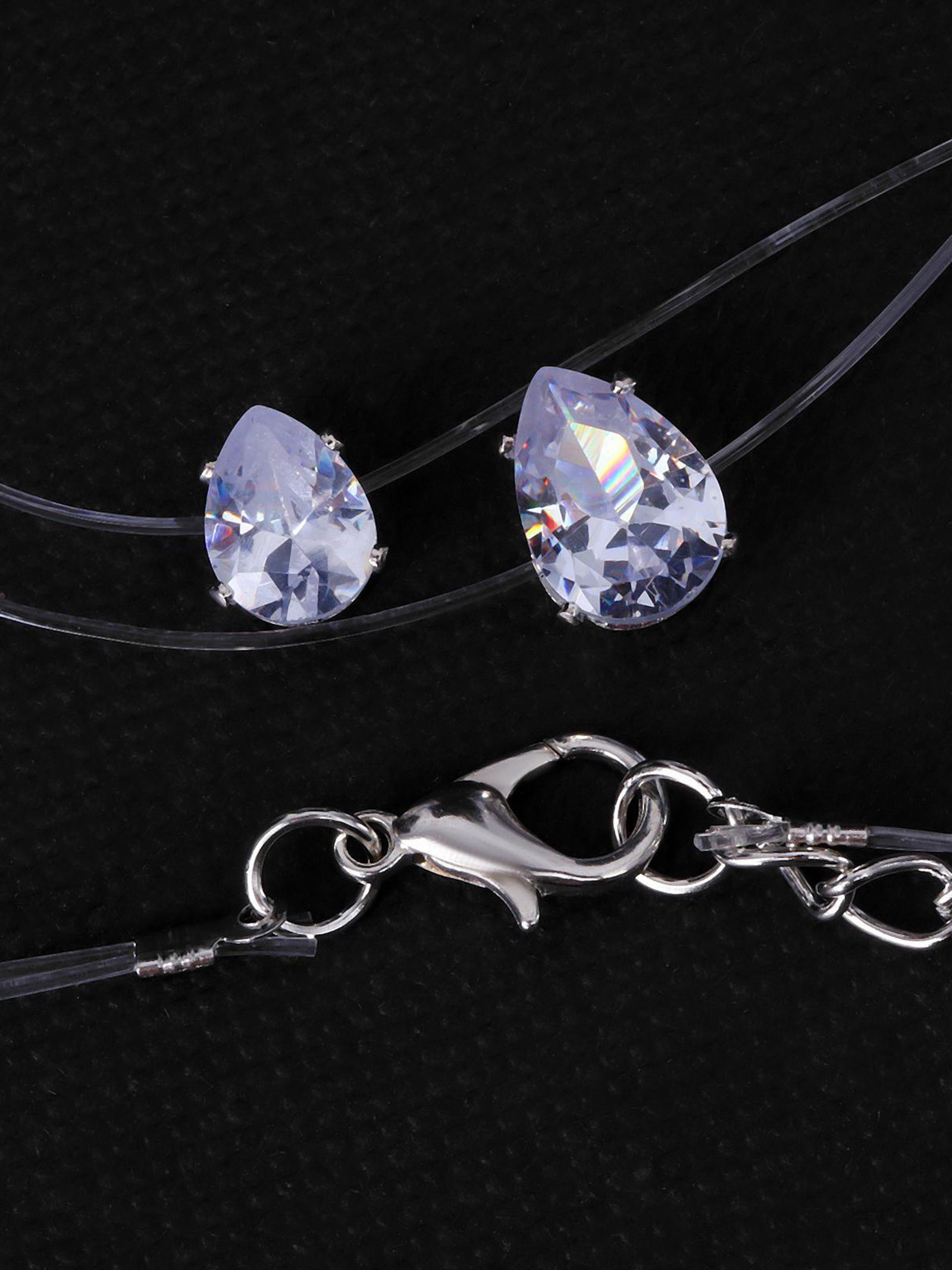 Кулон на леске "Двойная слеза", белый в серебре, 40 см, 0.7x40x0.1 см., QF, Китай