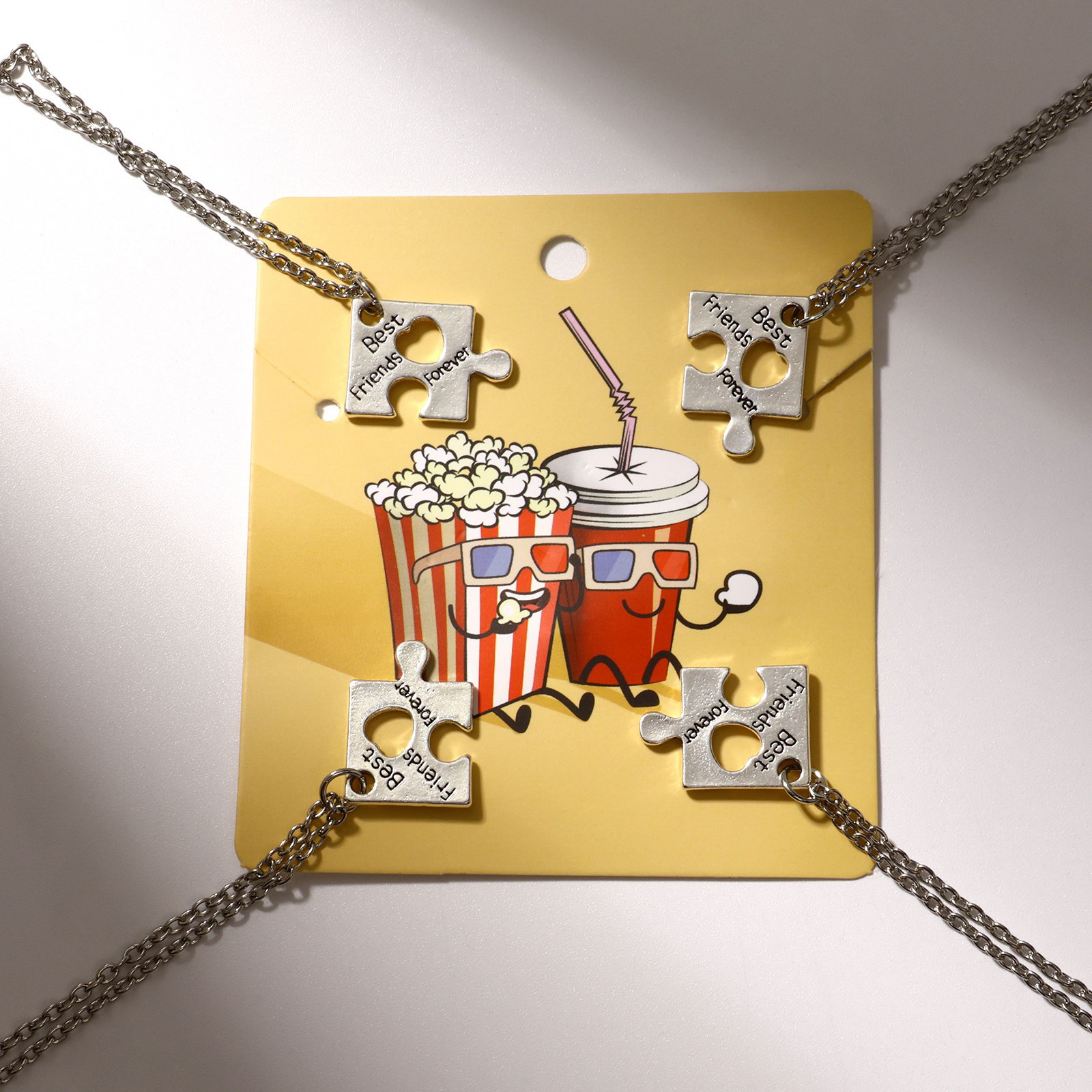 Кулоны парные на цепочке "Пазл квадрат", цвет серебро, 45 см, 1.5x45x0.2 см., QF, Китай