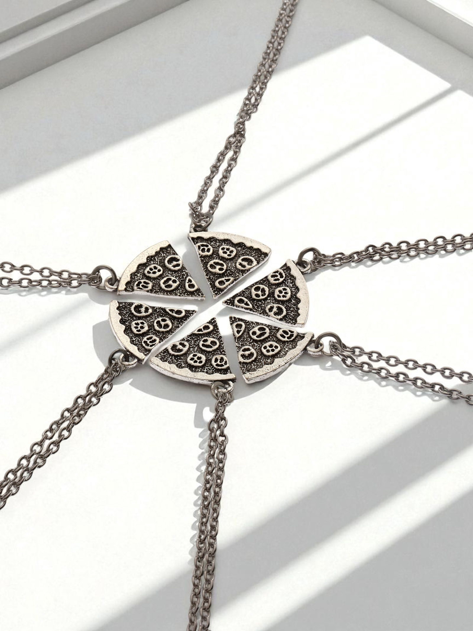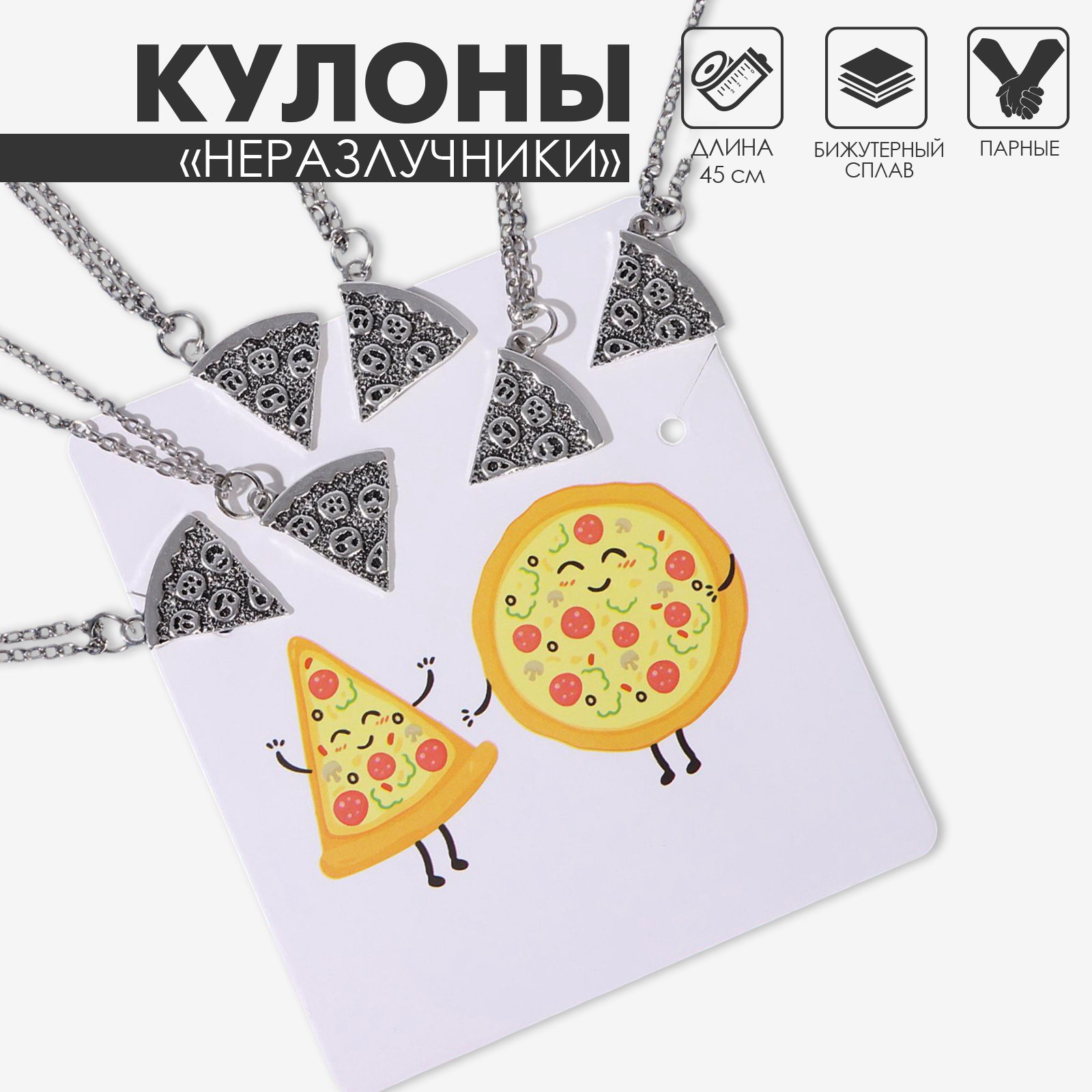 Кулоны парные на цепочке "Неразлучники", круг пиццы, цвет чернёное серебро, 45 см, 2x45x0.5 см., QF, Китай