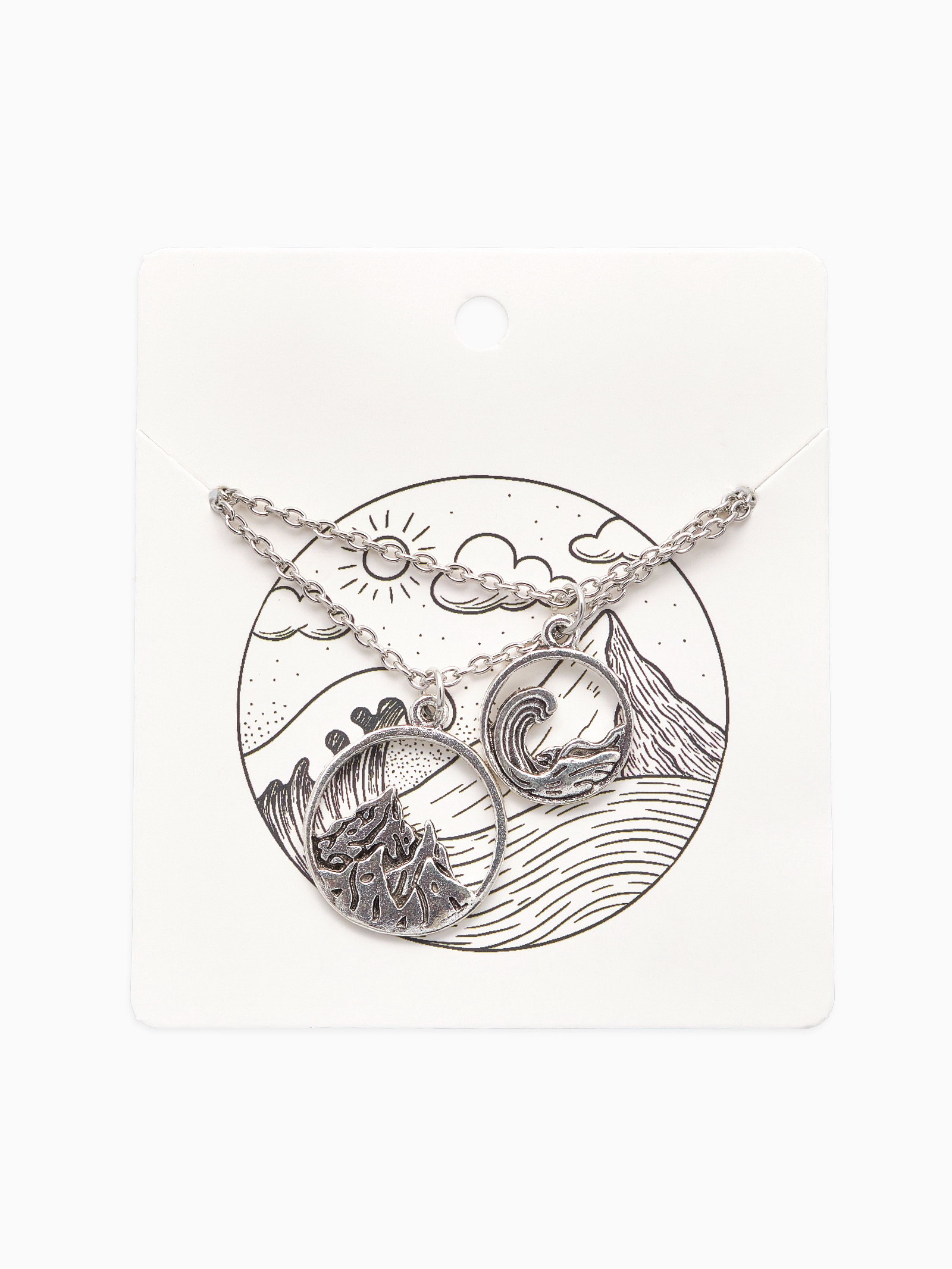 Кулоны парные "Горы и море", 45 см, цвет чернёное серебро, 3x45x0.5 см., QF, Китай