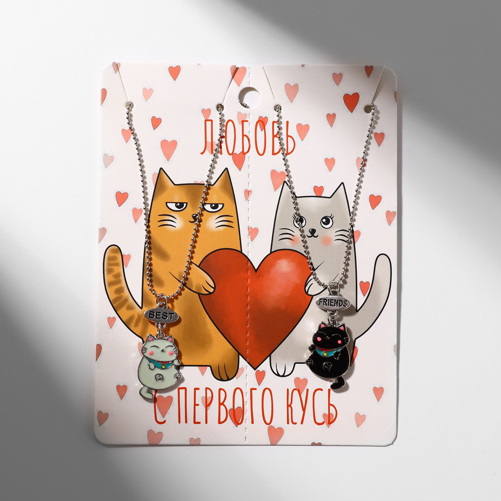 Кулоны парные "Пузатые котики", цвет чёрный/белый, 45 см, 4x45x1.6 см., Tell your story, Китай