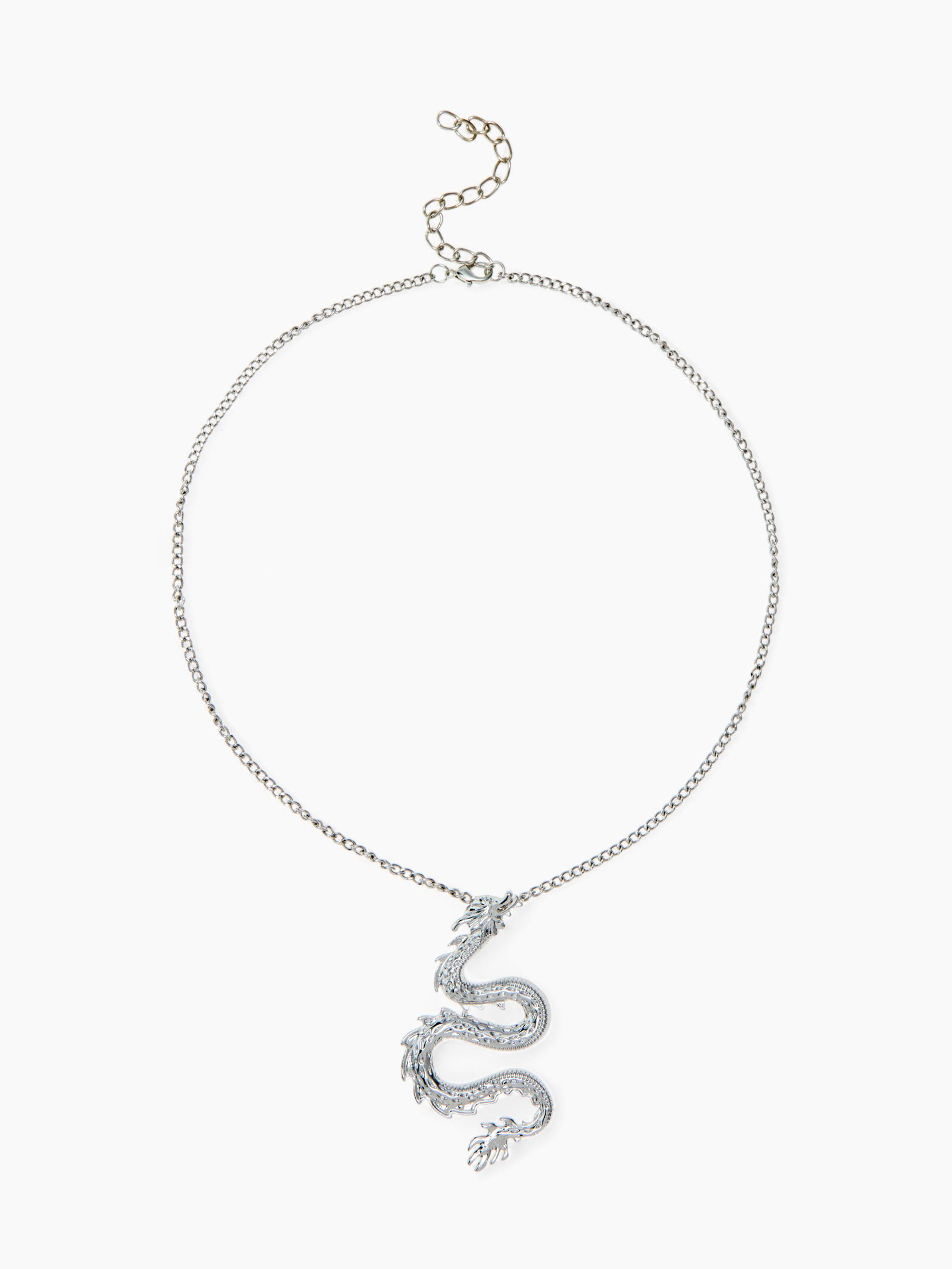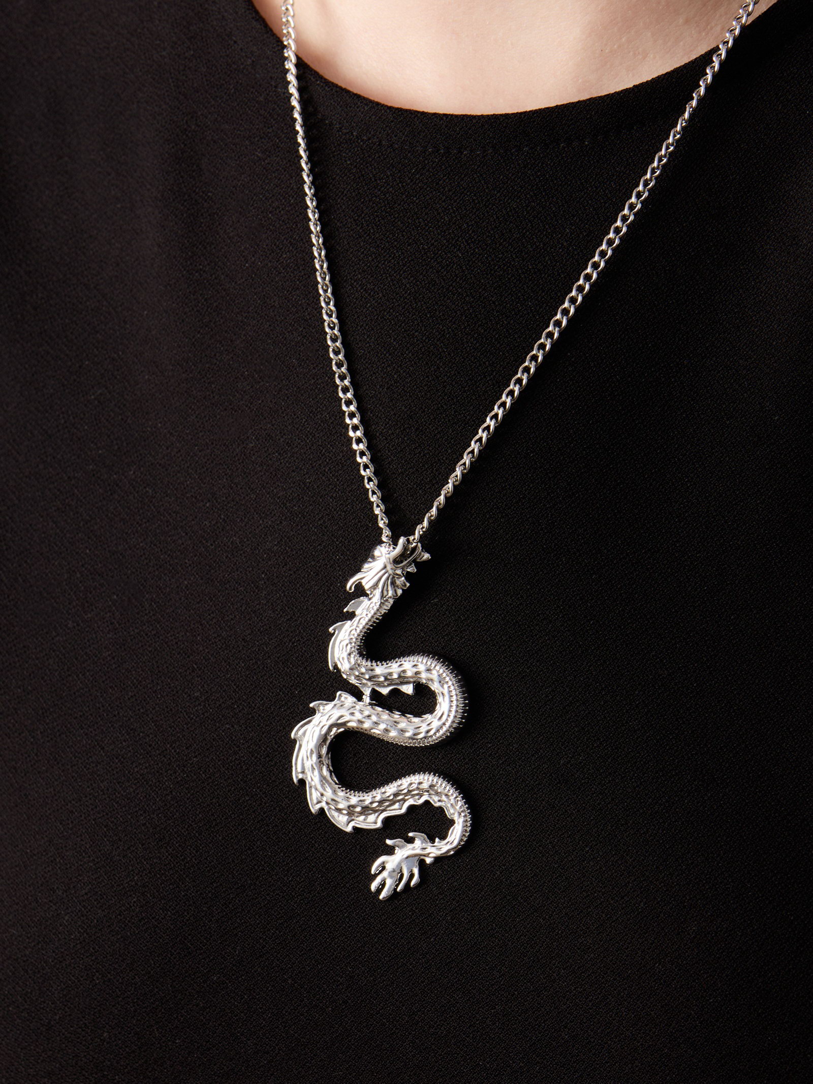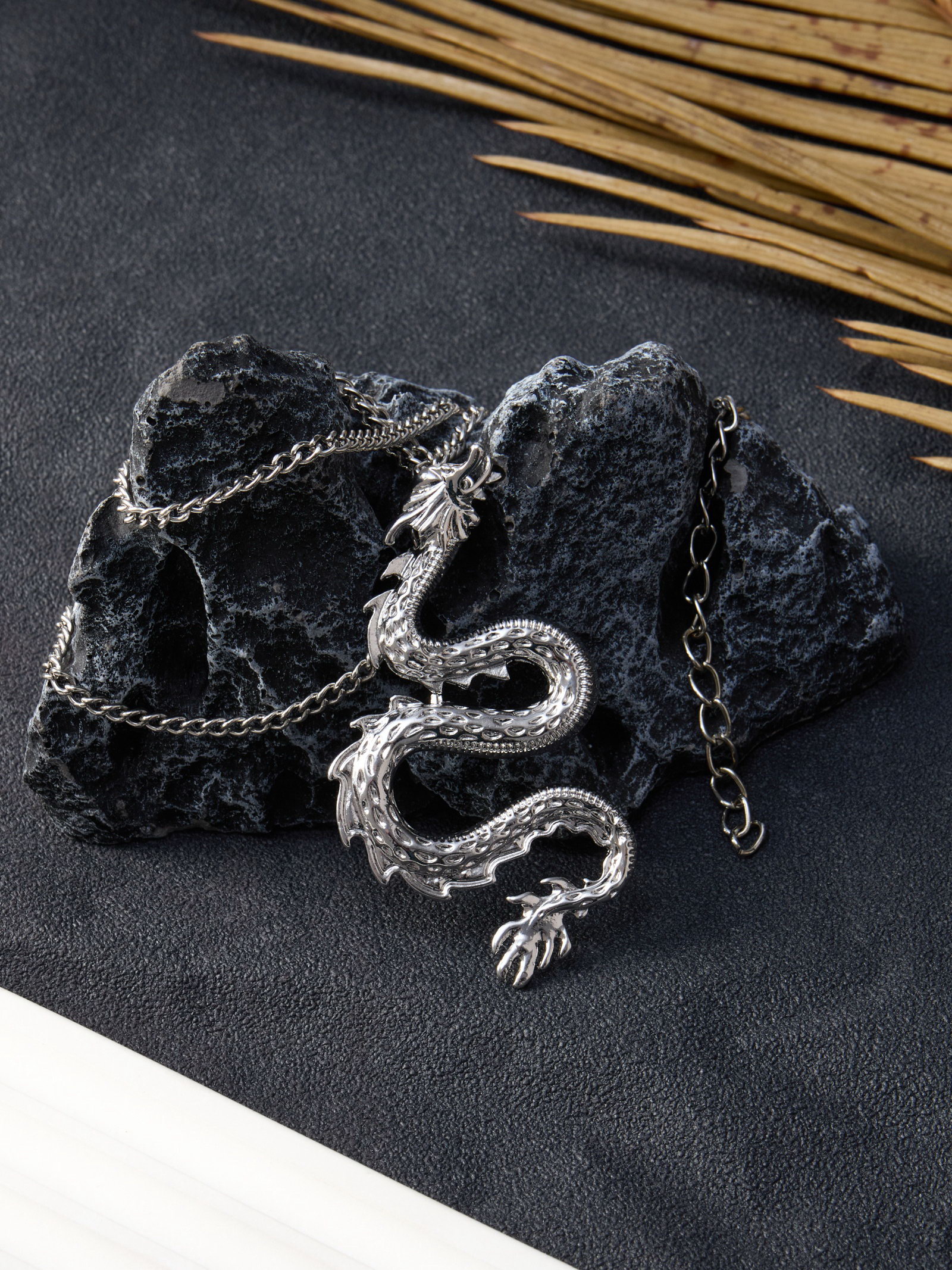 Кулон на цепочке "Извивающийся дракон", цвет серебро, L=46 см, 7x46x3.5 см., QF, Китай