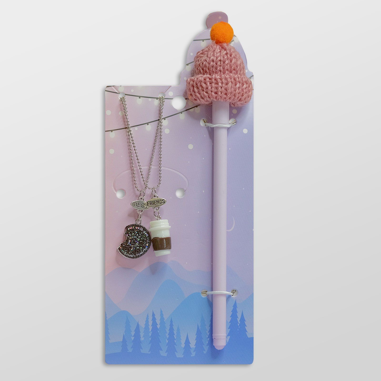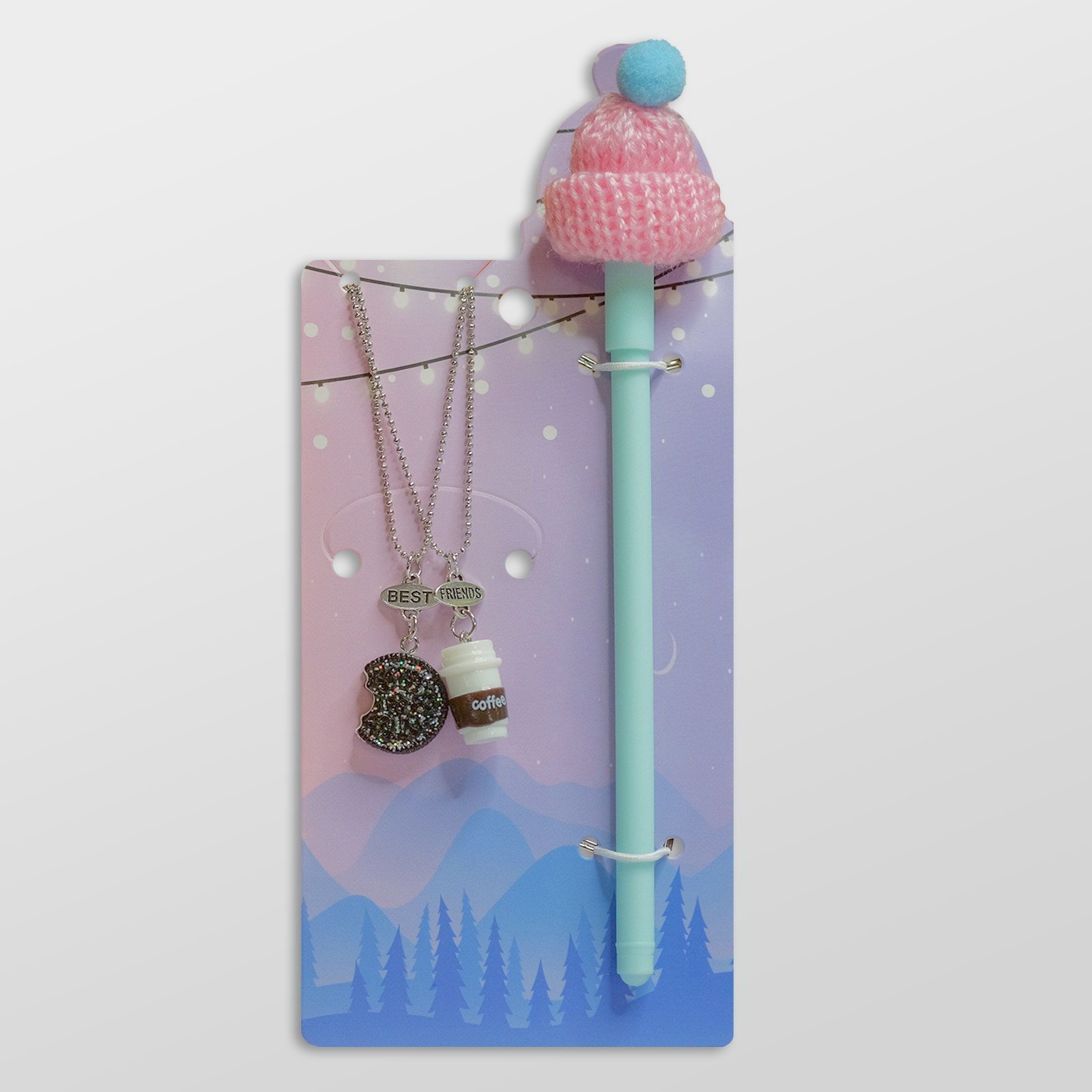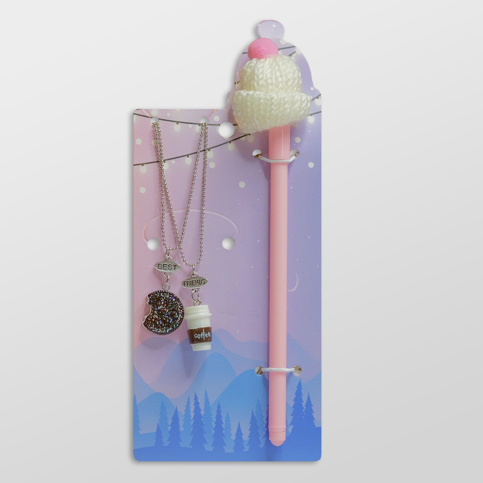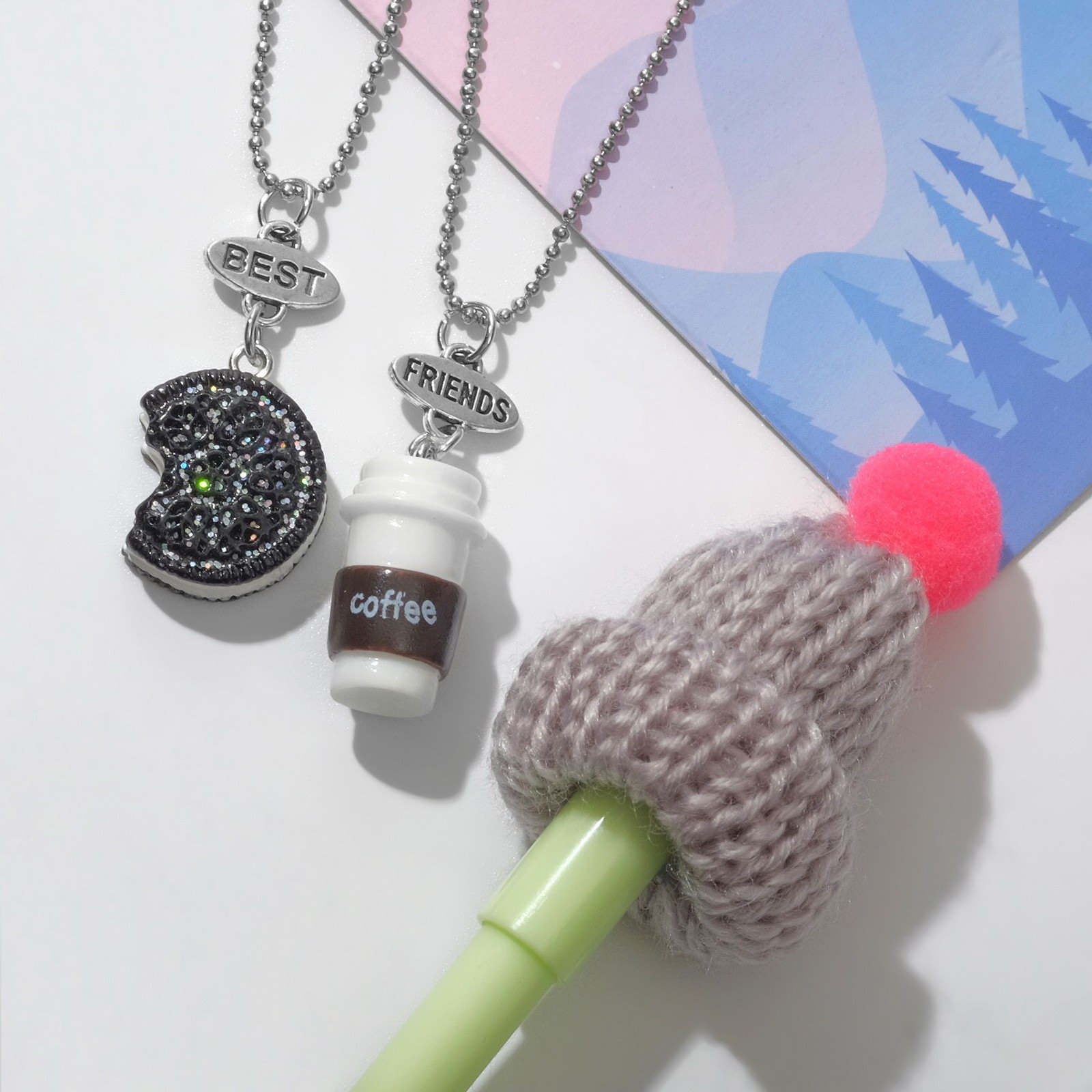 Набор 3 предмета: 2 кулона, ручка "Кофе", с печенькой, цветной, 45 см, 2x45x1.8 см., QF, Китай