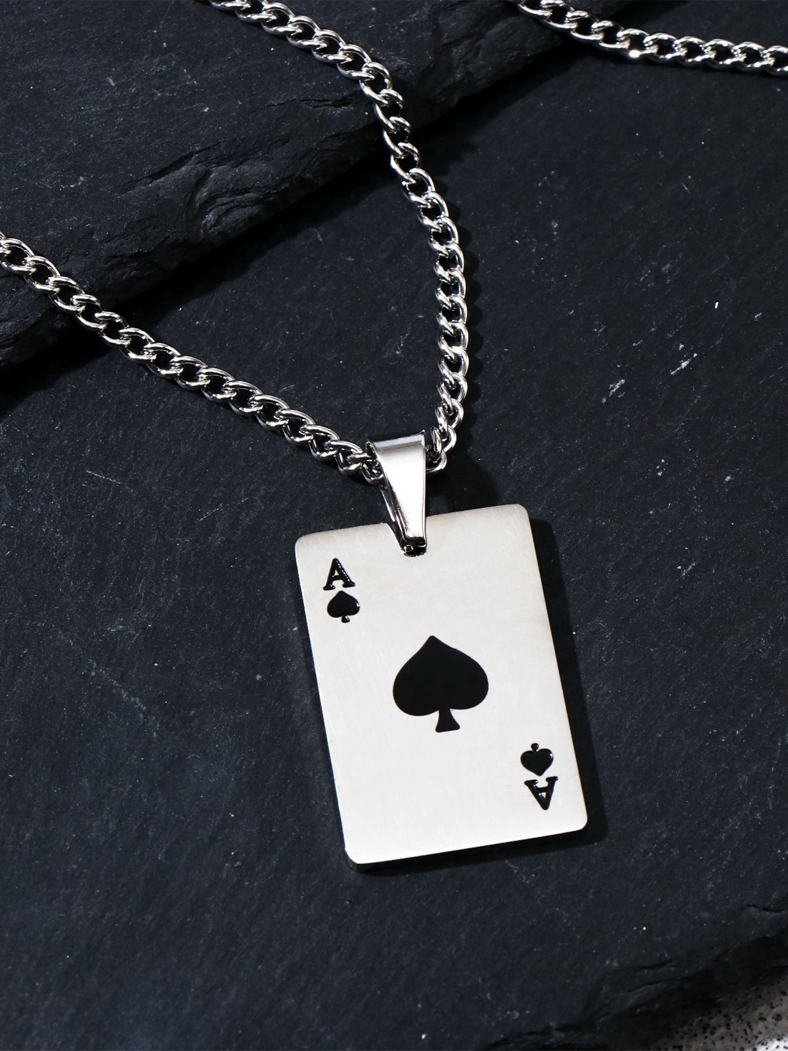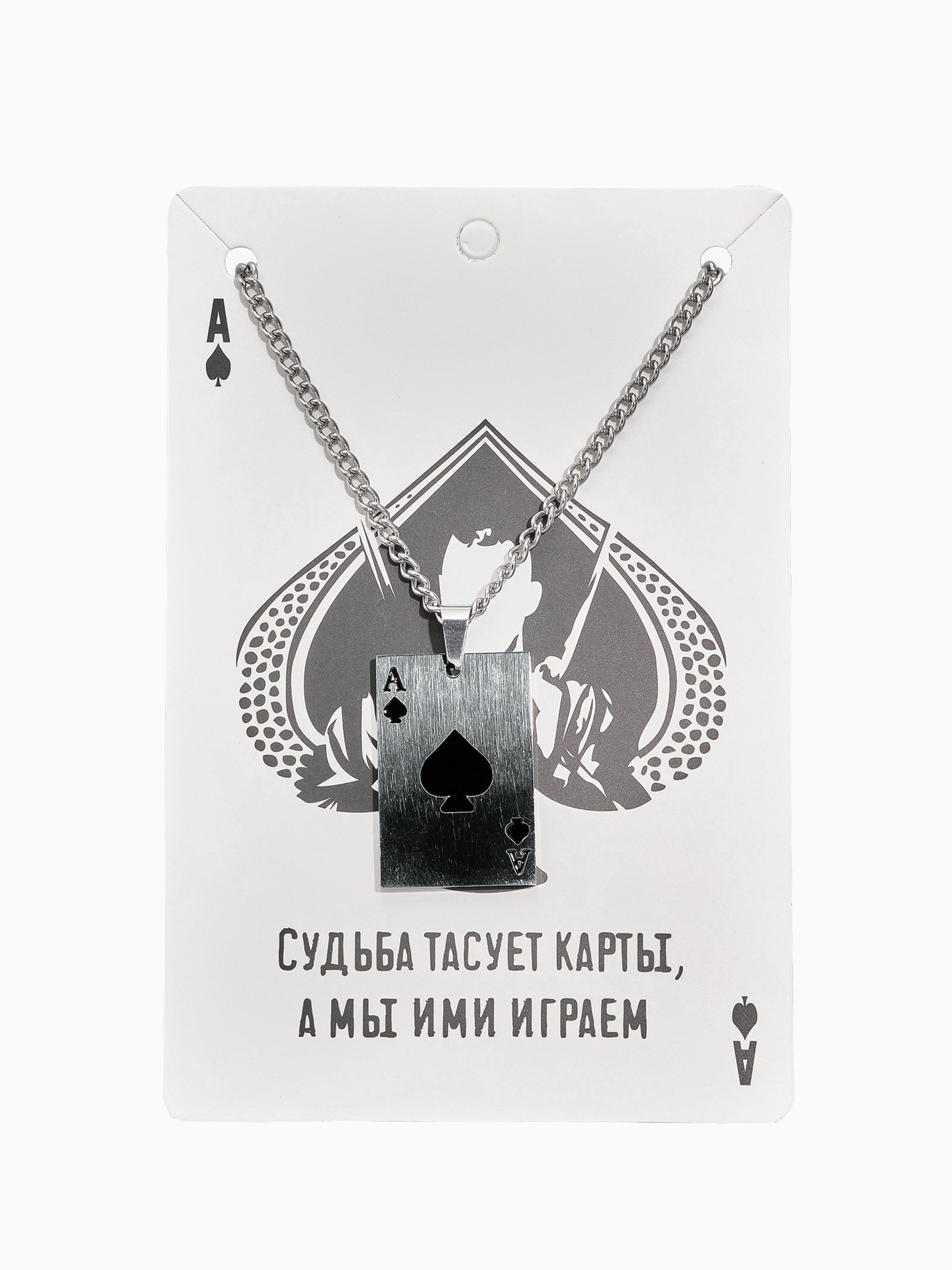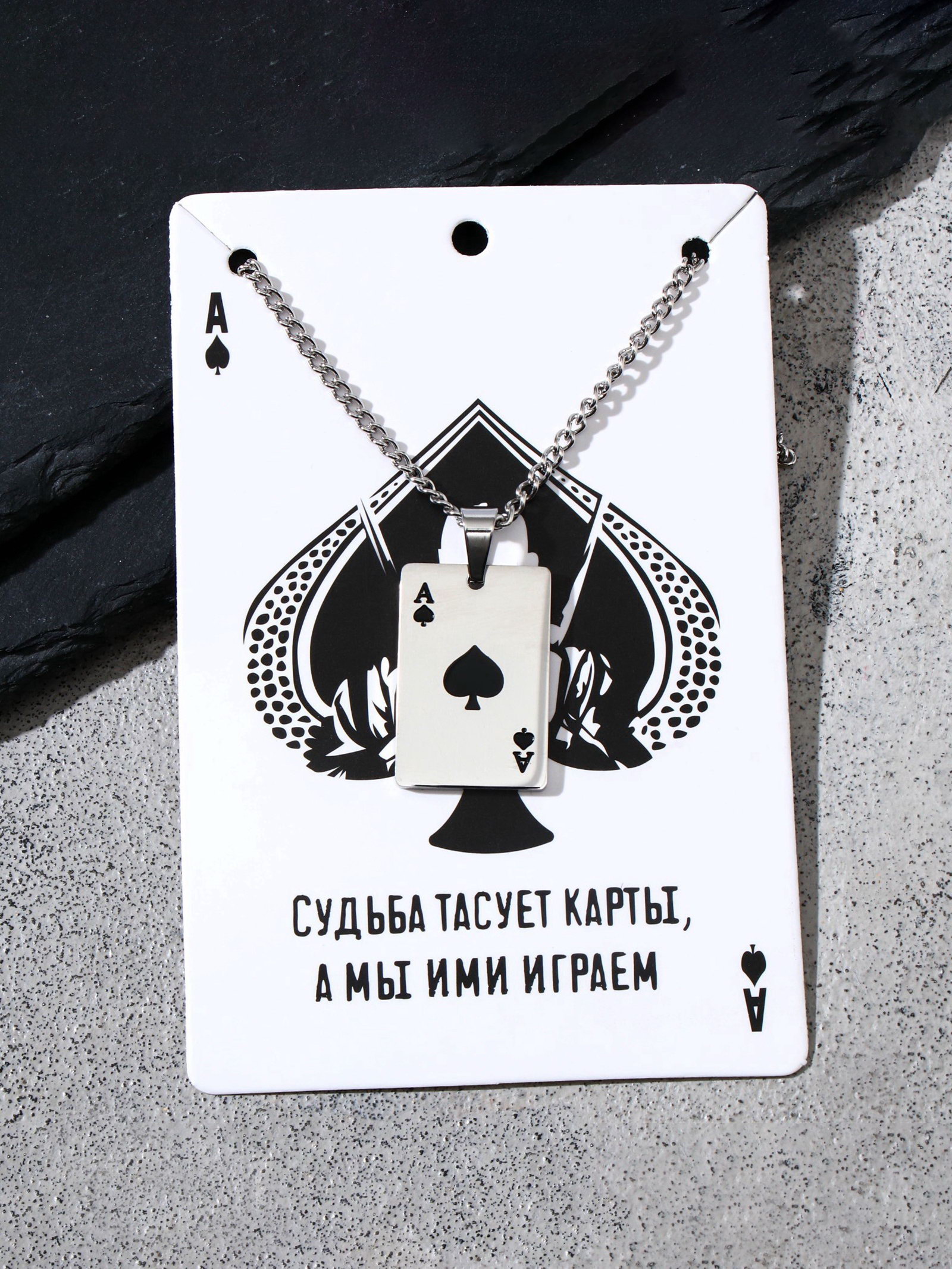Кулон "Карта" туз пики, цвет чёрно-белый в серебре, 70 см, 3x70x2 см., QF, Китай