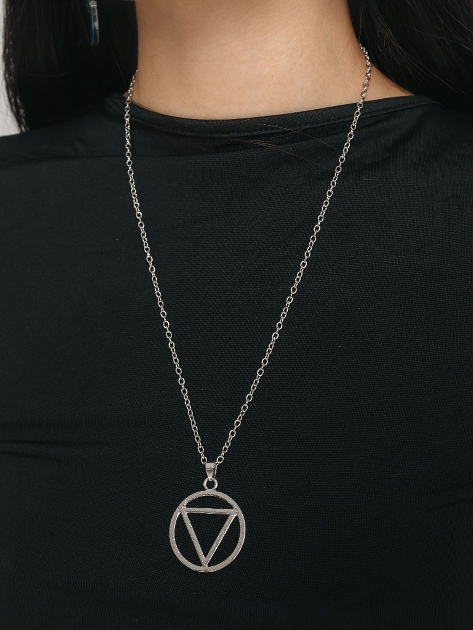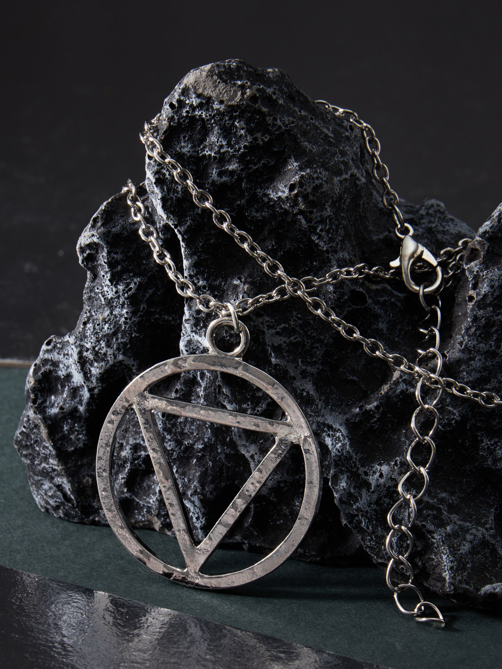 Кулон на цепочке "Круг", треугольник в кольце, цвет серебро, 56 см, 4x56x4 см., QF, Китай