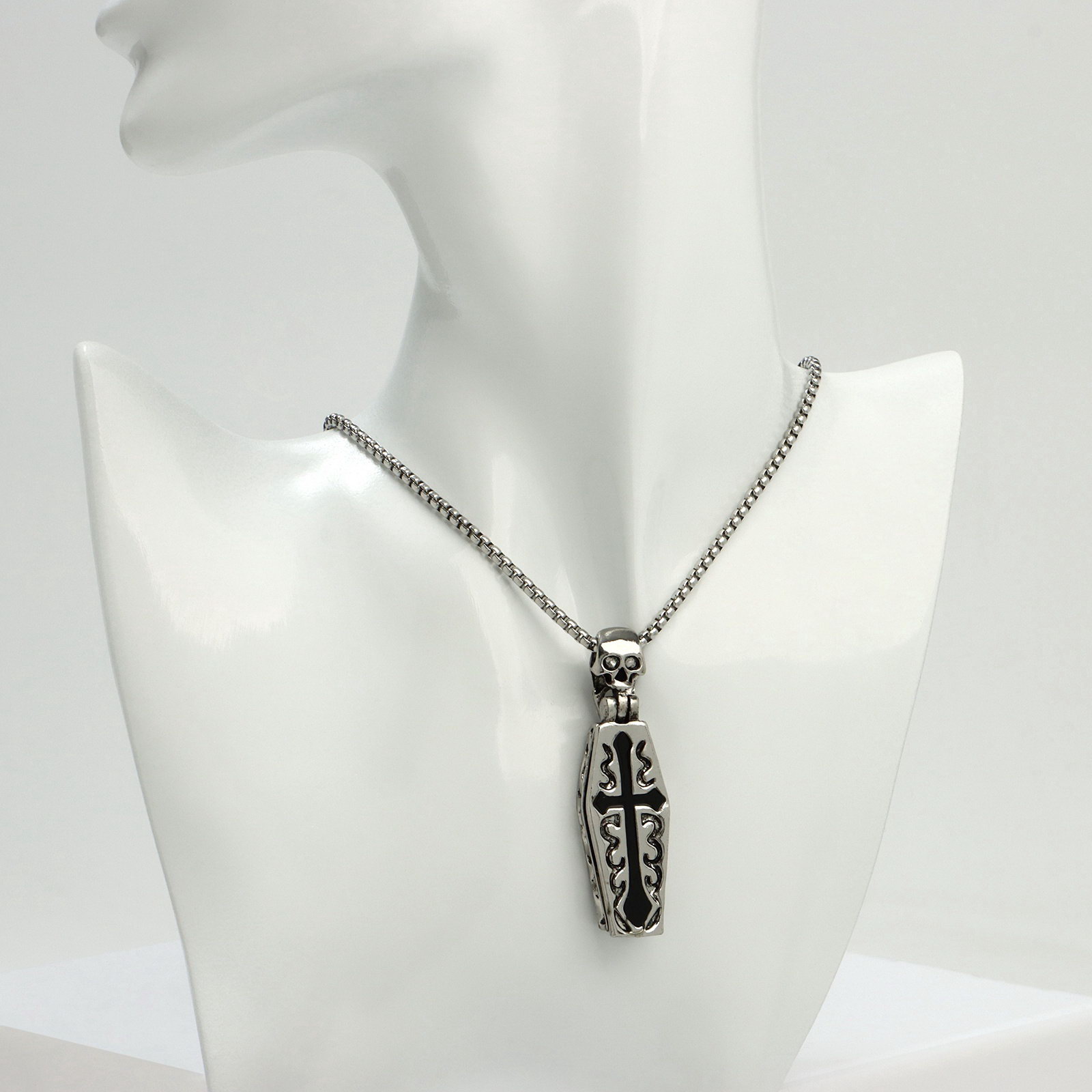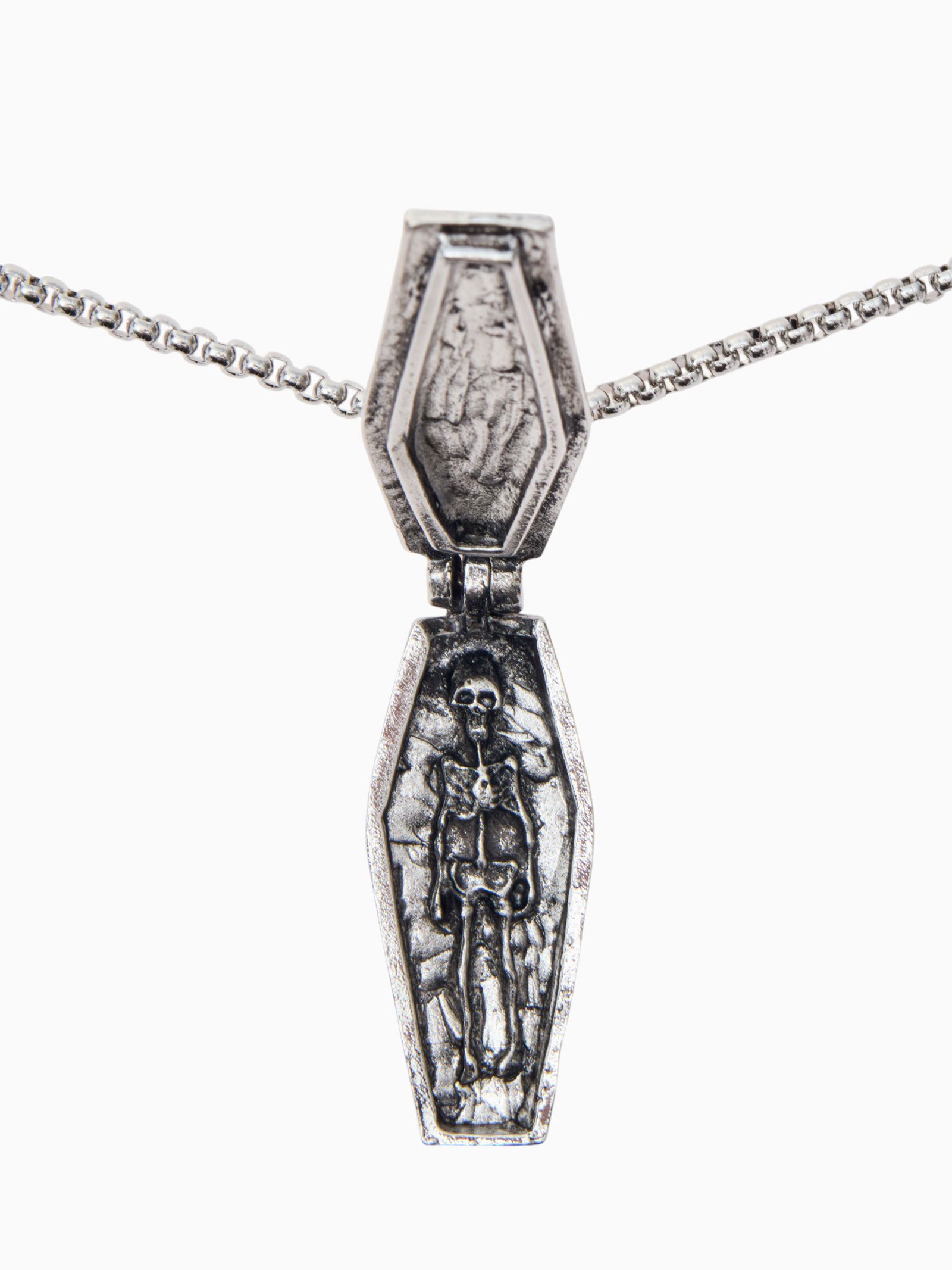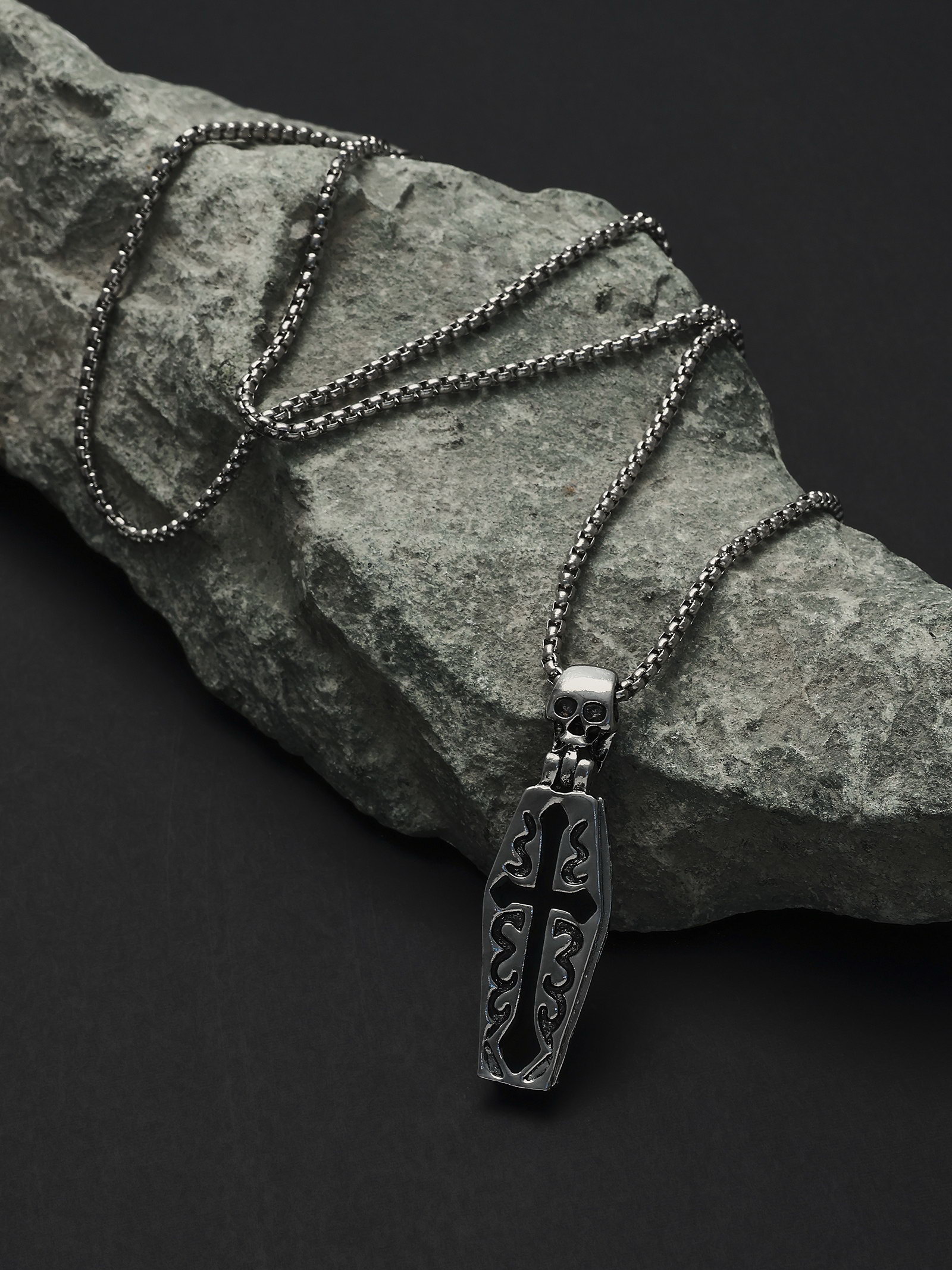 Кулон на цепочке "Гроб со скелетом", чёрный в чернёном серебре, L=70 см, 6x70x2.5 см., QF, Китай