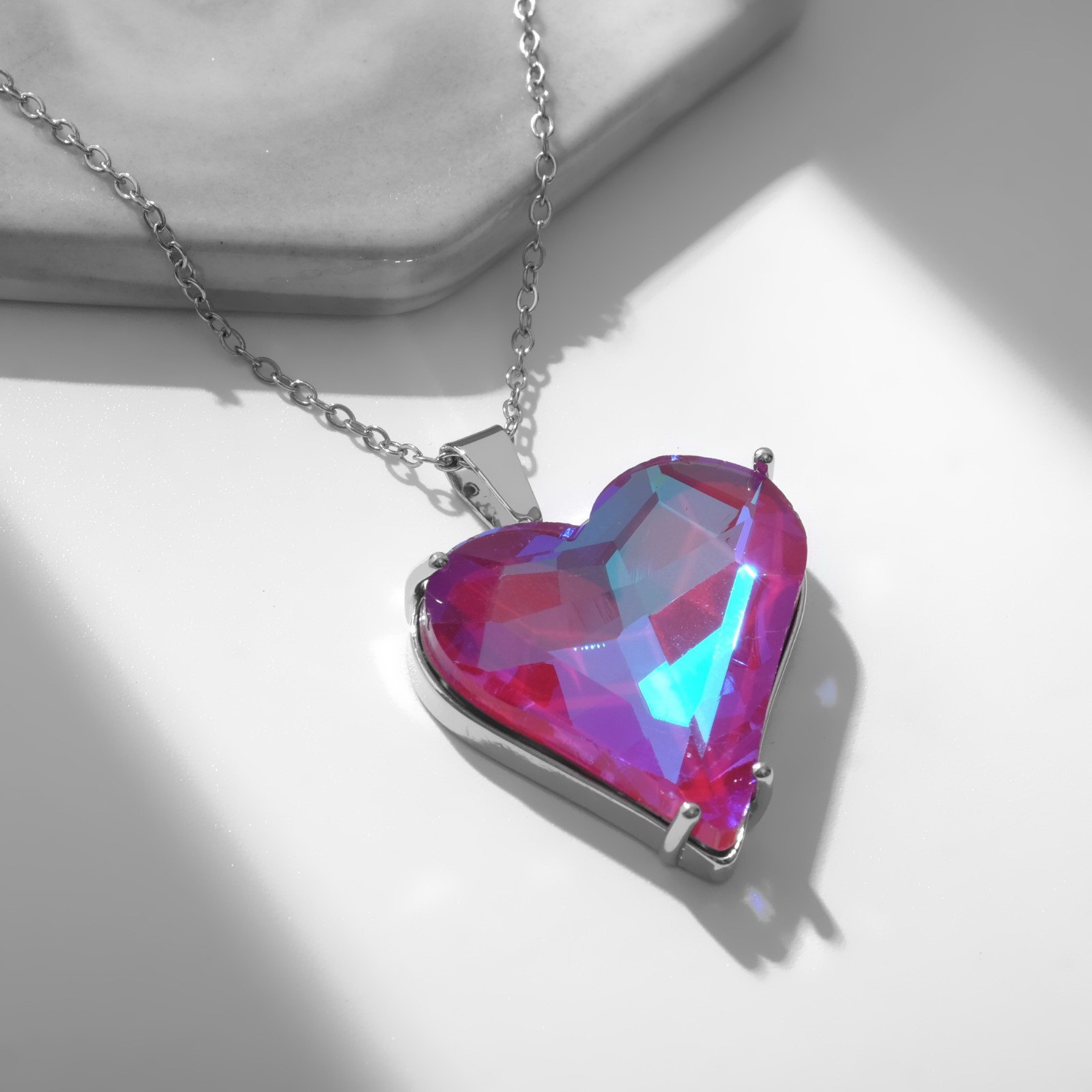 Кулон "Сердце", цвет тёмно-фиолетовый в серебре, 48 см, 2.6x48x3.3 см., QF, Китай