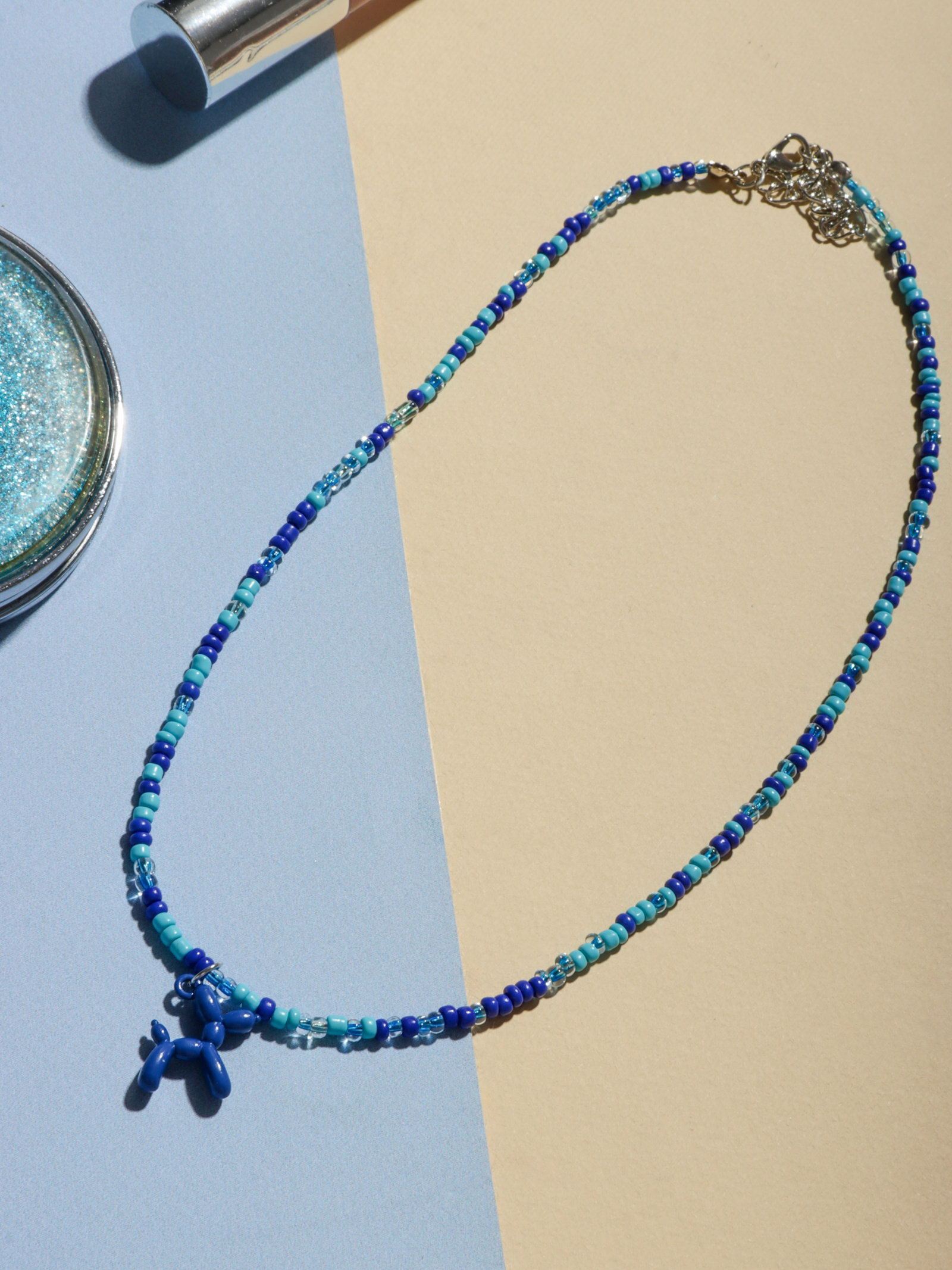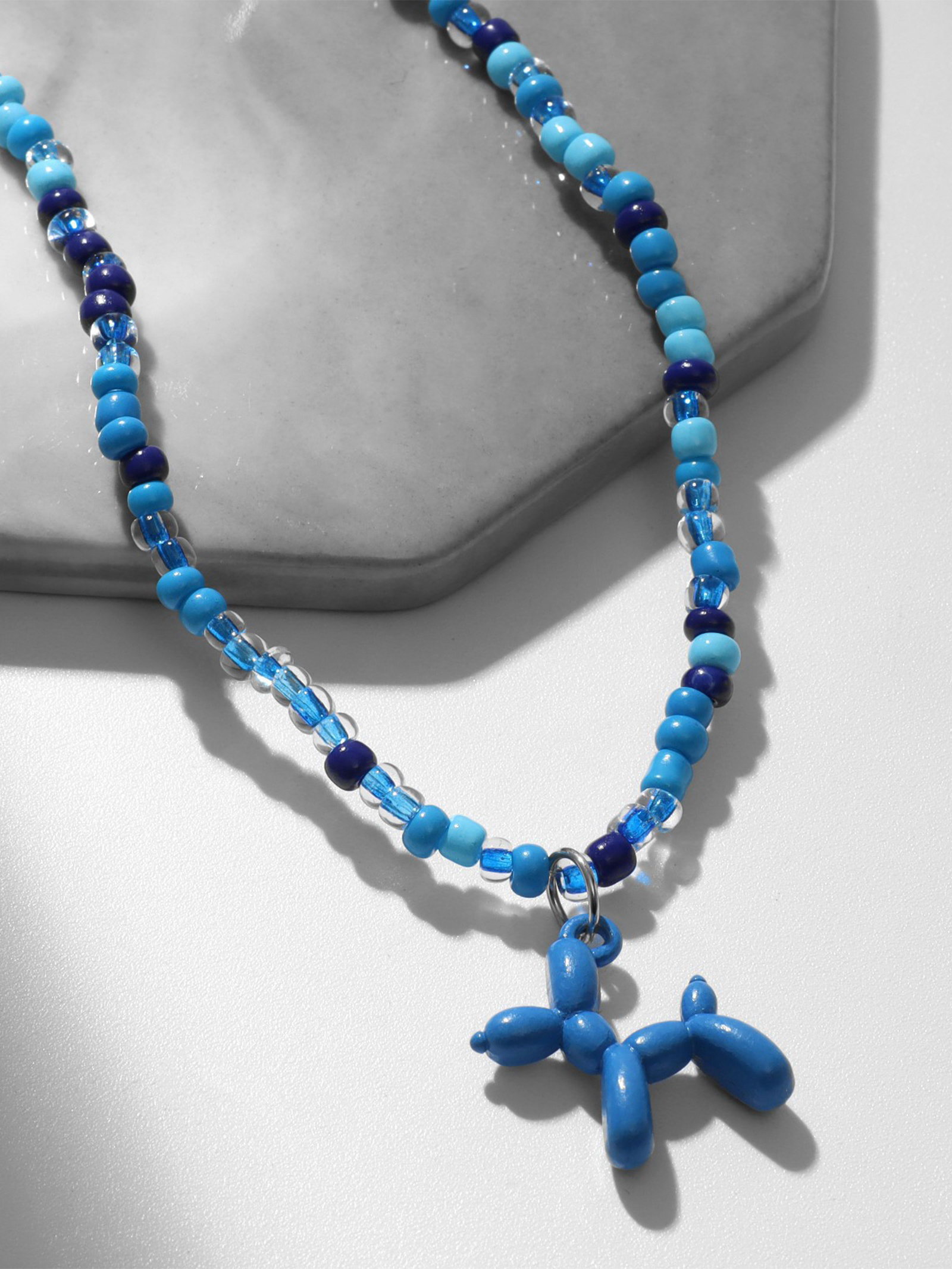 Кулон "Собачка" из воздушных шаров, бисер, цвет синий, 41 см, 2x41x2.2 см., QF, Китай