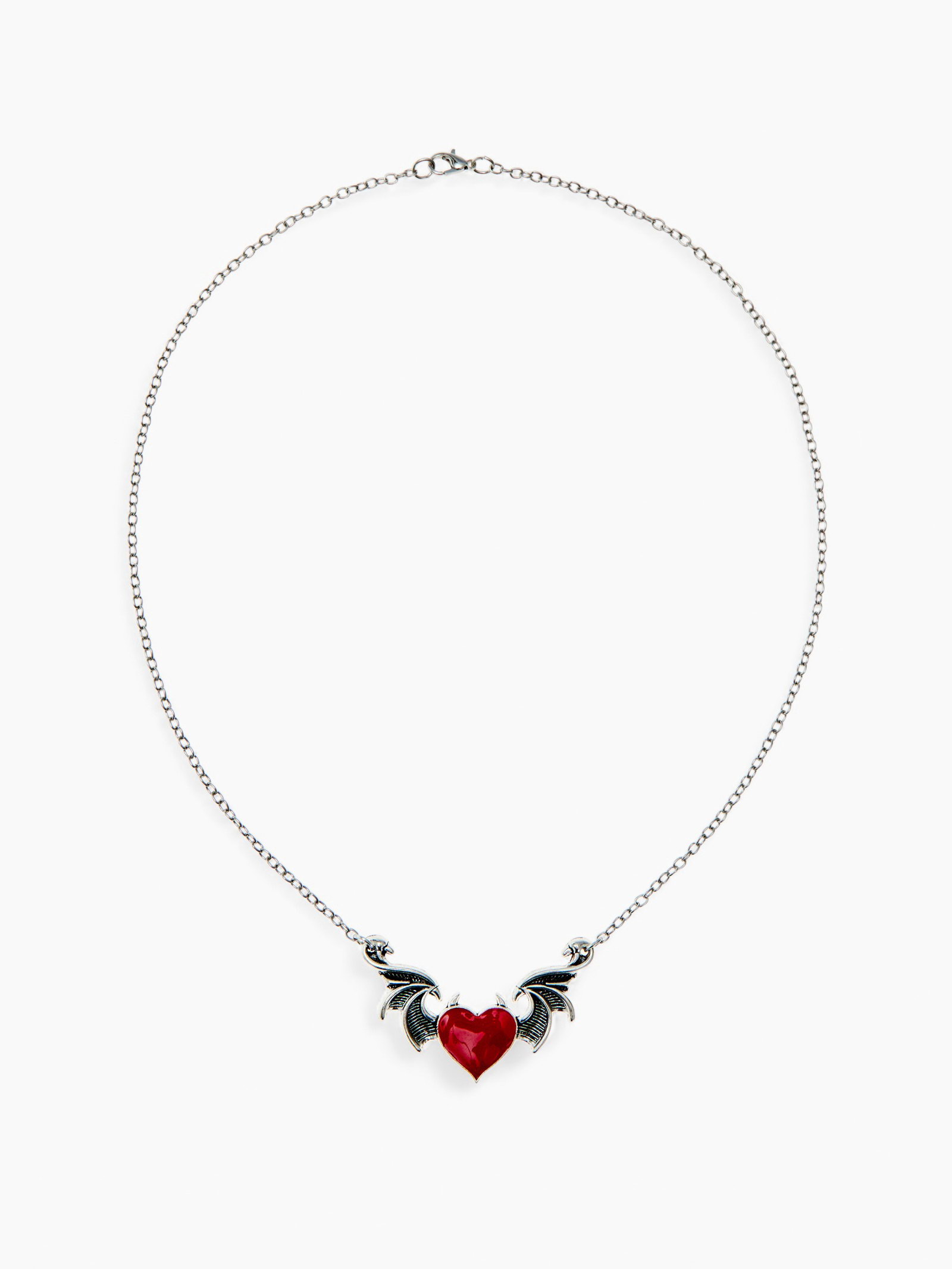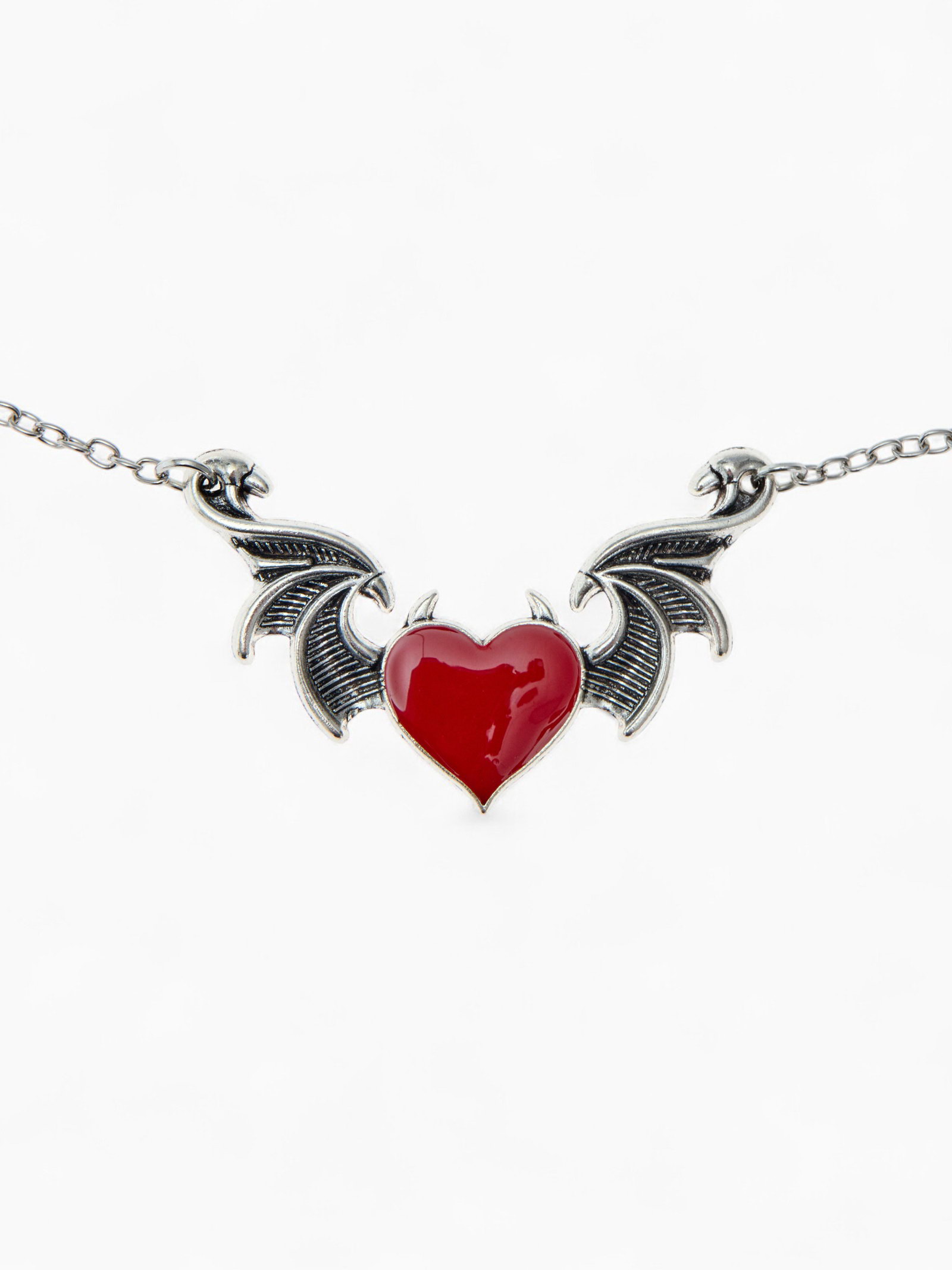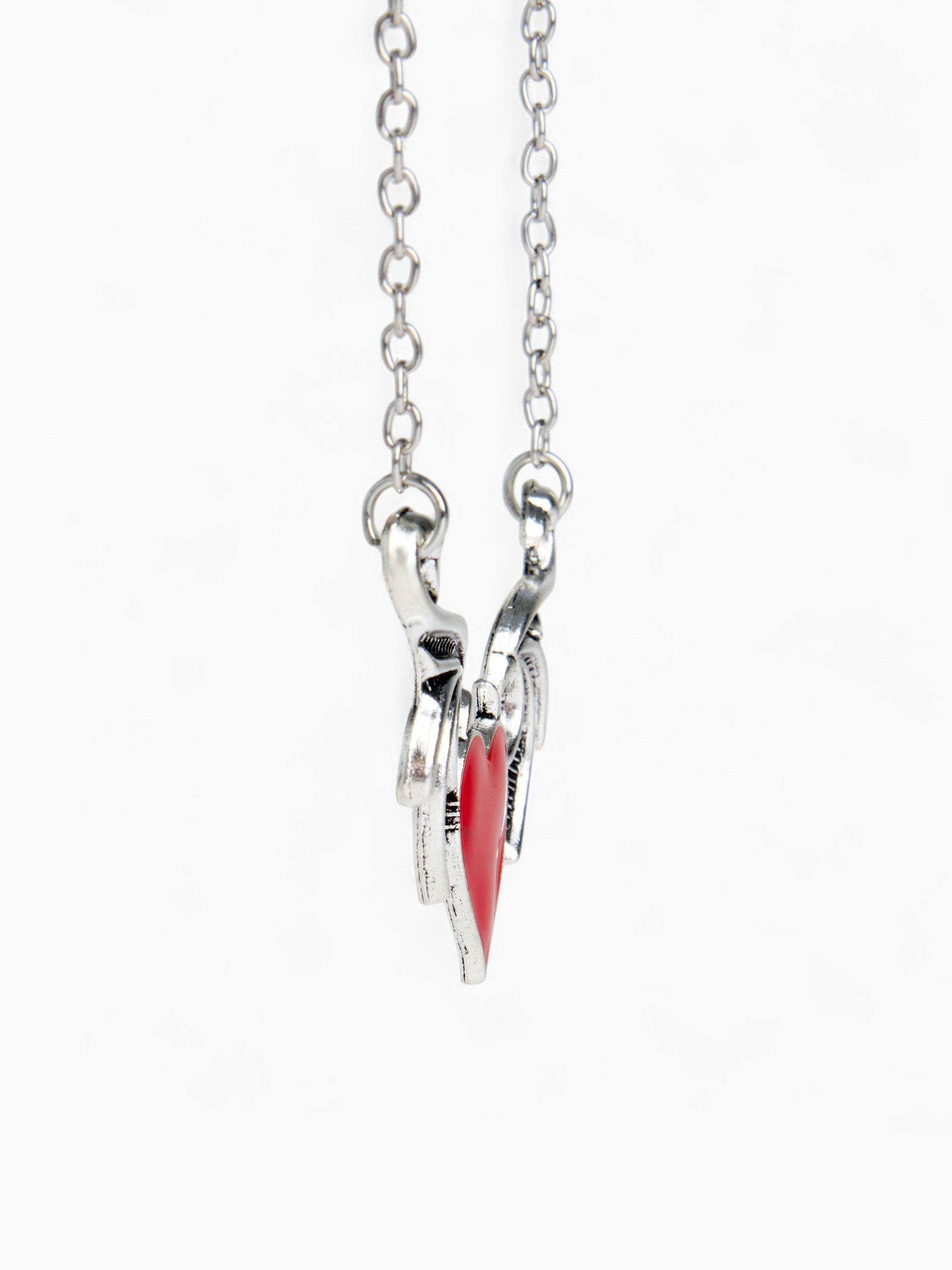 Кулон на цепочке "Сердце с рожками", красный в серебре, 50 см, 5.5x50x3.5 см., QF, Китай